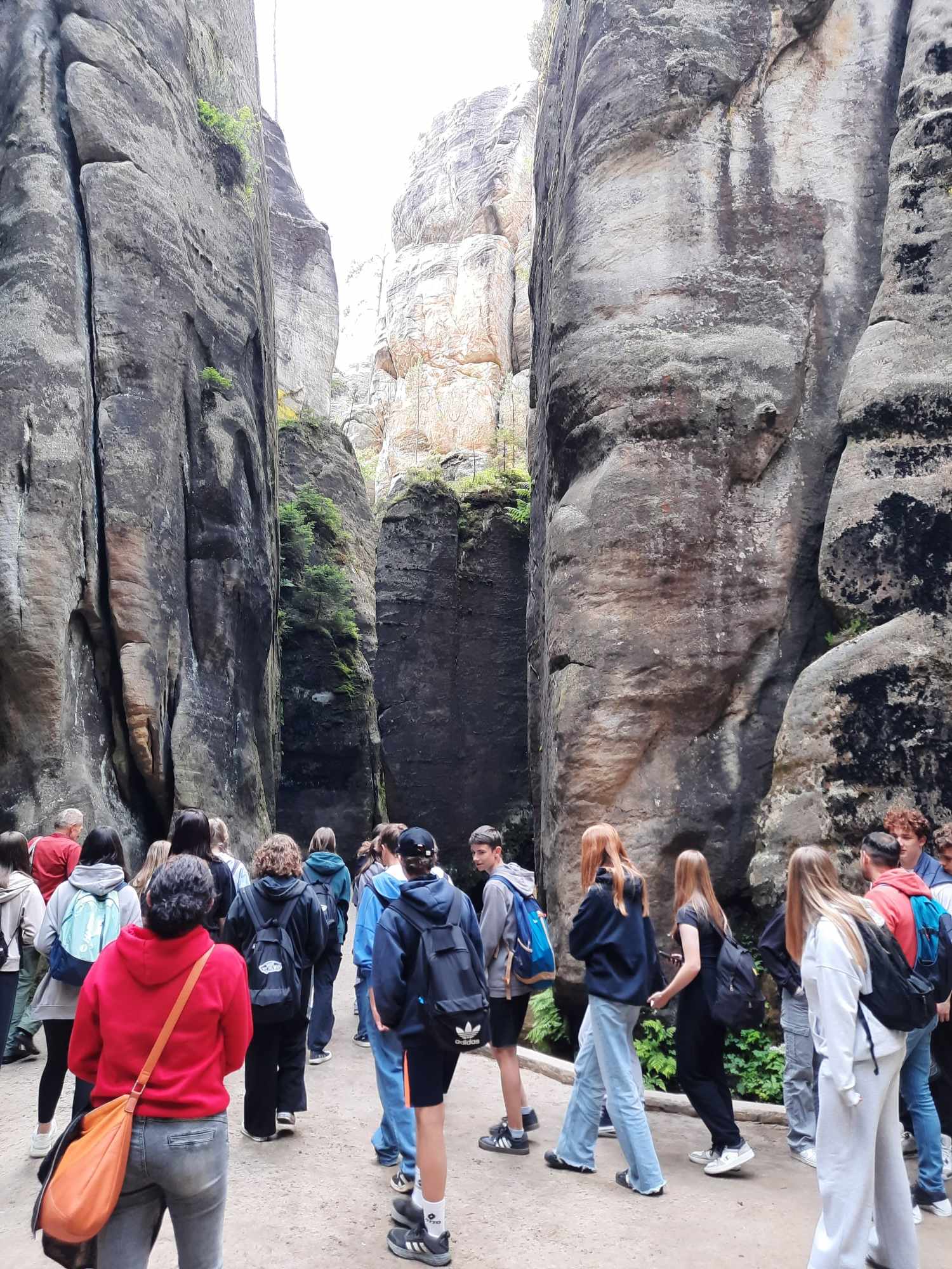 Jednym z najciekawszych momentów naszej wycieczki było zwiedzanie Skalnego Miasta Adršpach w Czechach. Spacer po tym niezwykłym rezerwacie przyrody dostarczył nam niezapomnianych wrażeń. Wędrowaliśmy wśród monumentalnych formacji skalnych, odkrywaliśmy malownicze wodospady i jeziora. Przyroda tego miejsca zachwyciła nas swoją surową pięknością i unikalnością.