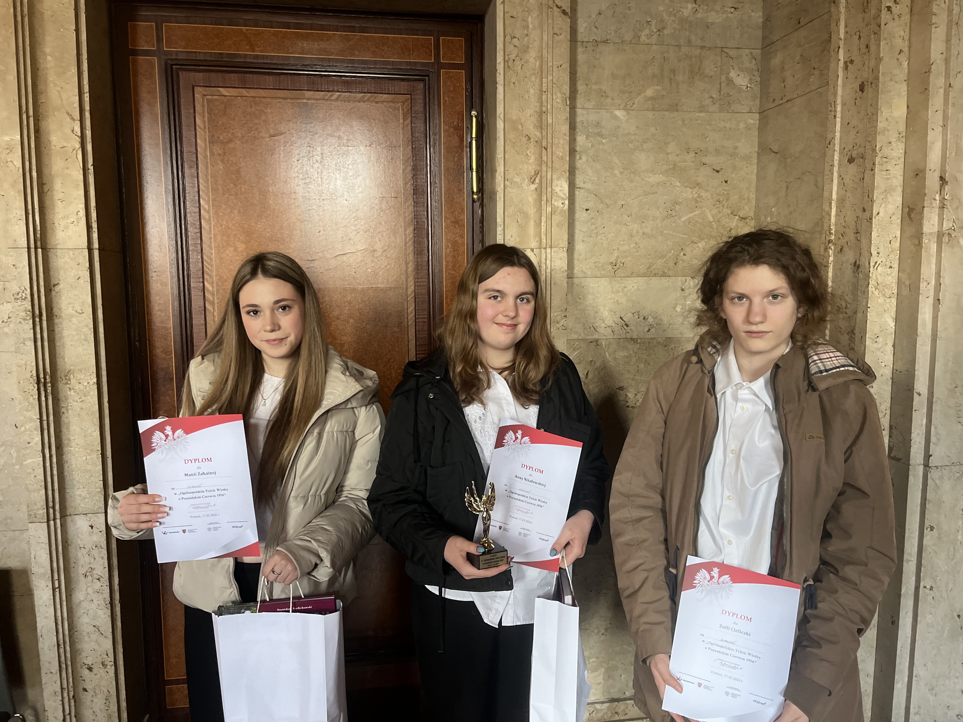 17 marca drużyna naszego liceum w składzie Anna Niżałowska, Mariia Zachaina, Zofia Cieliczka reprezentowała szkołę w konkursie zorganizowanym przez Muzeum Poznańskiego Czerwca 1956 w Poznaniu. W tym roku przypada 70 rocznica tych wydarzeń. Poznaniacy, jako jedni z pierwszych odważyli się zaprotestować przeciwko władzy ludowej i jej absurdalnej polityce społeczno-gospodarczej. Pierwszym hasłem na transparentach niezadowolonego Poznania było „Chleba, jesteśmy głodni”. Protest został brutalnie zdławiony, wielu straciło życie. Do historii przeszedł Roman Strzałkowski, najmłodsza ofiara. Wielu musiało zapłacić swoim zdrowiem i wyrzeczeniami ponieważ władza ludowa nie wybaczała.