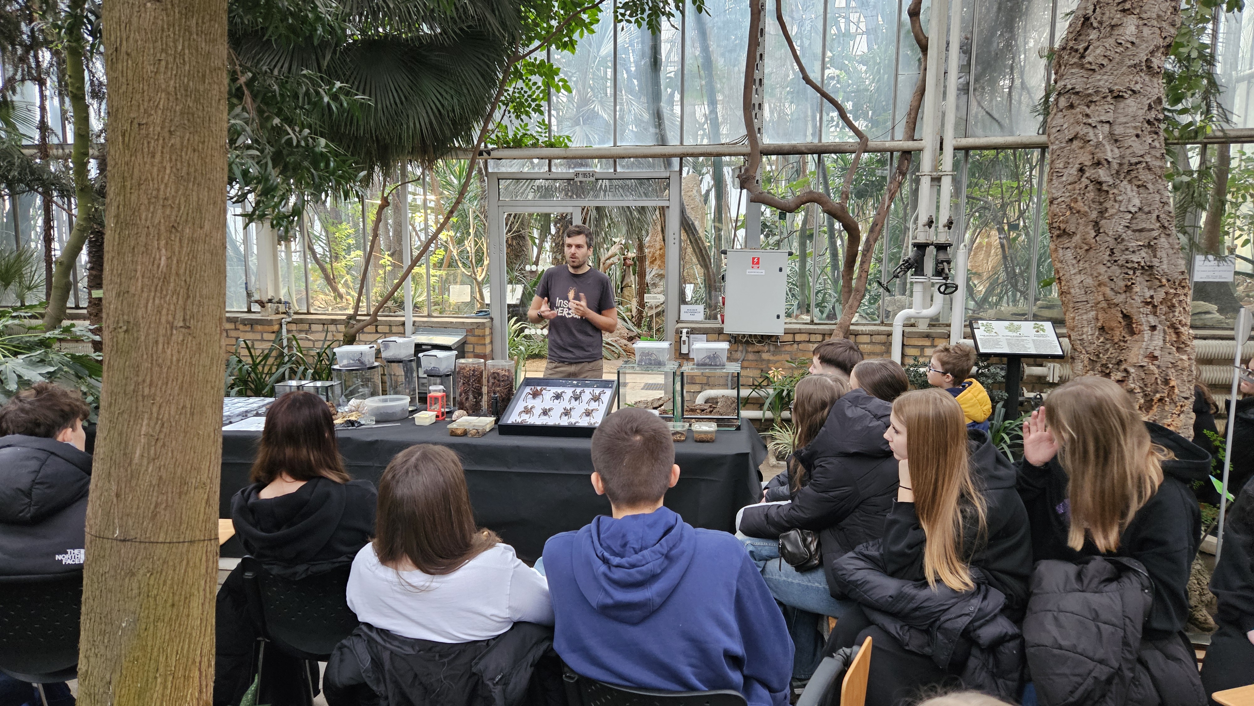 Młodzież uczestniczyła w zajęciach, podczas których zapoznała się z gatunkami hodowlanymi stawonogów, takimi jak gatunki ptaszników,