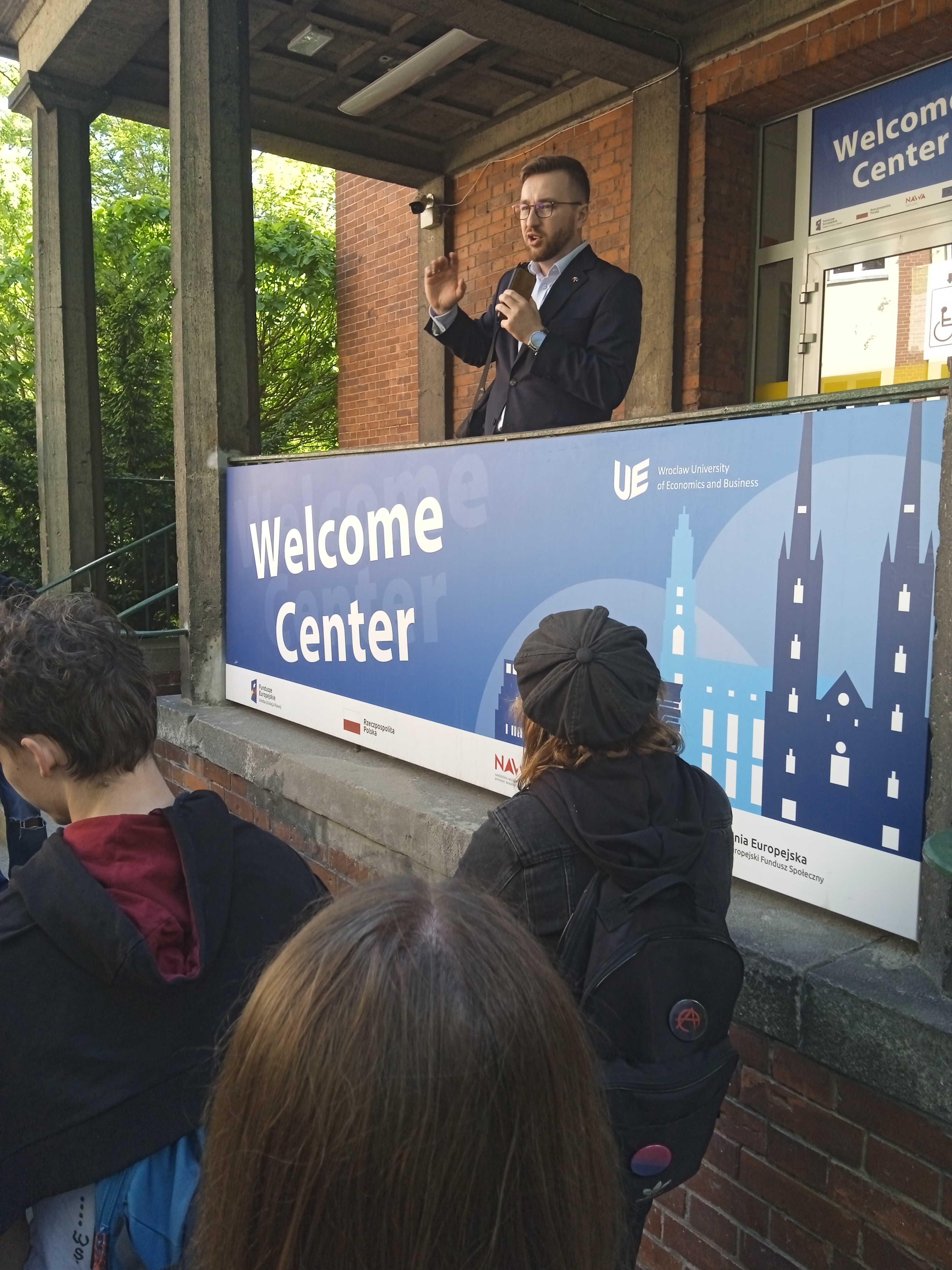 Po debacie, dr Paweł Brusilo zaprosił uczniów z LO w Górze i LO w Oławie na zwiedzanie wybranych obiektów uczelni oraz zaprezentował główne kierunki kształcenia Uniwersytetu Ekonomicznego.