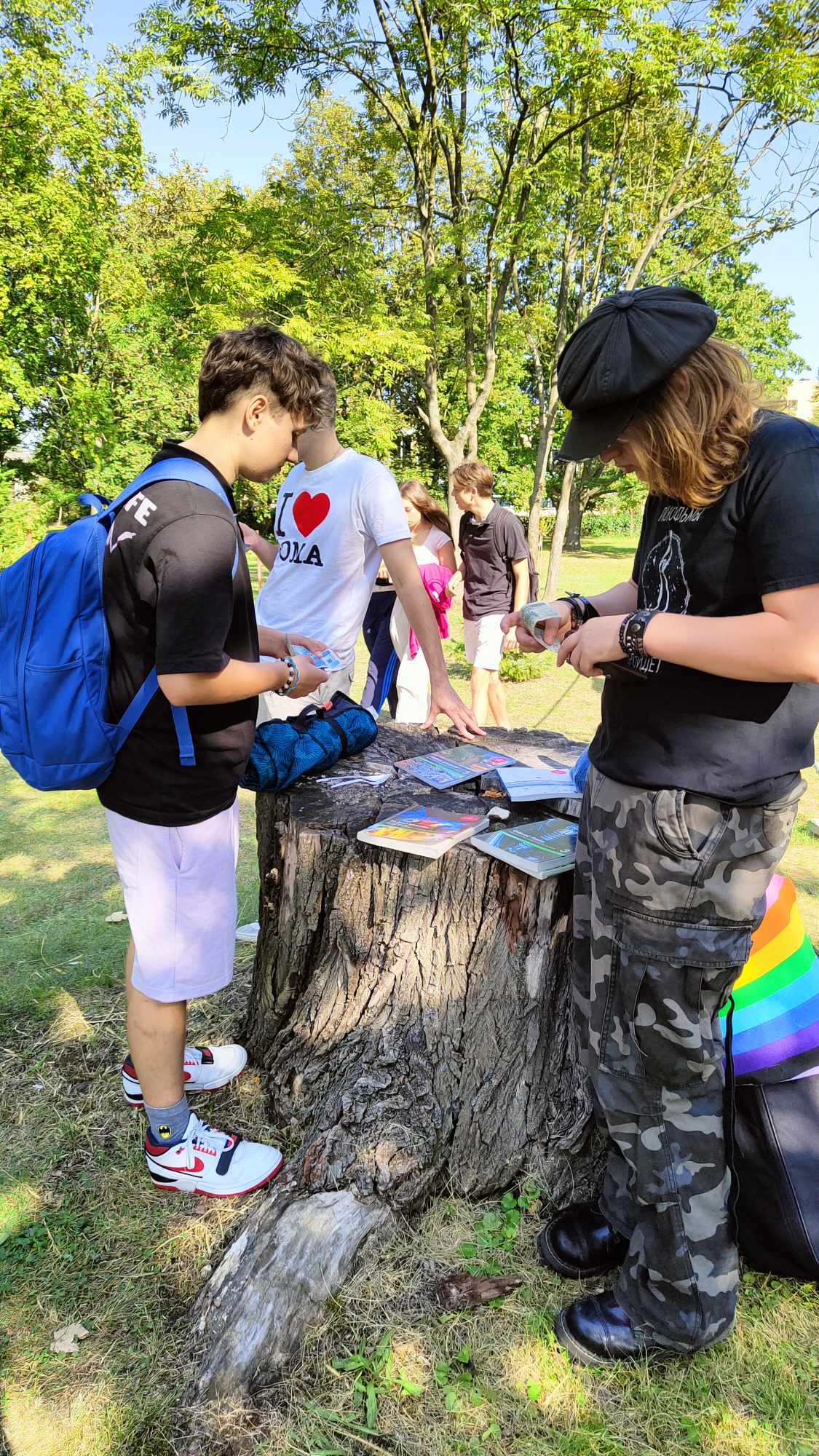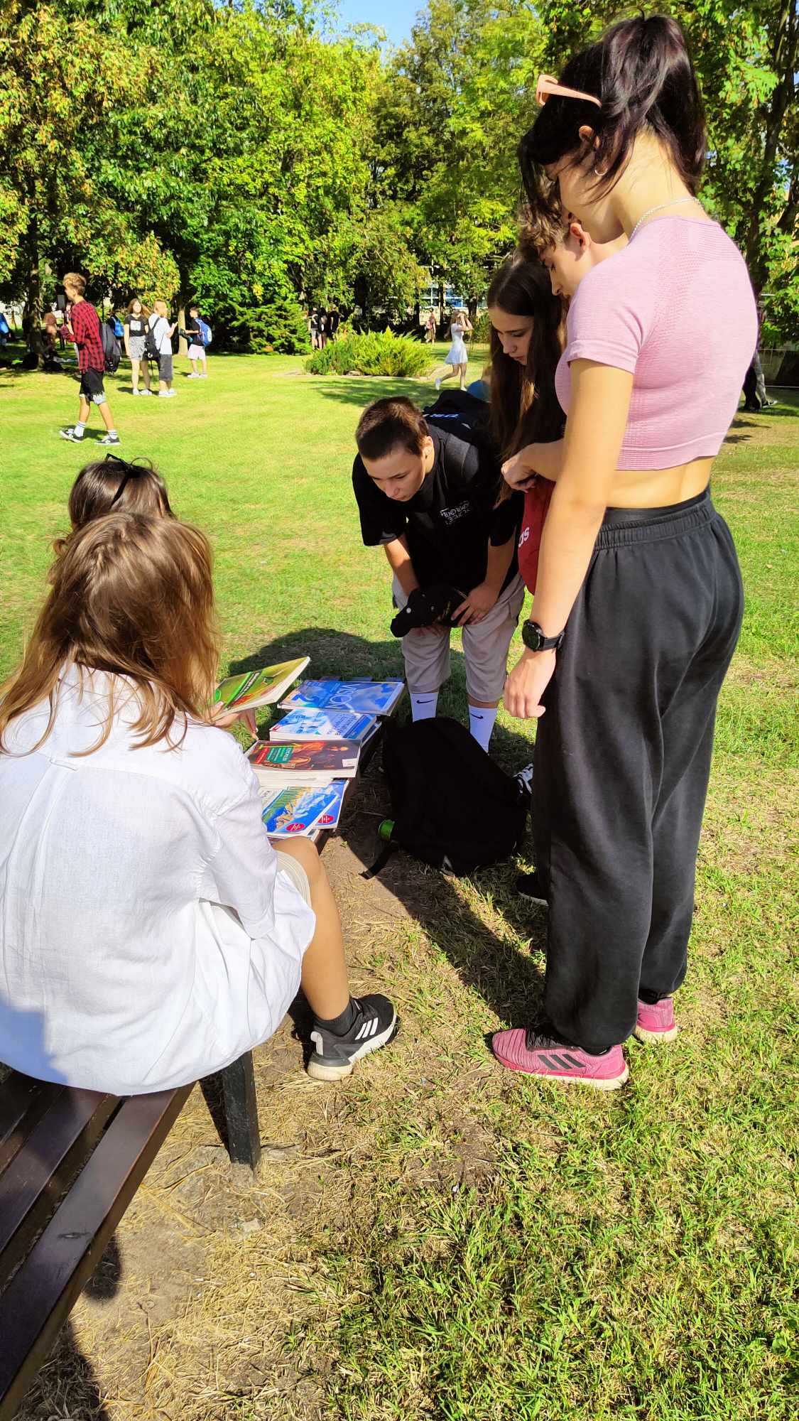 W tym roku szkolnym nietypowo kiermasz odbył się na świeżym powietrzu w parku szkolnym. Kiermasz został zorganizowany przez szkolny Wolontariat .