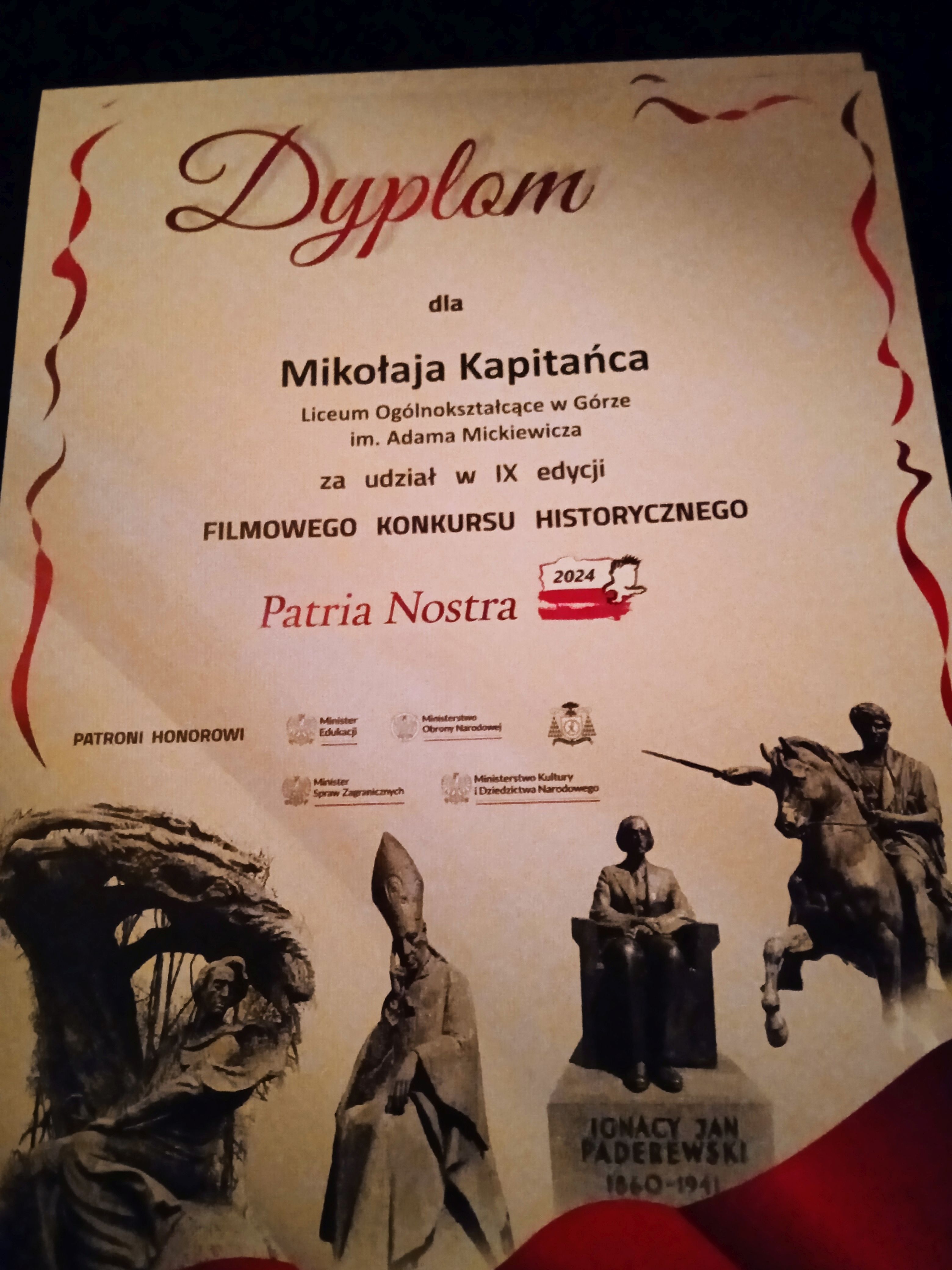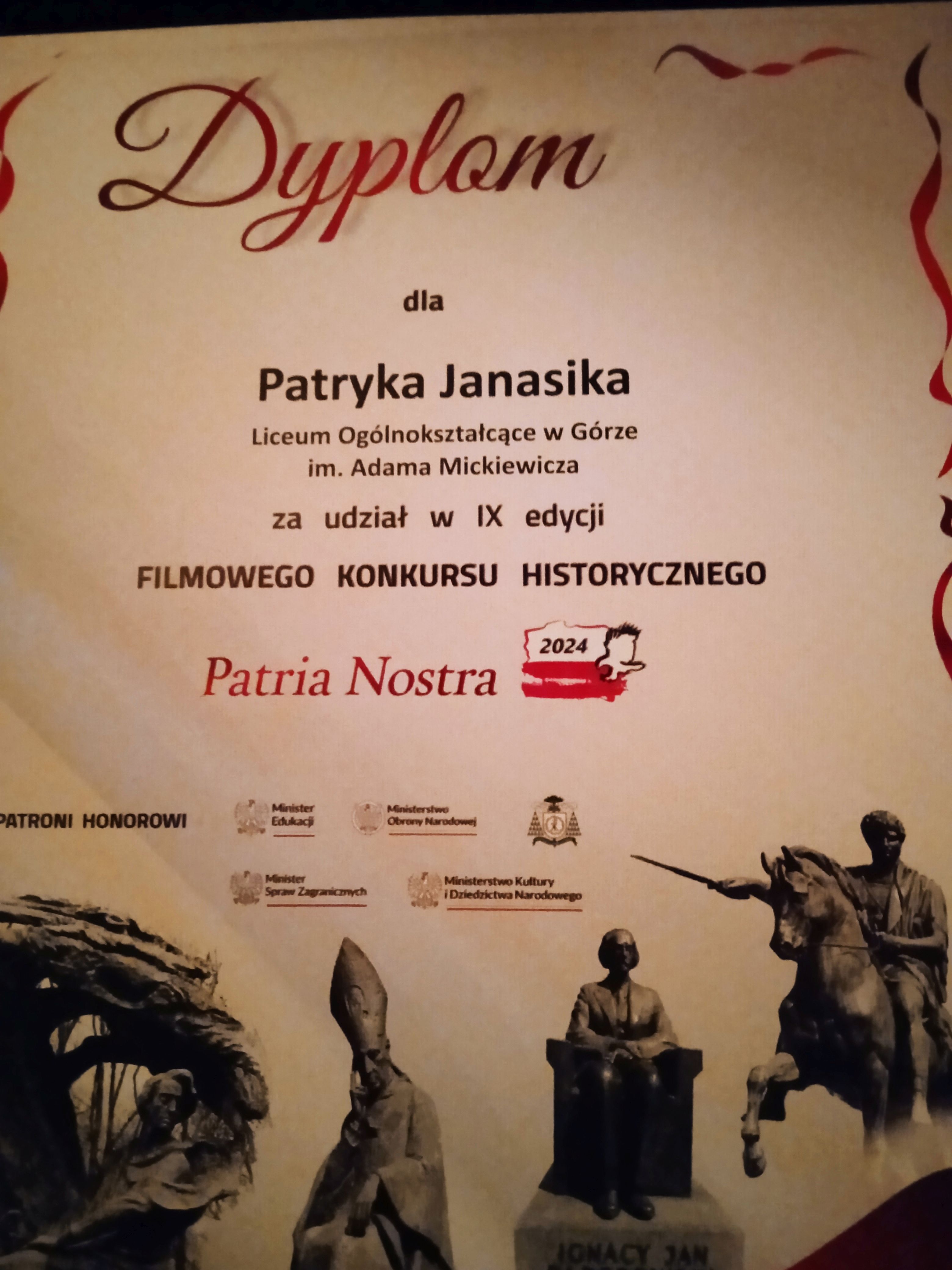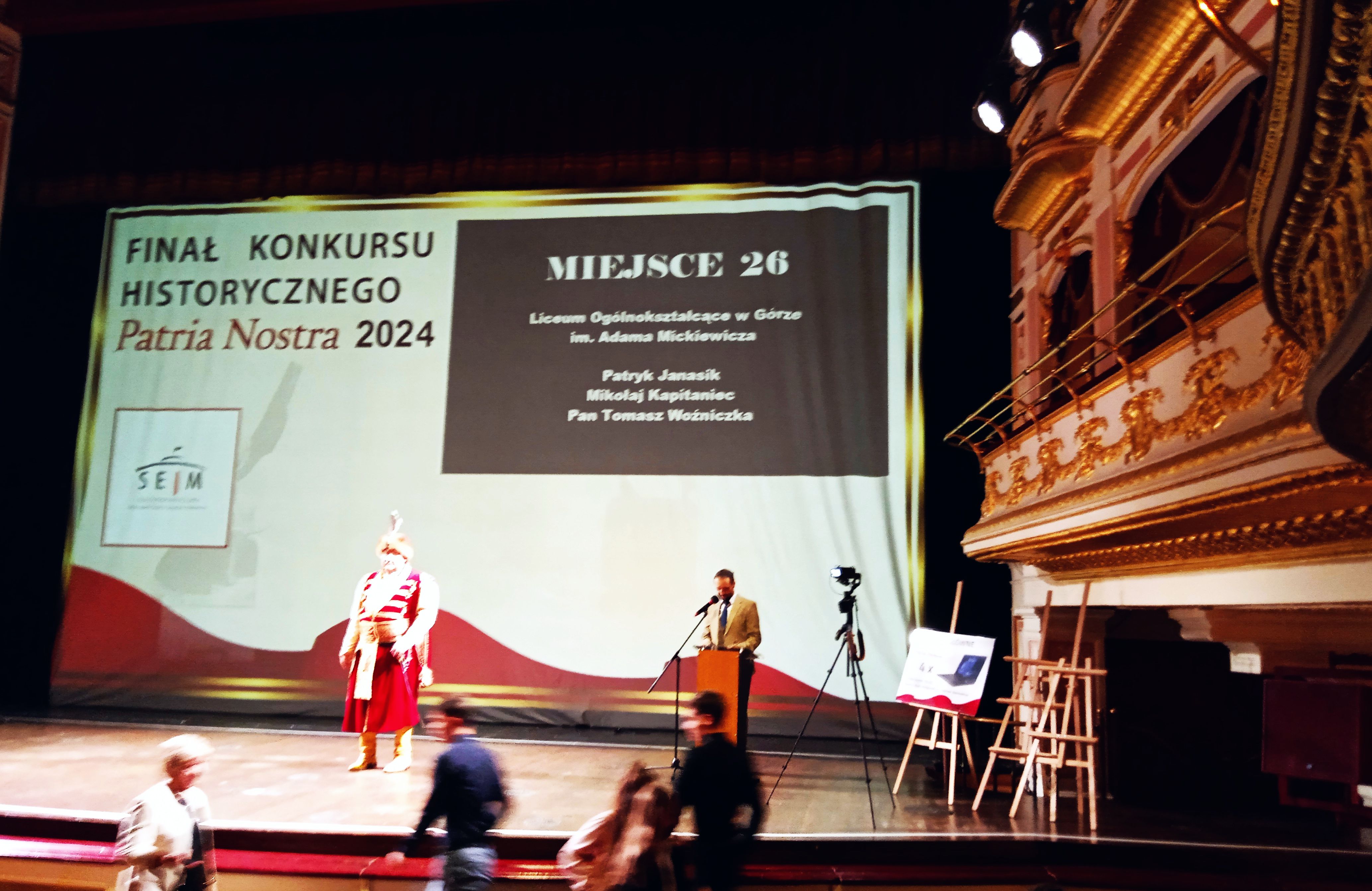 Na Galę Finałową do Opery Wrocławskiej zaproszeni autorzy wszystkich prac konkursowych. Jury konkursowe postanowiło wyróżnić 20 projektów filmowych. Laureatom I, II i III miejsca wręczane są pięknie wykonane repliki szabli polskiej oficerskiej wzór z 1934 r.. Nagrody wręczyła Prezes Fundacji, p. Nataliya Volynets i Fundator Fundacji Mirosław Gryko wraz z zaproszonymi gośćmi m.in. posłem na Sejm RP Tadeuszem Samborskim. Każdy z uczestników konkursu otrzymał z rąk organizatorów pokaźną, dużą i ciężką torbę wypełnioną nagrodami oraz dyplom uczestnictwa w konkursie. W trakcie Gali wystąpiła Orkiestra Komendy Wojewódzkiej Policji we Wrocławiu. Uczniowie LO zajęli miejsce tuż za finałową „20”., ale biorąc pod uwagę, że był to ich debiut w imprezie tej rangi to ich występ należy uznać za spory sukces. Do szczęścia zabrakło więc niewiele, jednak w tego typu konkursach liczy się też zdobywanie niezbędnego doświadczenia, które może procentować w przyszłości.