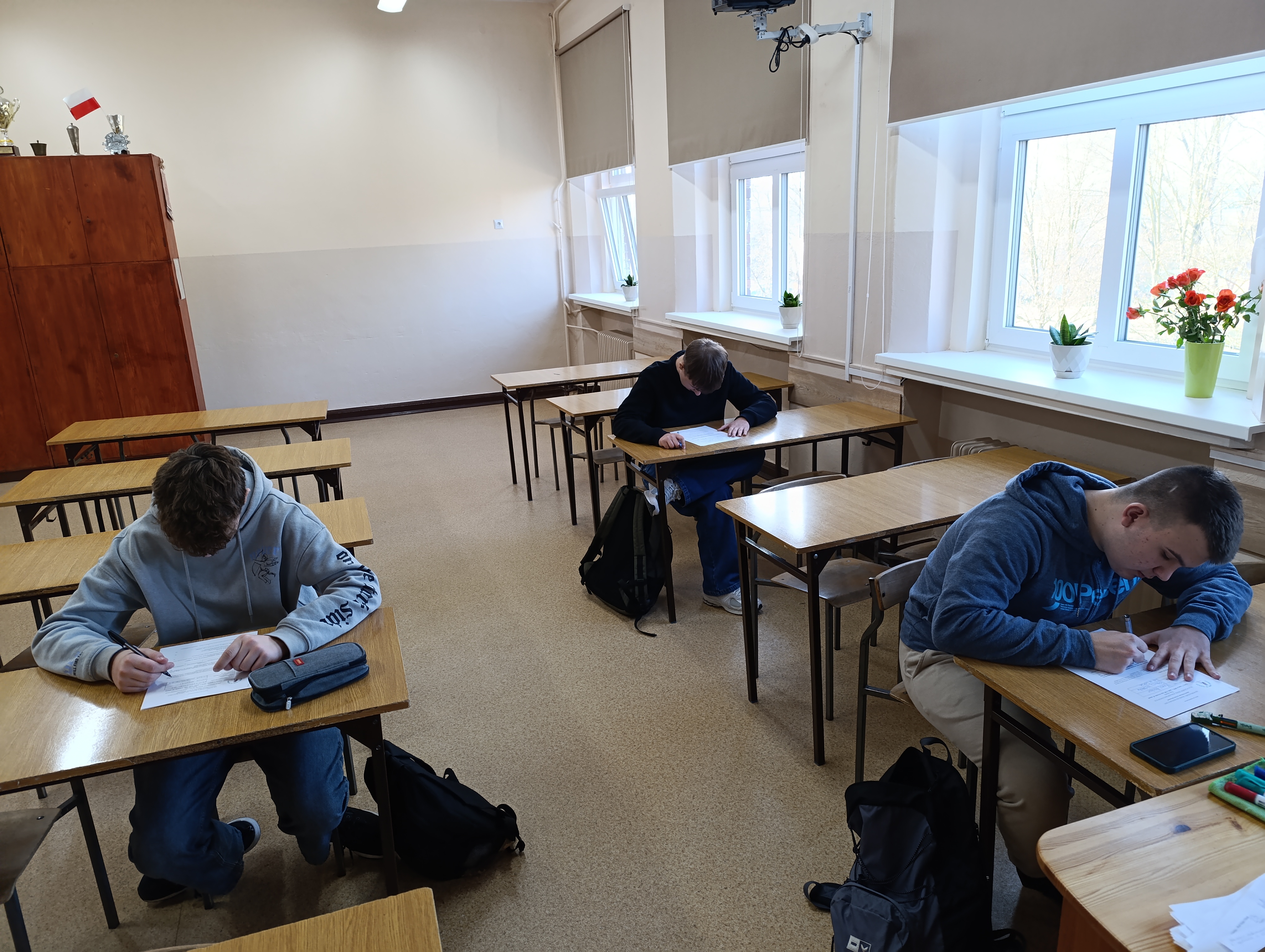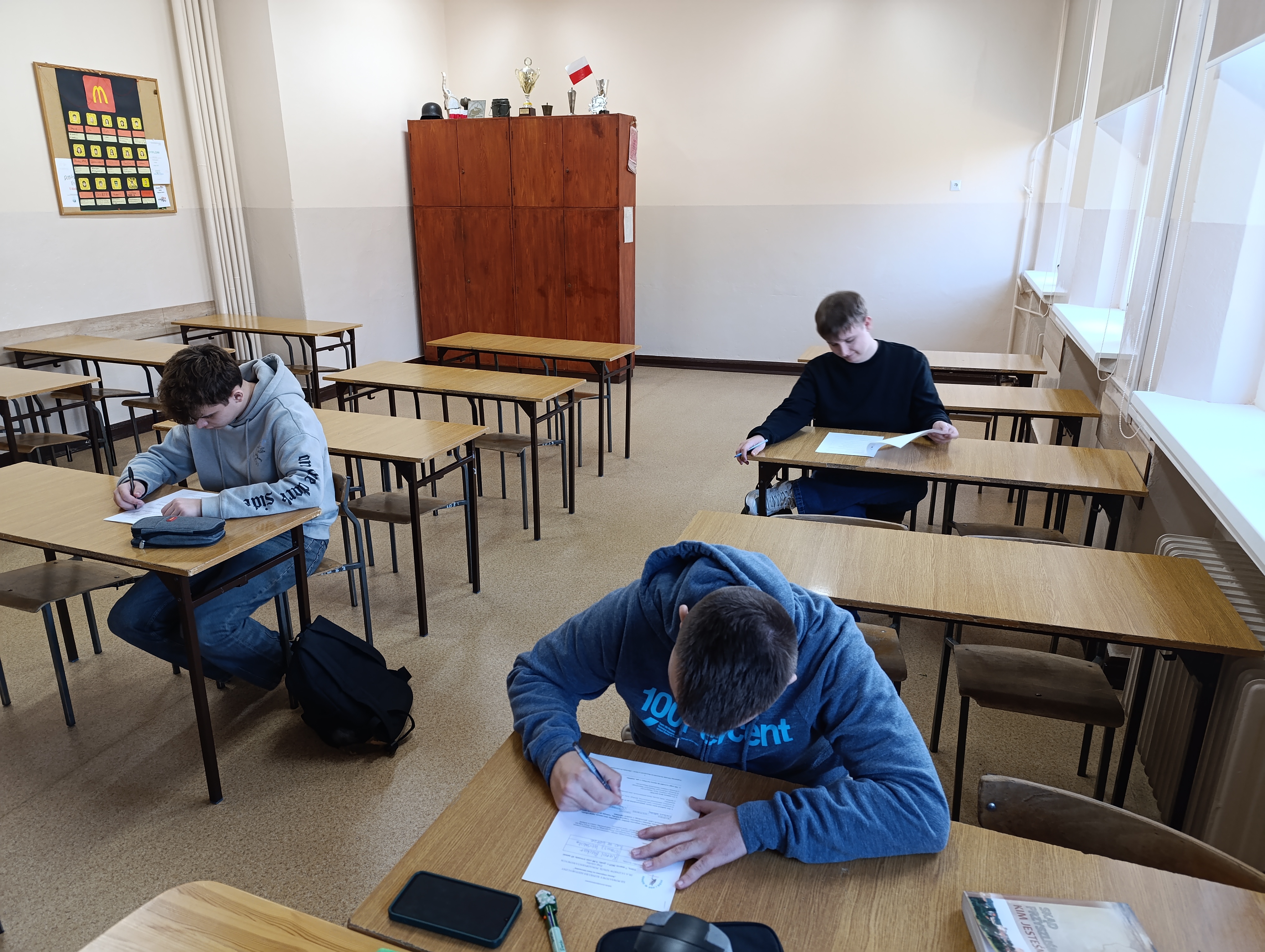 W etapie szkolnym uczniowie mieli do rozwiązania w ciągu 45 minut 26 zadań testowych (otwartych i zamkniętych). W myśl regulaminu awans do etapu powiatowego mogło uzyskać maksymalnie 3 uczniów z danej szkoły pod warunkiem uzyskania wymaganego przez organizatorów limitu punktowego. W LO w Górze w szranki rywalizacji stanęło 3 uczniów: Filip Kędzierski kl. IIa, Karol Buchar kl. IId i Witold Górowski kl. IIe.