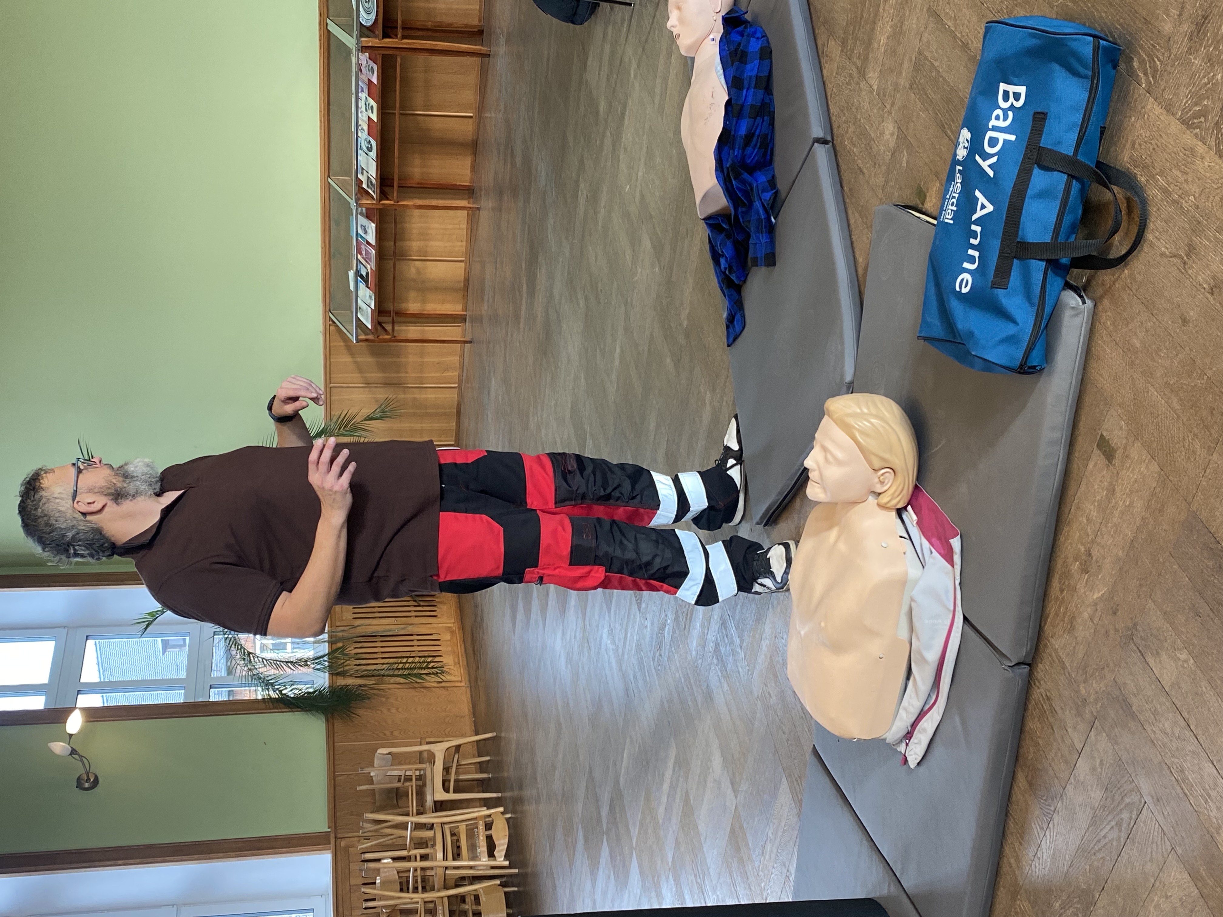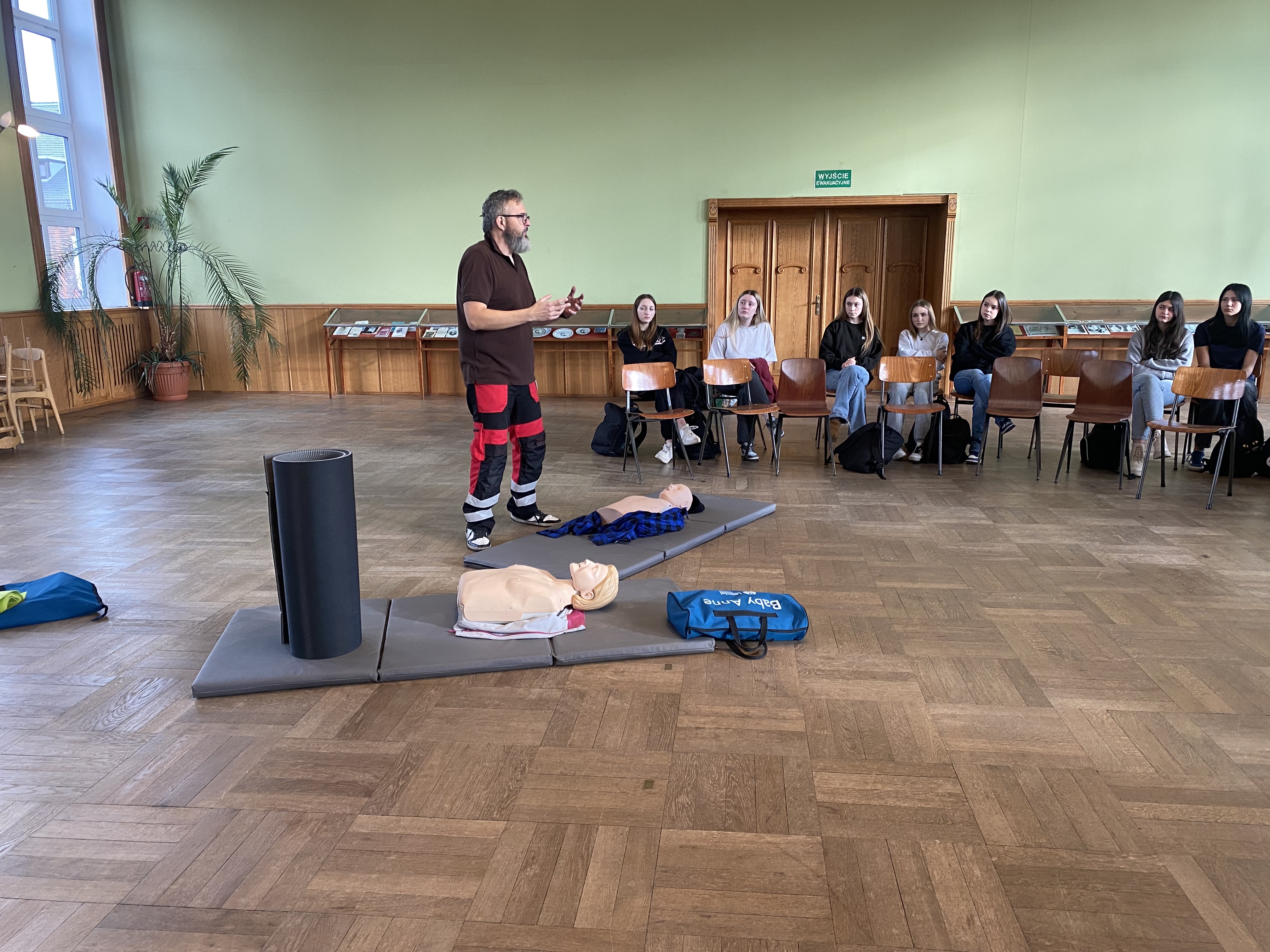 Głównym celem zajęć było podniesienie umiejętności udzielania pierwszej pomocy, w sytuacji nagłego zatrzymania akcji serca. Ratownik w sposób profesjonalny przekazywał swoja wiedzę na temat jak przeprowadzić wstępne badanie fizykalne oraz w jaki sposób prowadzić masaż serca i oddech zastępczy.