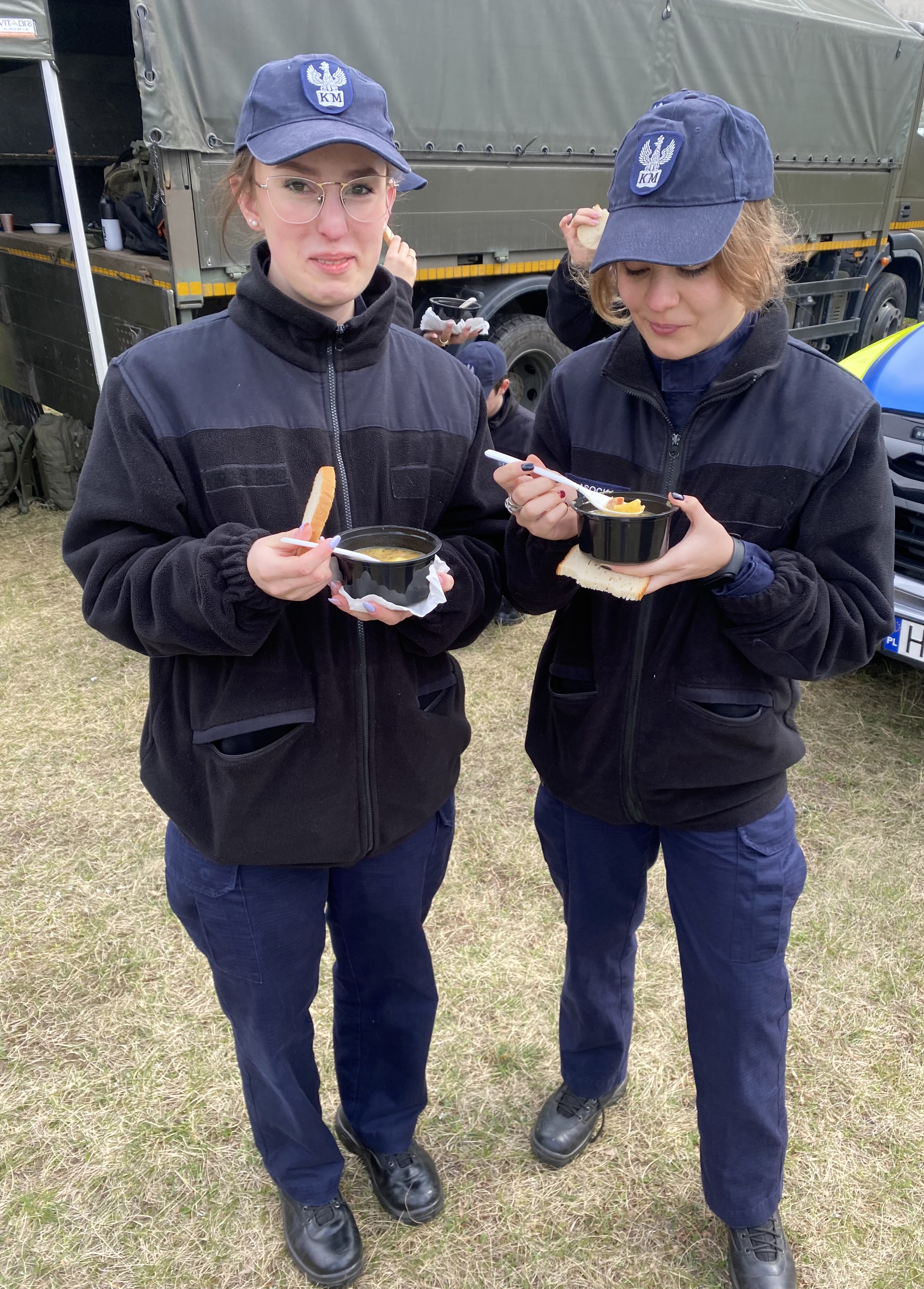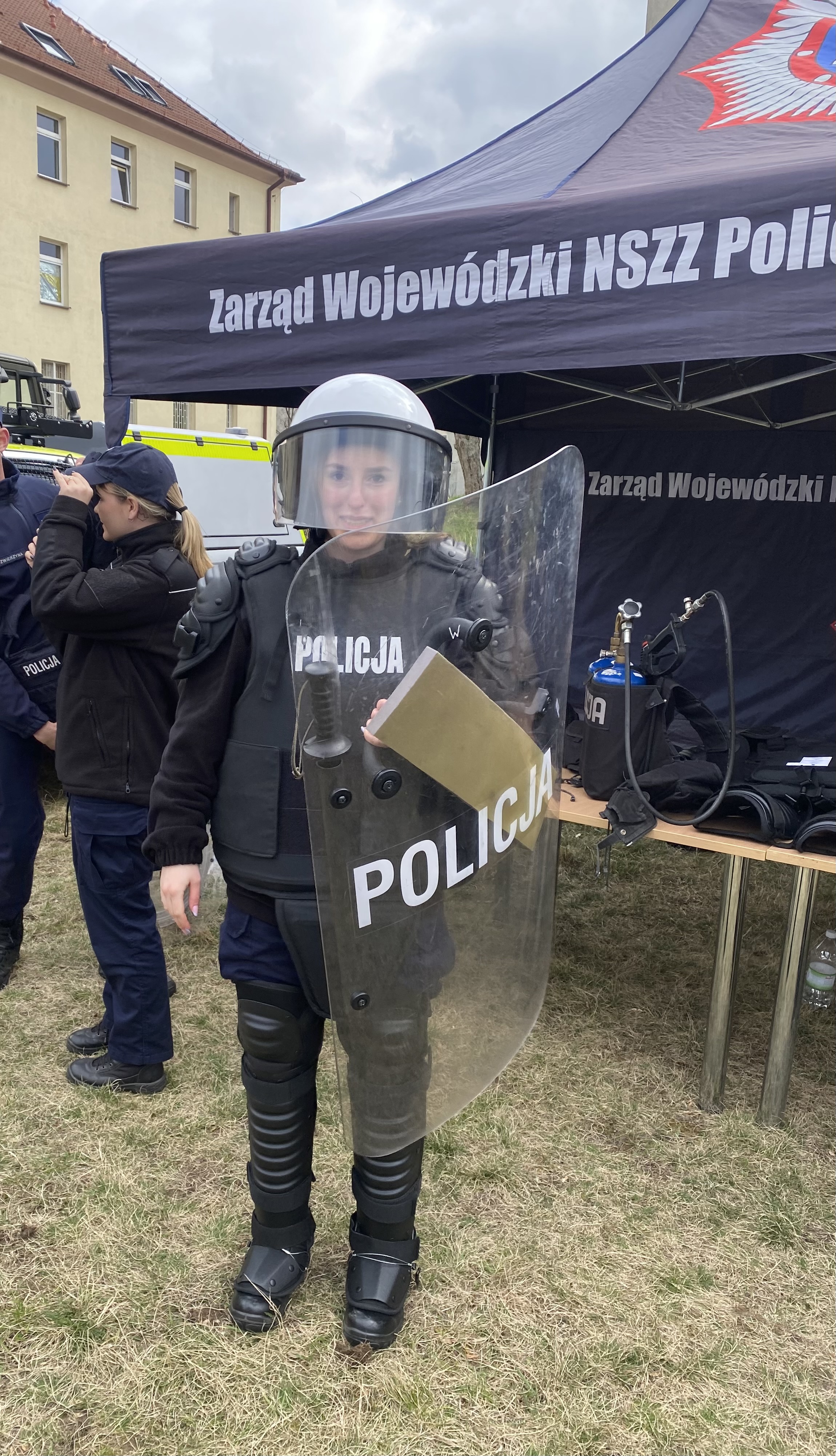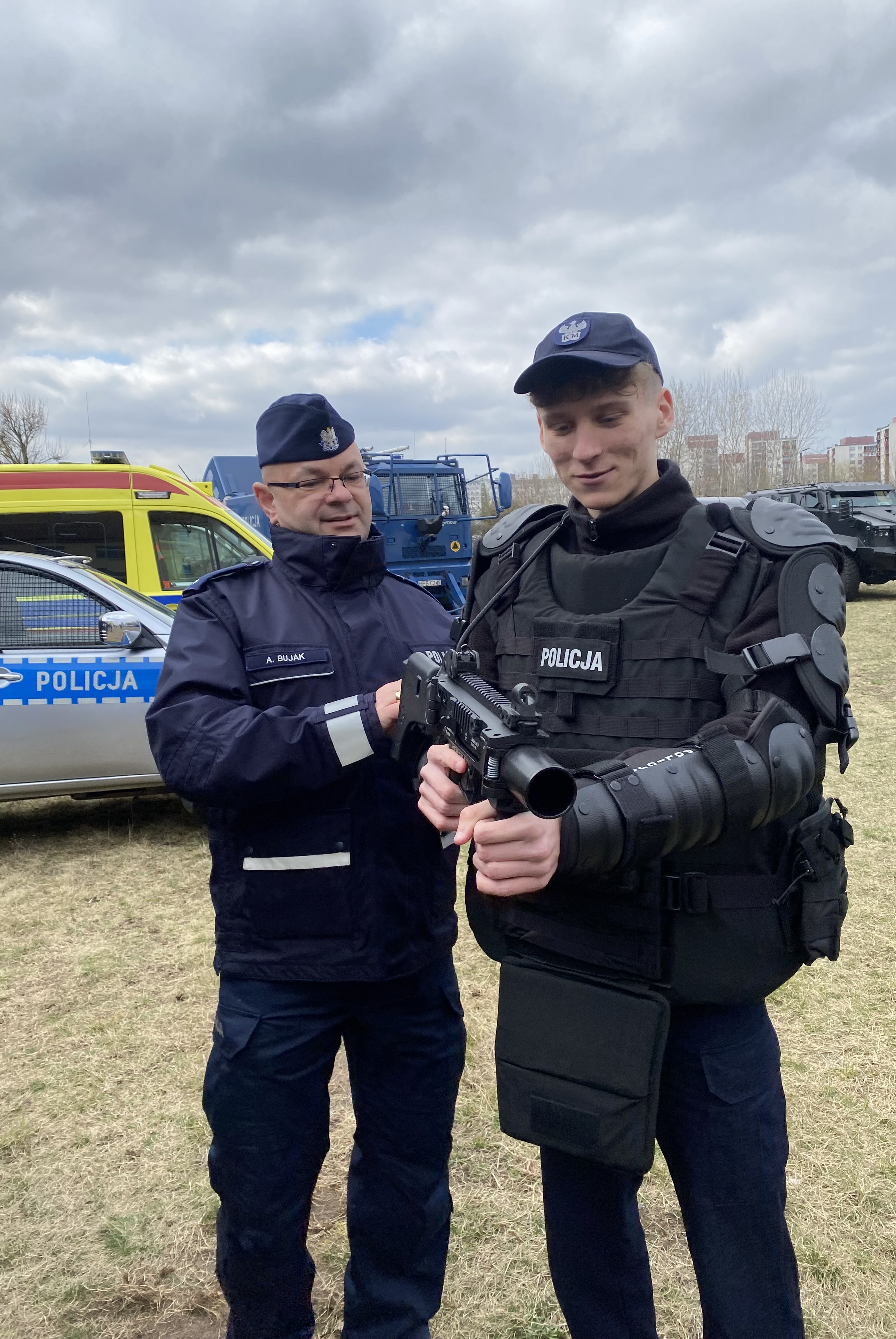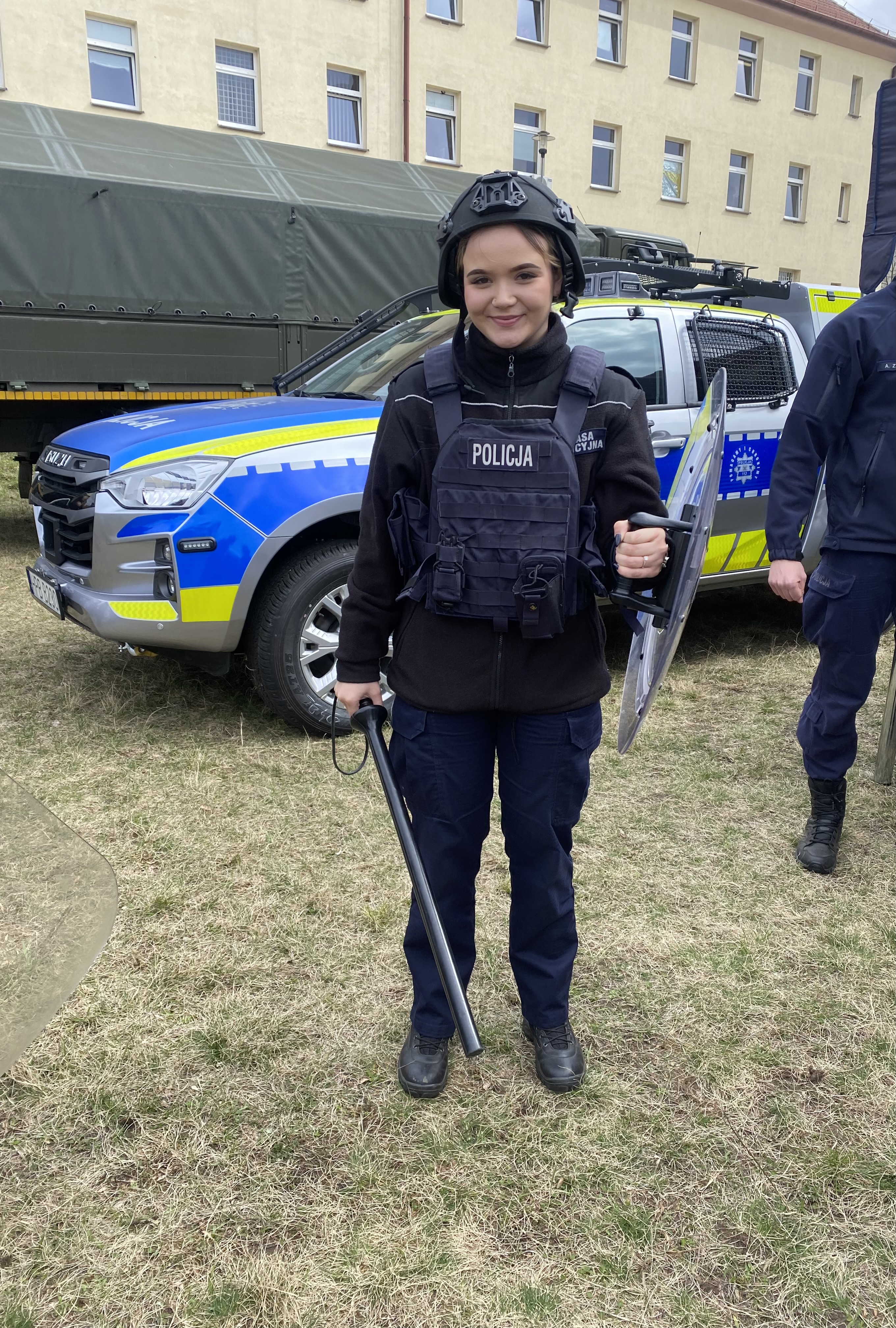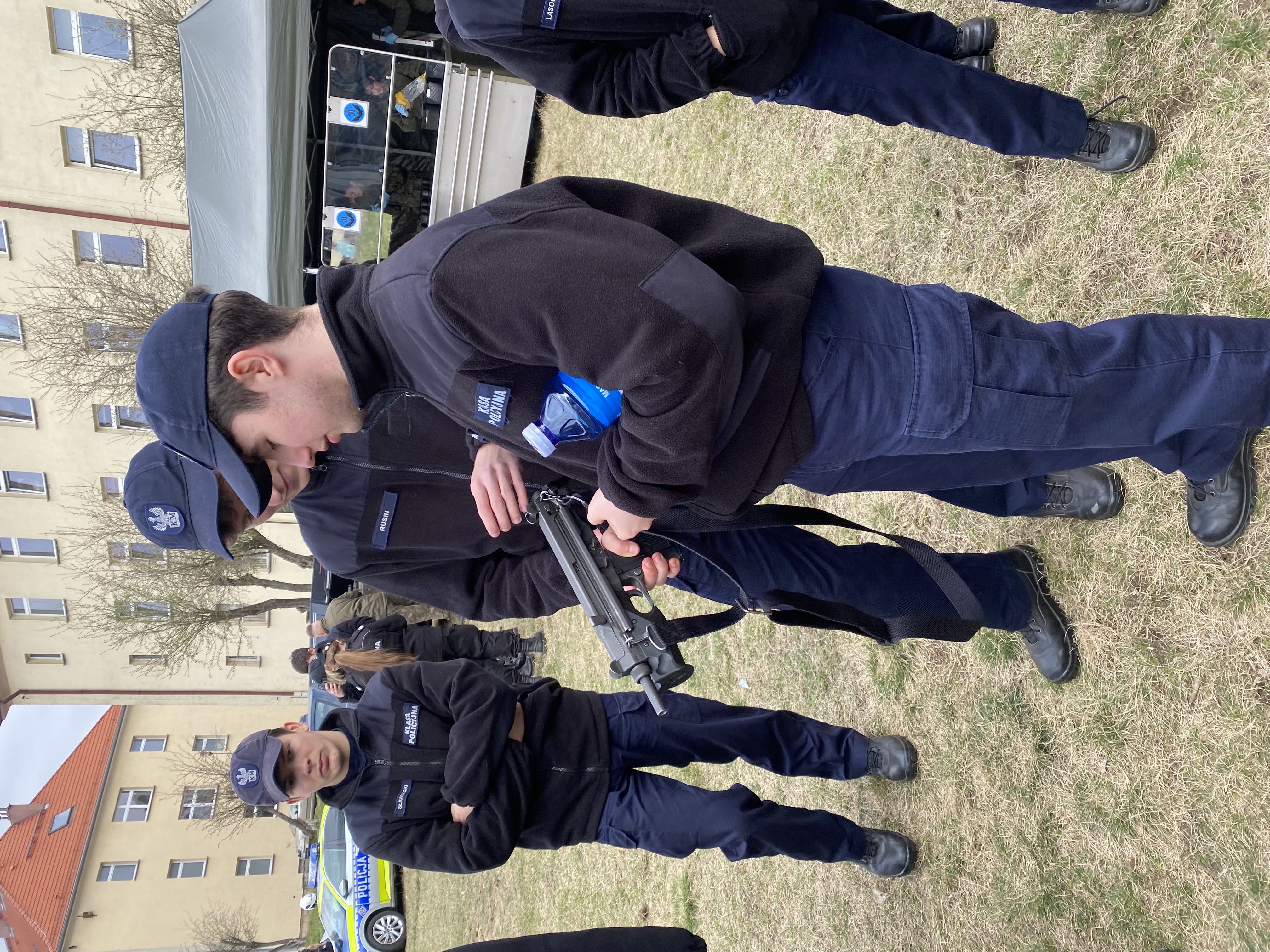 Ponadto, każdy z uczestników miał wyjątkową okazję założyć specjalistyczne umundurowanie, a także zobaczyć i dotknąć prawdziwą broń, która obecnie znajduje się na wyposażeniu polskiej Policji. Uczniowie z dużym zainteresowaniem przyglądali się prezentowanym sprzętom, a ich zaangażowanie było widoczne podczas całego wydarzenia. Na zakończenie wszyscy mogli skosztować pysznej, wytrawnej grochówki, przygotowanej przez żołnierzy, co stanowiło doskonałe zwieńczenie spotkania.