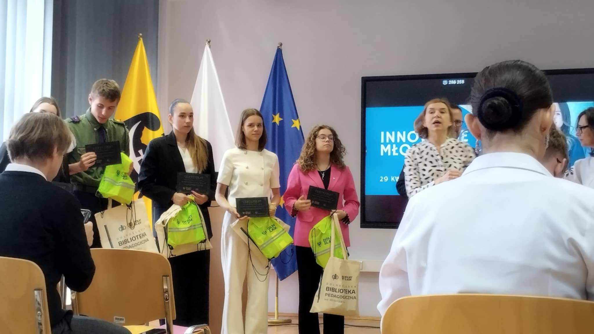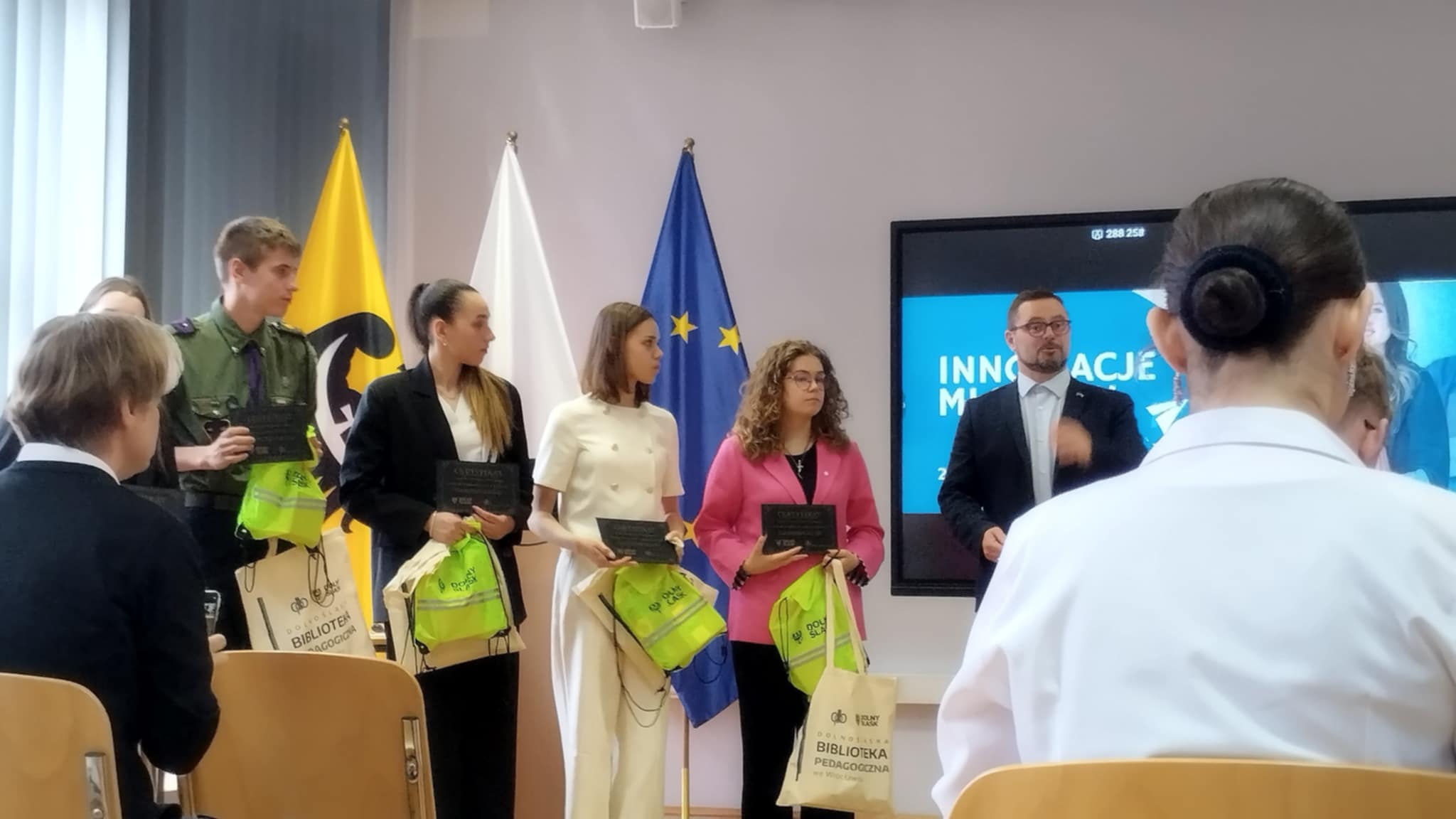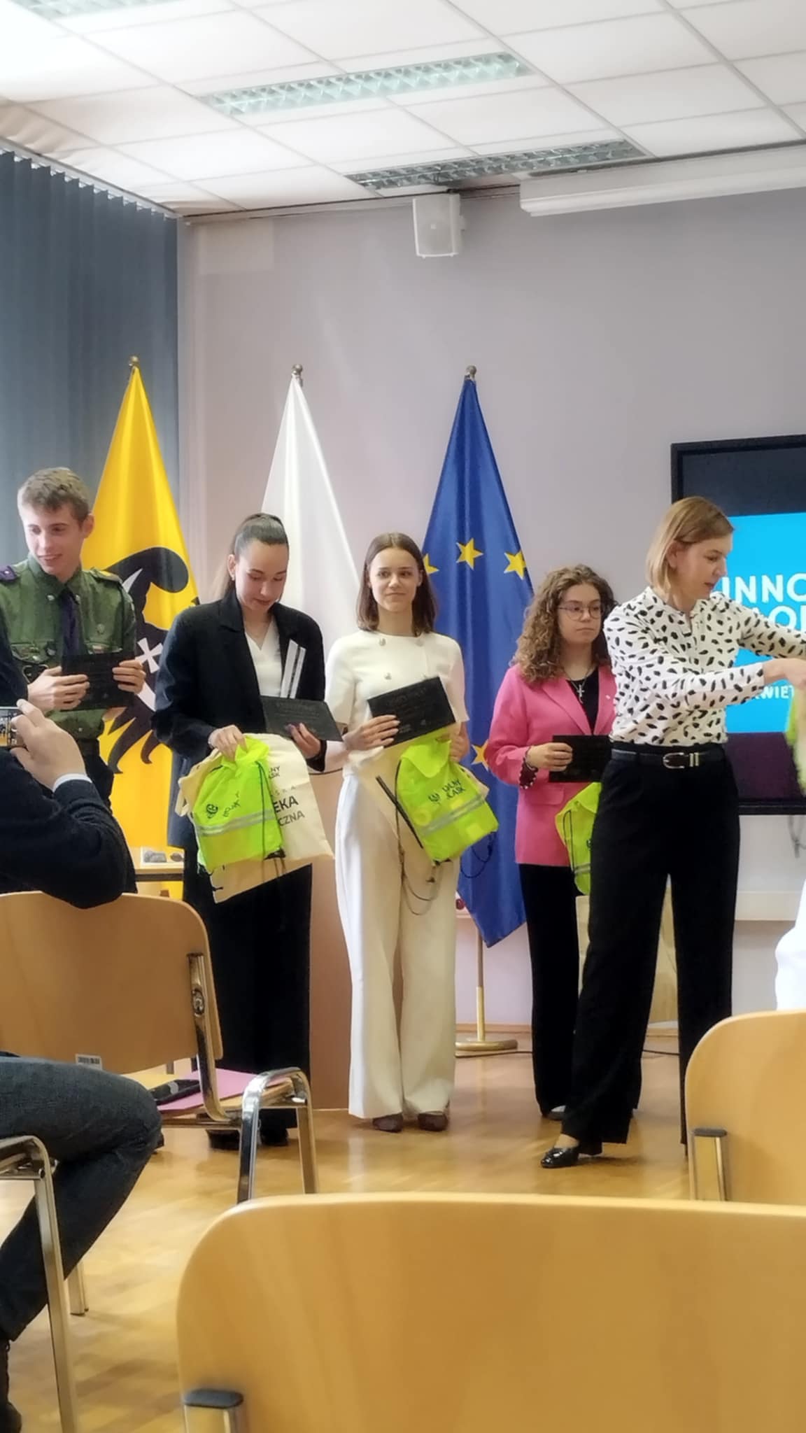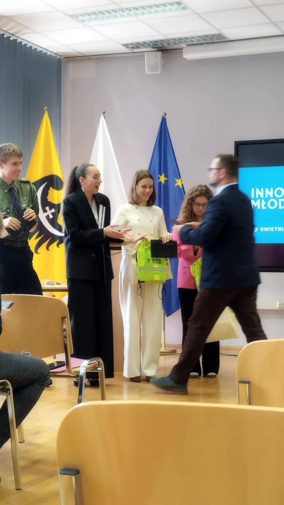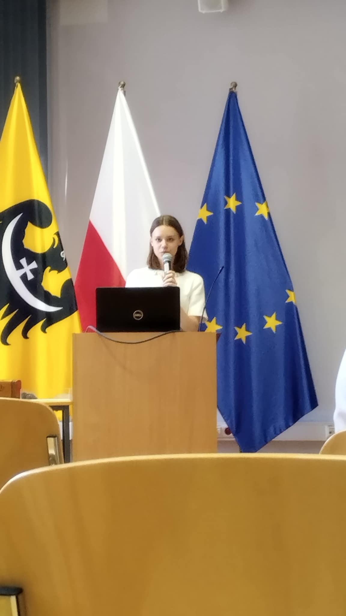 Choć tym razem nie udało się zdobyć miejsca na podium, udział w finale był dla Leny cennym doświadczeniem, a sam konkurs stanowił doskonałą okazję do promocji naszej szkoły na szczeblu wojewódzkim. W czasie wydarzenia Lenie towarzyszyli Inga Rękosiewicz i Hubert Paszkowiak, którzy przygotowali i zaprezentowali kreatywną i pełną humoru scenkę tematyczną na temat Francji, wzbogacając tym samym występ naszej uczennicy i przyciągając uwagę publiczności. Serdecznie gratulujemy Lenie oraz osobom wspierającym – Indze i Hubertowi – za godne reprezentowanie szkoły i życzymy dalszych sukcesów w przyszłych przedsięwzięciach!