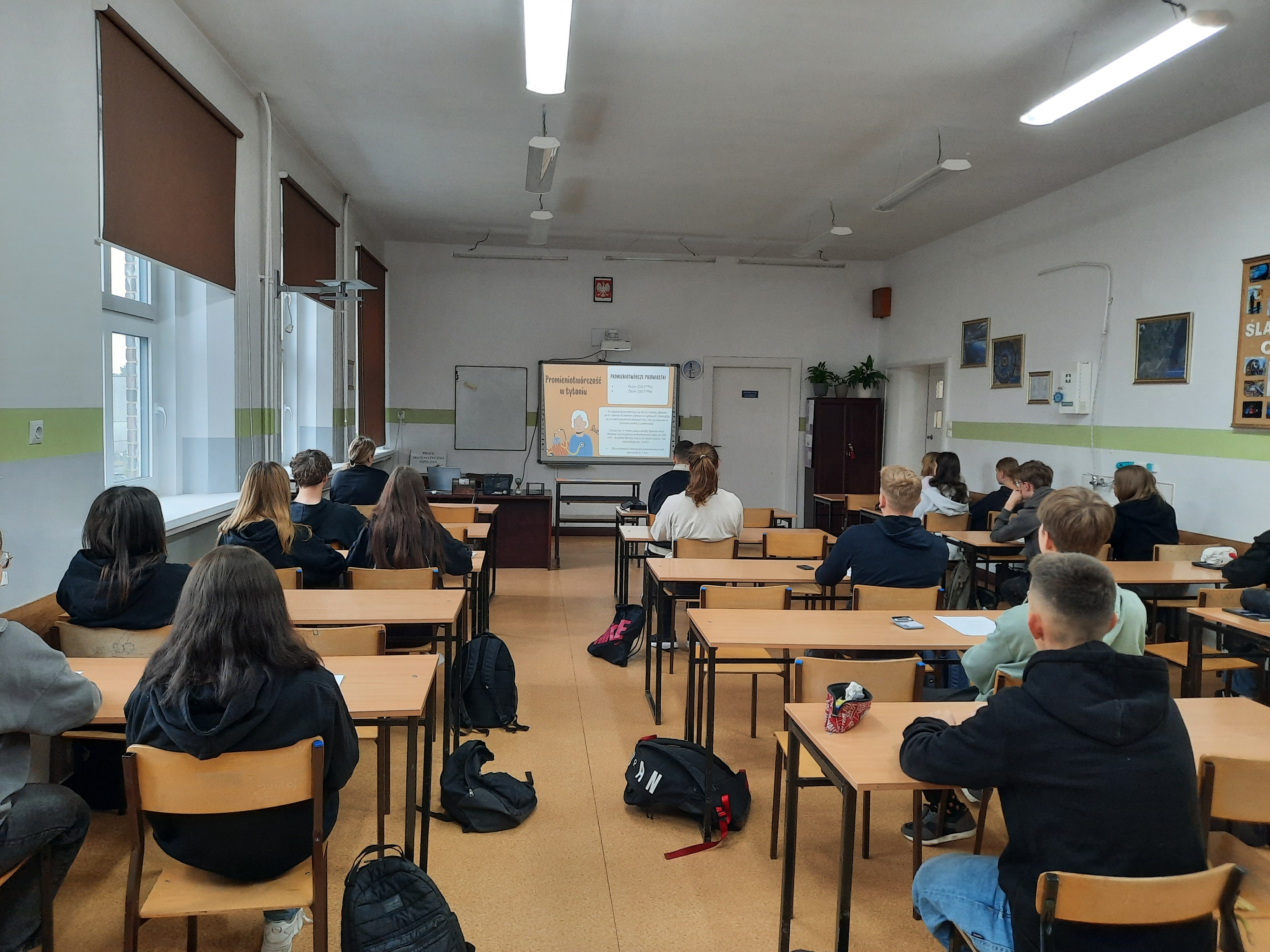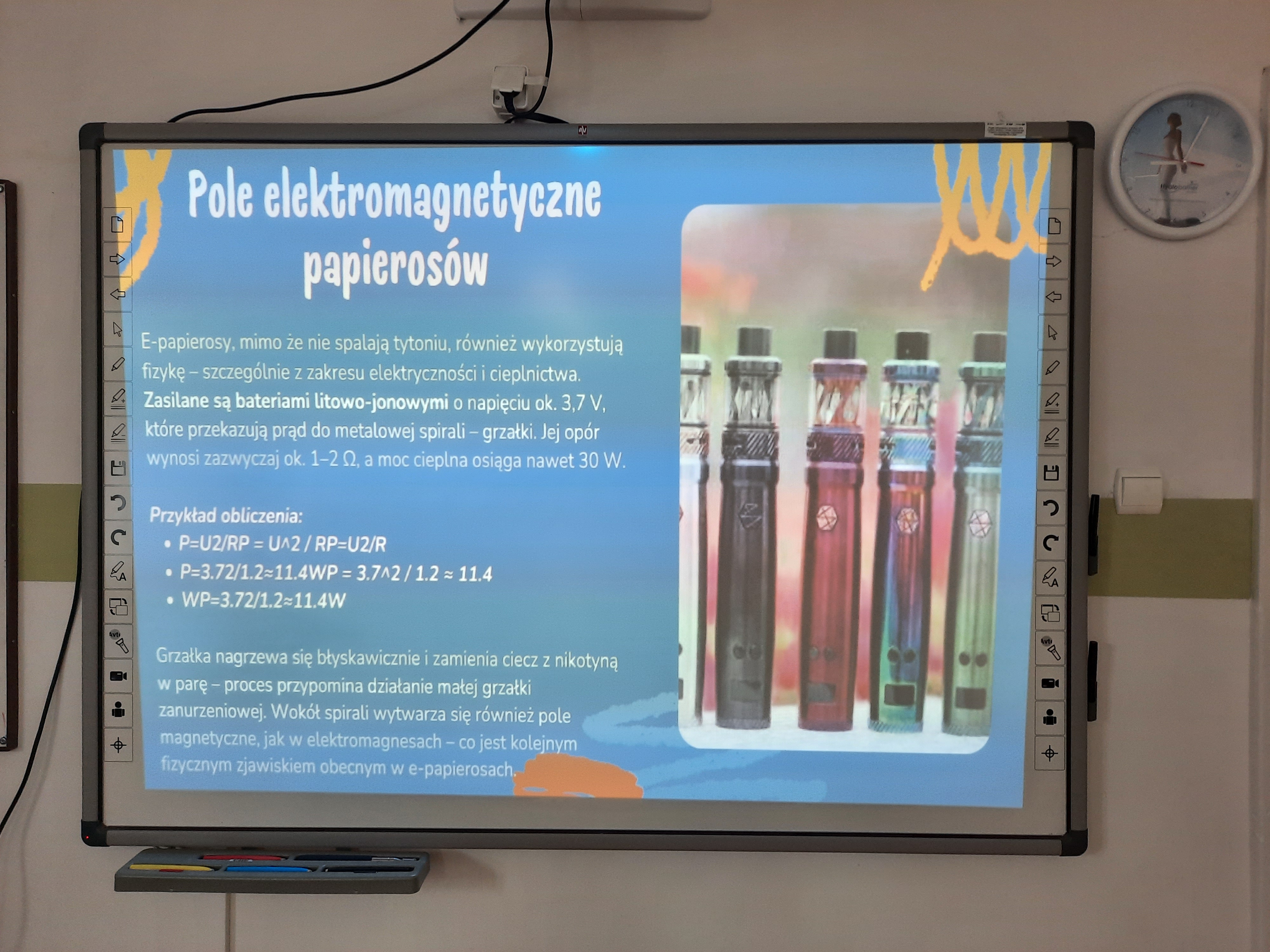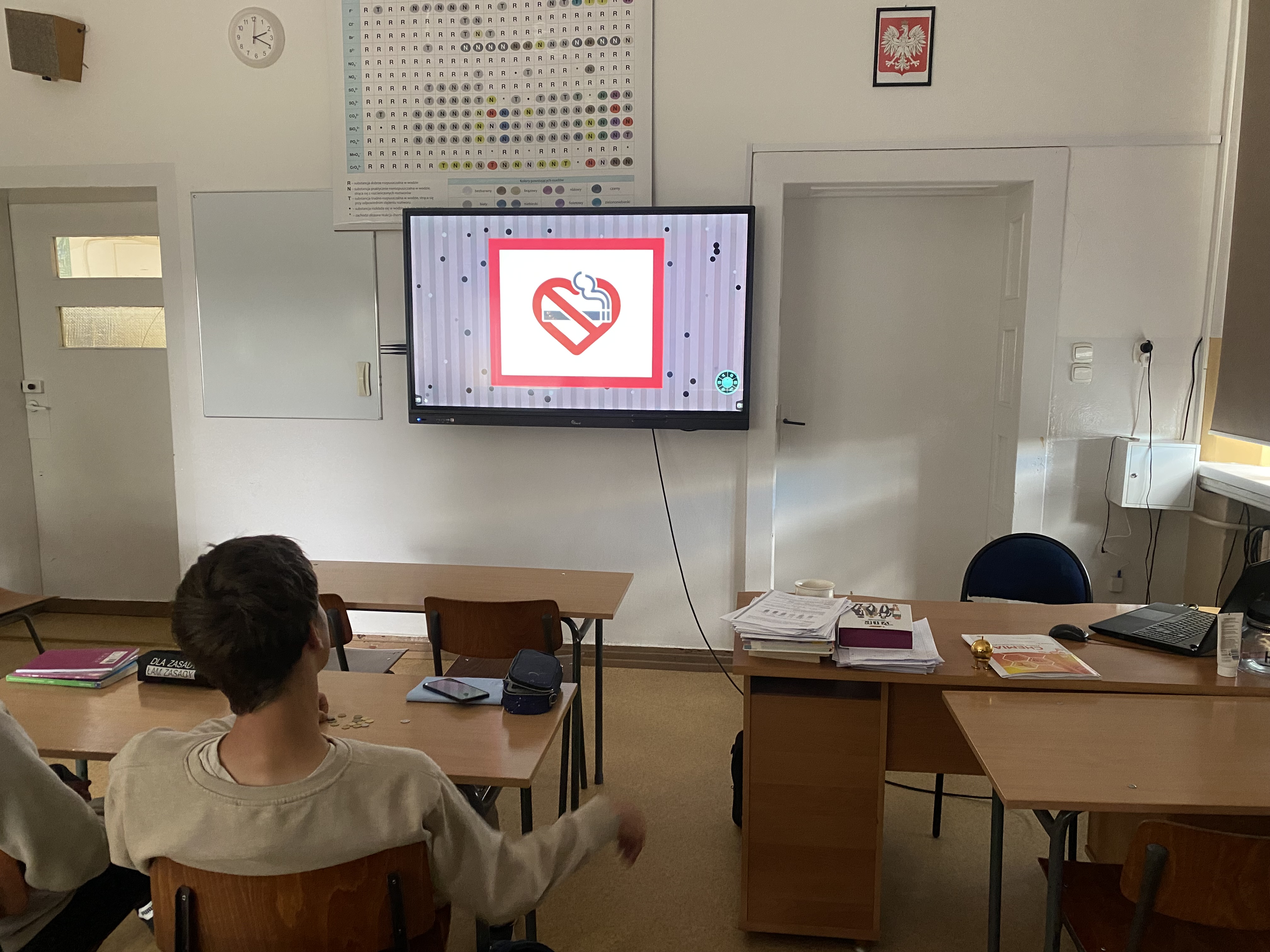 Na lekcjach fizyki pod hasłem „Fizyka w cieniu dymu-nikotyna” uczniowie reprezentowali i dyskutowali na temat negatywnego wpływu nikotyny na organizm człowieka.