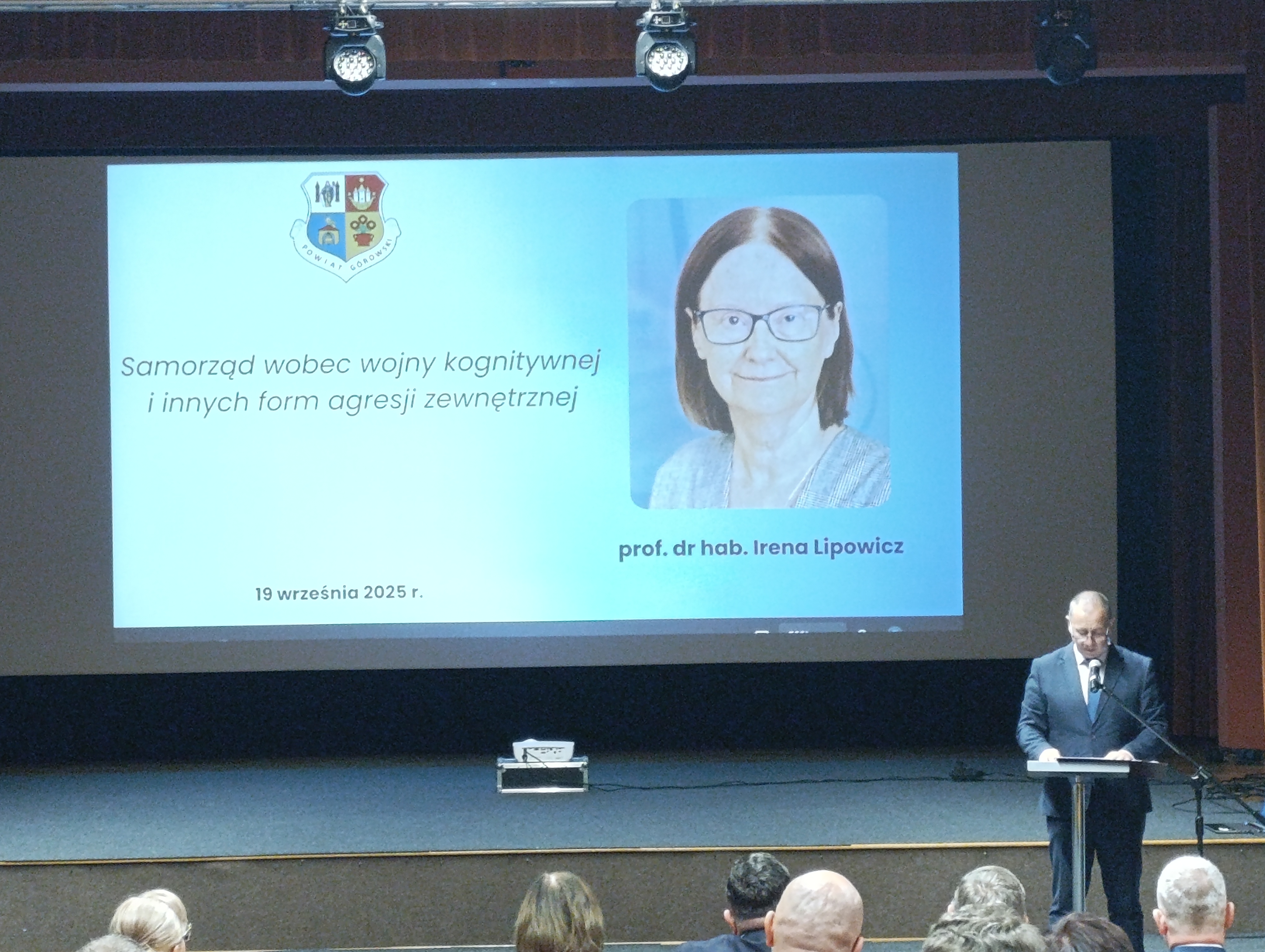 W trakcie spotkania prof. Lipowicz wygłosiła wykład na temat „Samorząd wobec wojny kognitywnej i innych form agresji zewnętrznej”. Prelegentka w bardzo interesujący sposób omówiła tematykę wojny kognitywnej, czyli nowej formy agresji zewnętrznej prowadzonej w sferze świadomości społecznej. Wyjaśniła, że działania tego typu polegają na wywieraniu wpływu na sposób myślenia, decyzje i emocje ludzi przy pomocy informacji, psychologii i technologii zastosowania różnych metod manipulacji i szerzenia dezinformacji. W tym kontekście podkreśliła rolę samorządów w budowaniu odporności społeczności lokalnych na dezinformację i inne zagrożenia.