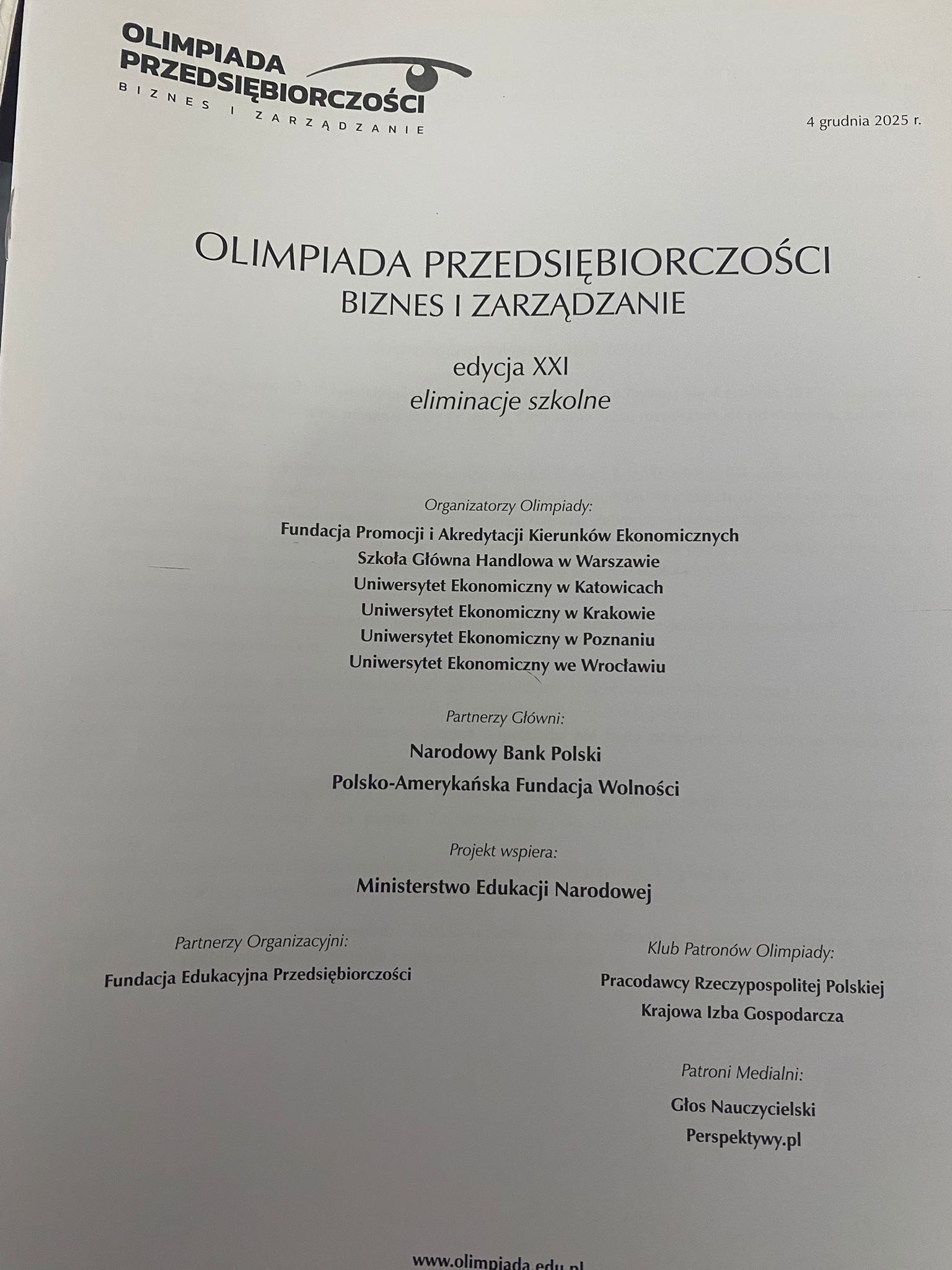 Olimpiady Wiedzy Ekonomicznej Olimpiadzie. Zawody I stopnia (szkolne) odbyły się na