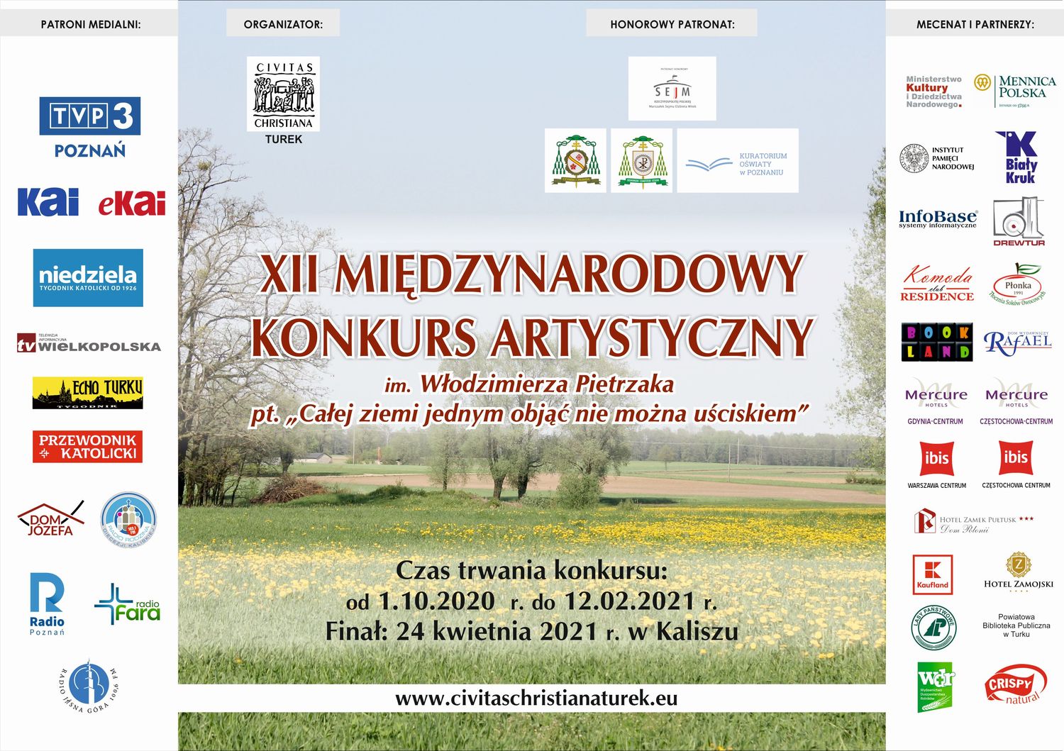 W tegorocznym - XII finale Międzynarodowego Konkursu Artystycznego patronat honorowy sprawowali między innymi Elżbieta Witek, Marszałek Sejmu Rzeczypospolitej Polskiej Robert Gaweł, Wielkopolski Kurator Oświaty oraz Jego Ekscelencja Arcybiskup Wojciech Polak, Metropolita Gnieźnieński, Prymas Polski.
