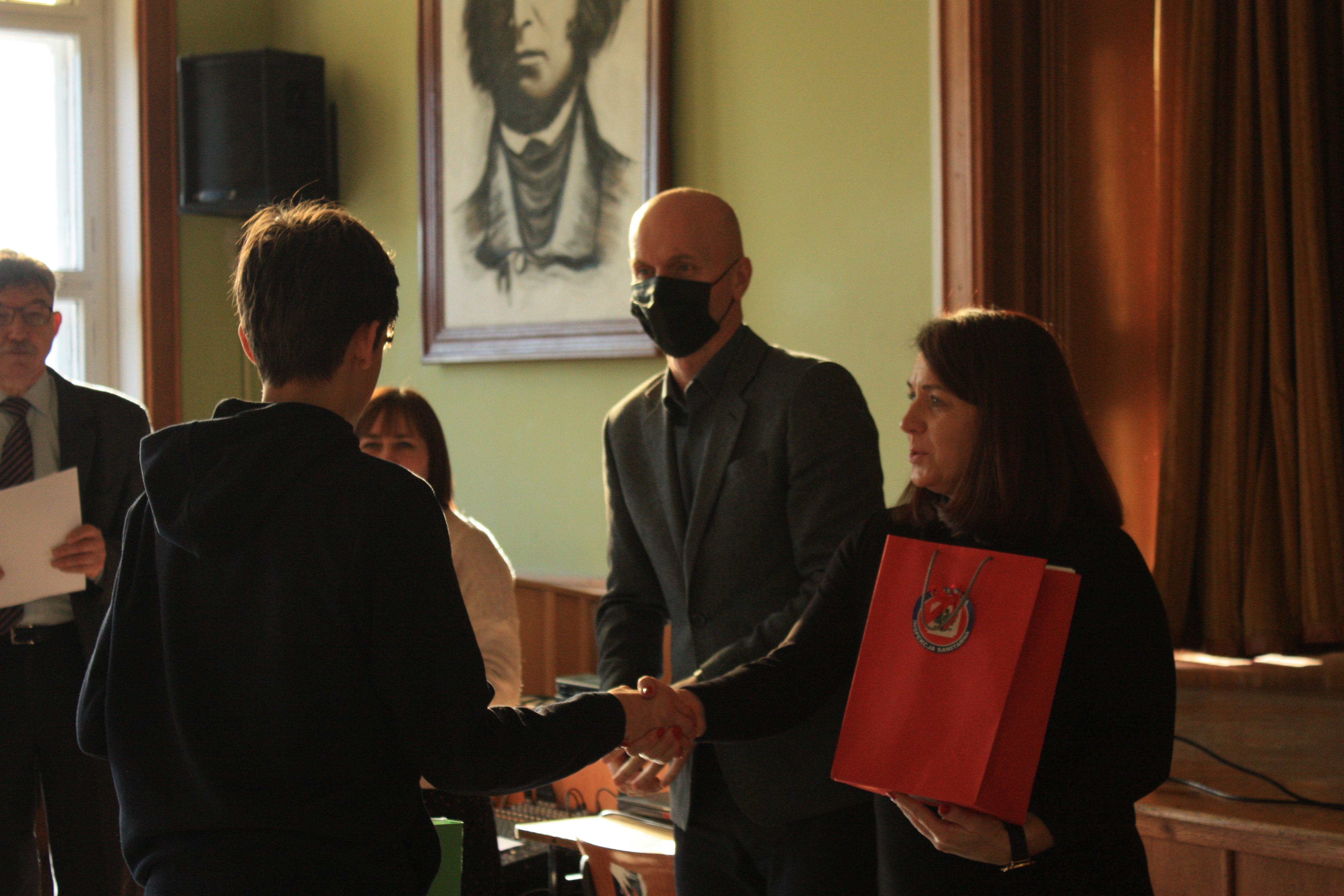 Dyrektor Liceum Ogólnokształcącego w Górze Pani Magdalena Mielczarek przywitała Sekretarza Starostwa Powiatowego w Górze Pana Piotra Wołowicza oraz zaproszonych gości i otworzyła konkurs.