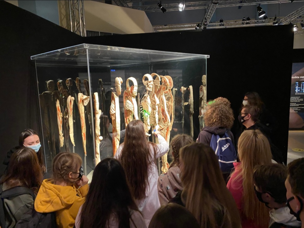 Po zakupach i obfitym obiadku nadeszła chwila, na którą wszyscy czekali - uczniowie odwiedzili wystawę Body Worlds, na której mogli poznać budowę człowieka od środka... Na wystawie znajdowało się kilkadziesiąt prawdziwych ludzkich ciał, które wcześniej zostały poddane plastyfikacji, a ta uniemożliwia ich rozkład "To było przerażające, ale również niesamowite!" - mówią jednoznacznie uczniowie. Finalnie, uczniowie odwiedzili Jarmark Bożonarodzeniowy, na którym mieli okazję zjeść oscypki czy napić się gorącej czekolady. Wszyscy w radosnym nastroju i ogromną dawką wiedzy na temat anatomii człowieka wrócili do Góry o godzinie 21:30.