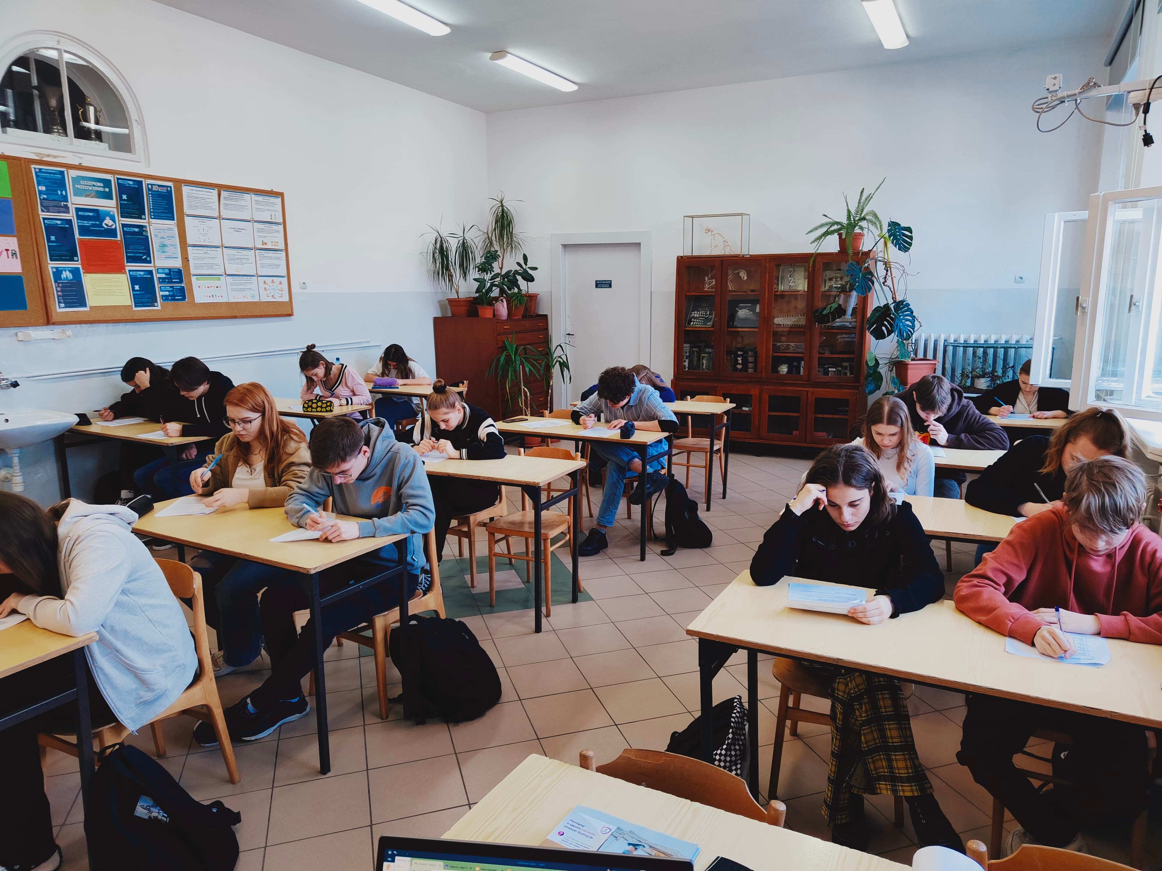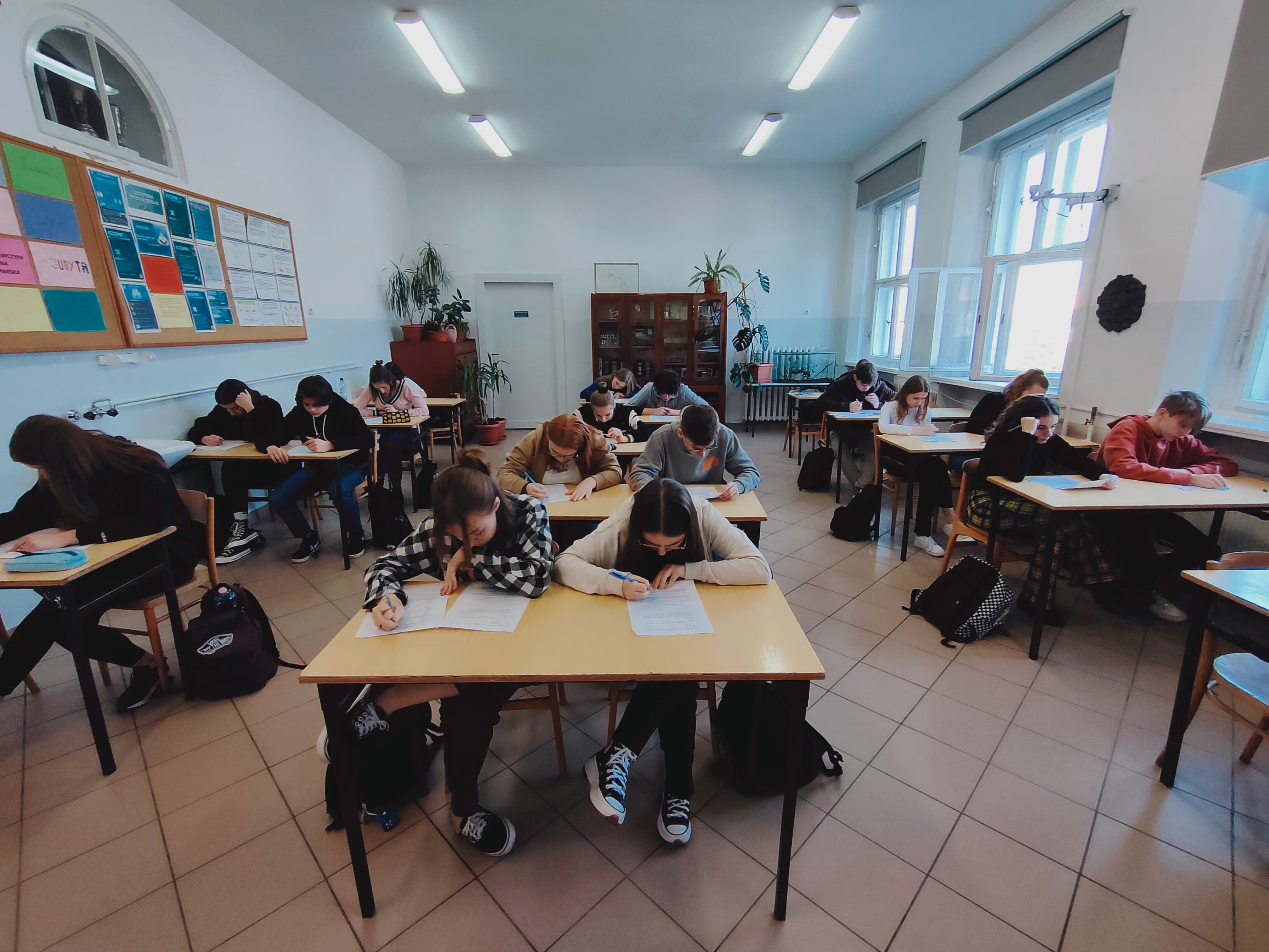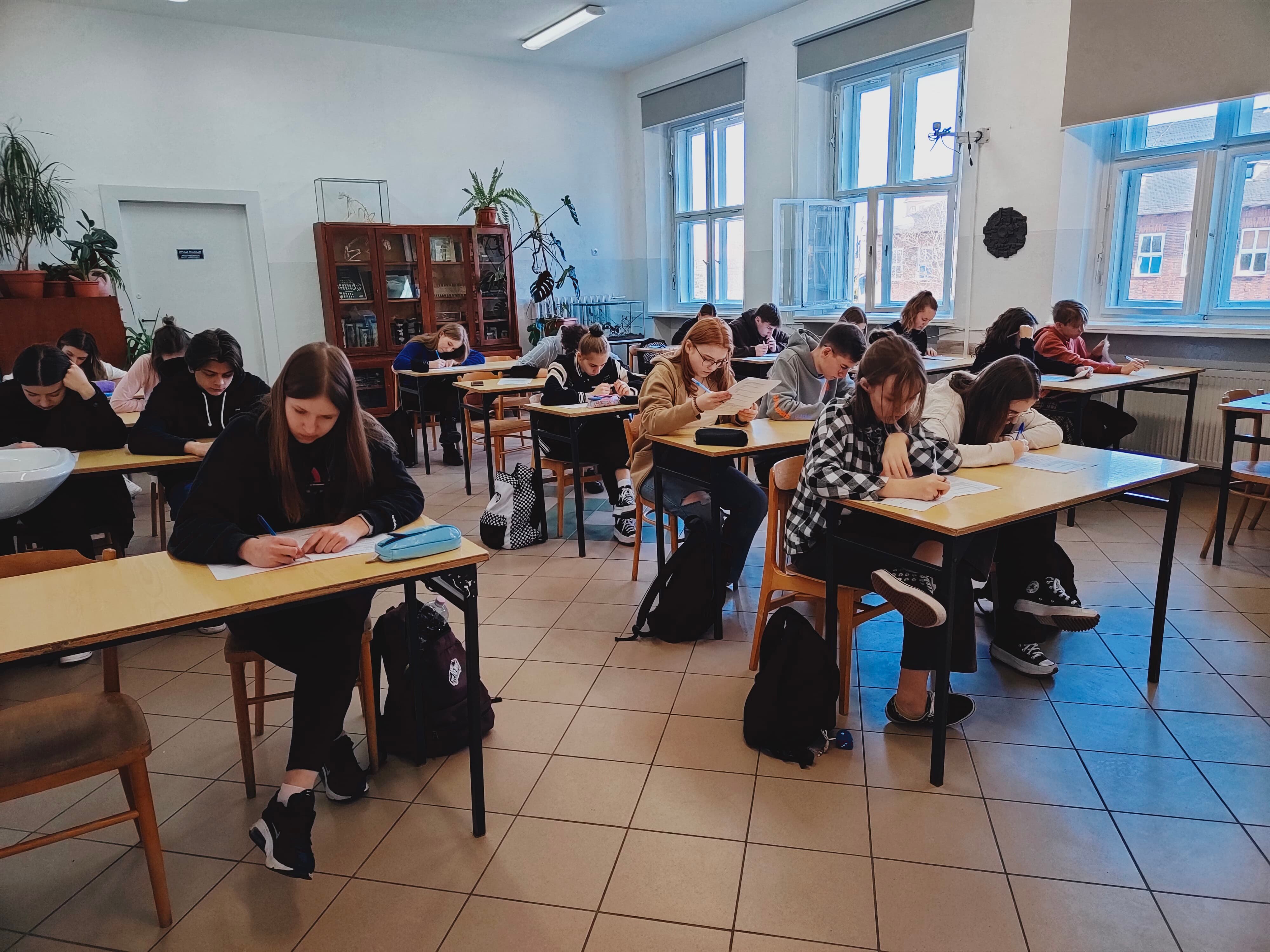 Z 19 uczestników z klas I-III, do następnego etapu przeszło pięć uczennic: Julia Wiśniewska, Weronika Sławińska, Weronika Góral, Aleksandra Bielawska i Natalia Maczuga. Konkurs przeprowadzili pani Irena Dziamarska - nauczycielka biologii i pan Bogusław Sitnik- nauczyciel geografii.