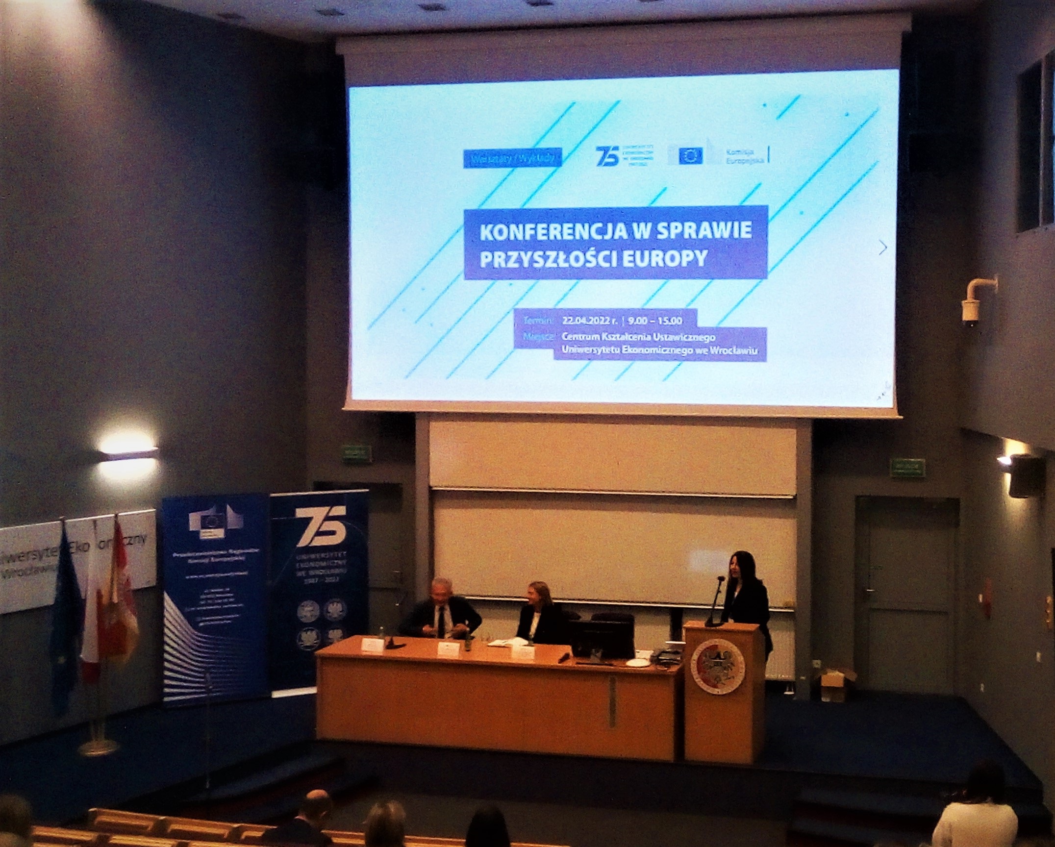 Oficjalnego otwarcia konferencji dokonali, Jego Magnificencja Rektor Uniwersytetu Ekonomicznego we Wrocławiu prof. dr hab. Andrzej Kaleta oraz Zastępczyni Dyrektora Przedstawicielstwa Regionalnego Komisji Europejskiej we Wrocławiu pani Pola Kufel-Ślęczek. Następnie krótki wykład nt. „Rola młodzieży ww kształtowaniu przyszłości Europy” wygłosiła prof. dr hab. Bogusława Drelich-Skulska, Prorektor ds. Akredytacji i Współpracy Międzynarodowej UW we Wrocławiu. Prezentacji koncepcji i założeń młodzieżowej debaty przestawili moderatorzy – eksperci Team Europe, dr hab. Aleksandra Szczerba z Akademii im. Jakuba z Paradyża w Gorzowie Wielkopolskim, jednocześnie pracownik Biura Rzecznika Praw Obywatelskich, dr Paula Wiśniewska z Katedry Studiów Europejskich Uniwersytetu Wrocławskiego i dr Spasimir Domaradzki, pracownik naukowy Uniwersytetu Warszawskiego.