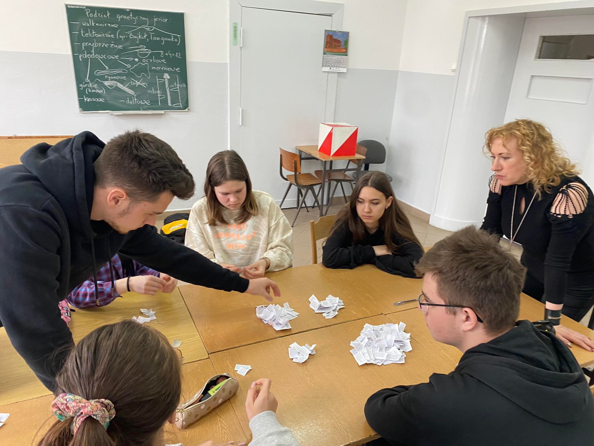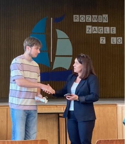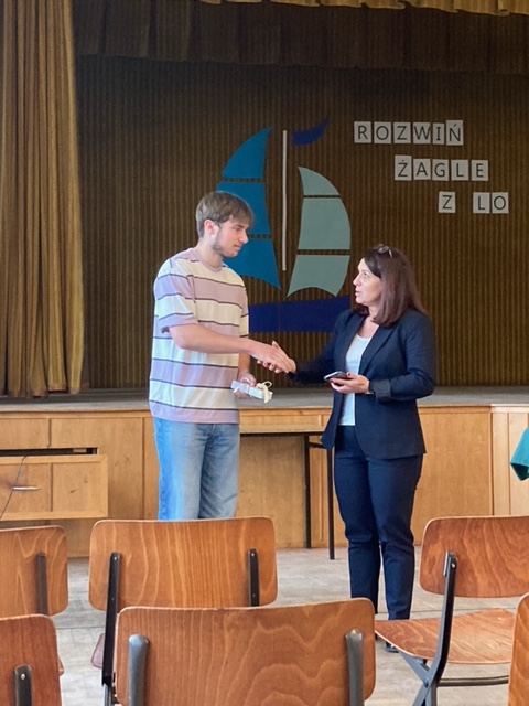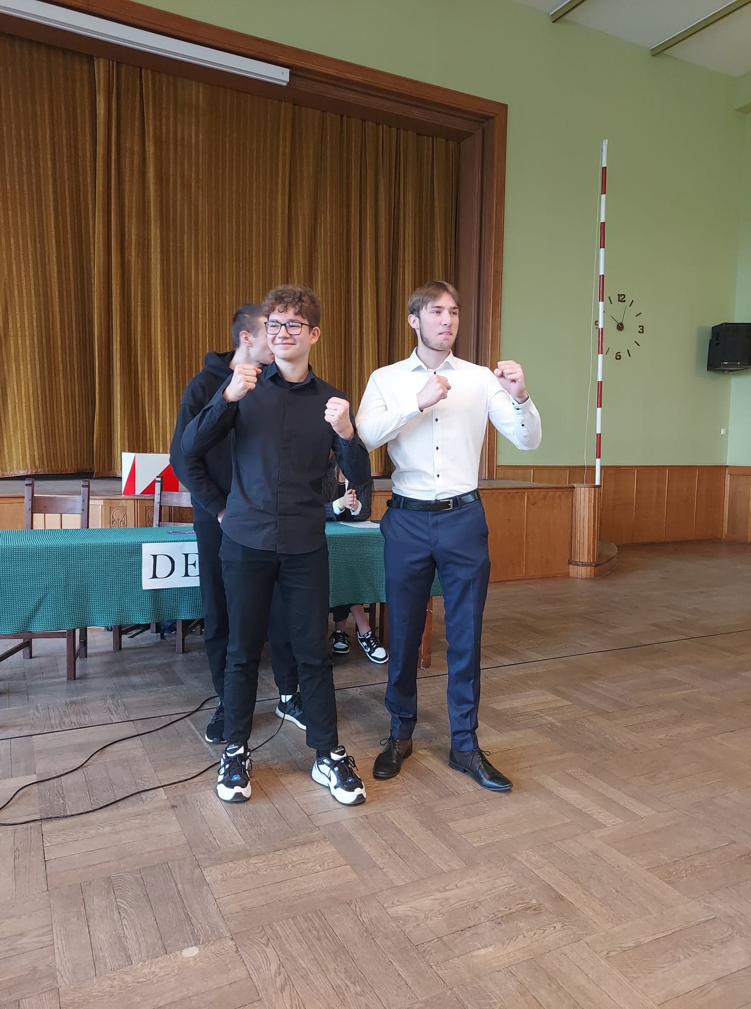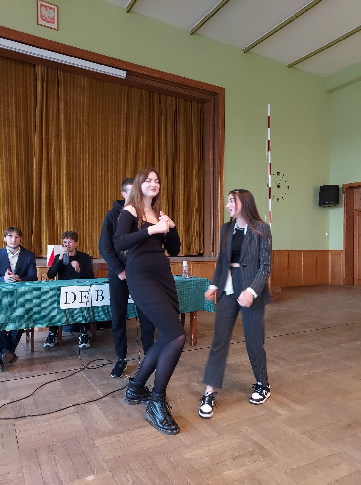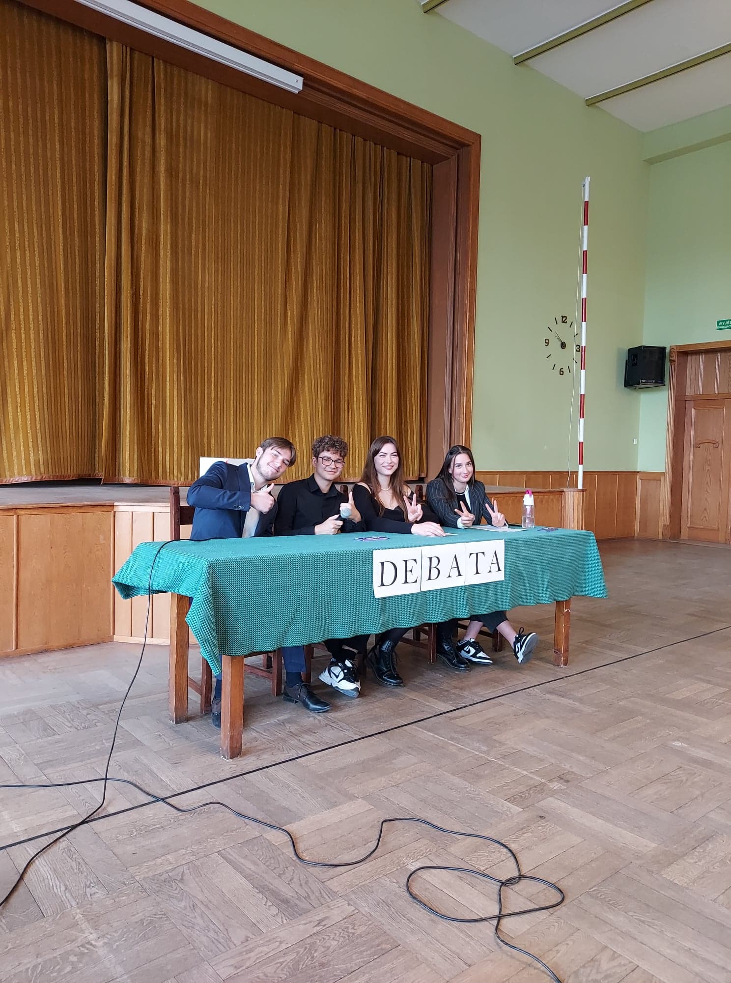 Wszyscy omówili swoje pomysły oraz odpowiedzieli na pytania uczniów i nauczycieli uczestniczących w debacie. Następnie każdy uczeń szkoły oraz pracownicy mogli oddać głos na najlepszego ich zdaniem kandydata. Po policzeniu głosów przez komisję wyborczą wyłoniono zwycięzcę - Tymka Matysiaka, na którego głos oddało 56% wszystkich uczestniczących w wyborach. Pozostali kandydaci zasiądą w radzie Samorządu Uczniowskiego. To bardzo ambitni i kreatywni młodzi ludzie. Tymkowi gratulujemy i życzymy owocnego urzędowania. Pani Dyrektor pogratulowała także osobiście zwycięzcy i wręczyła nowemu przewodniczącemu zestaw piśmienniczy, który zapewne przyda się przy podpisywaniu ważnych dokumentów.