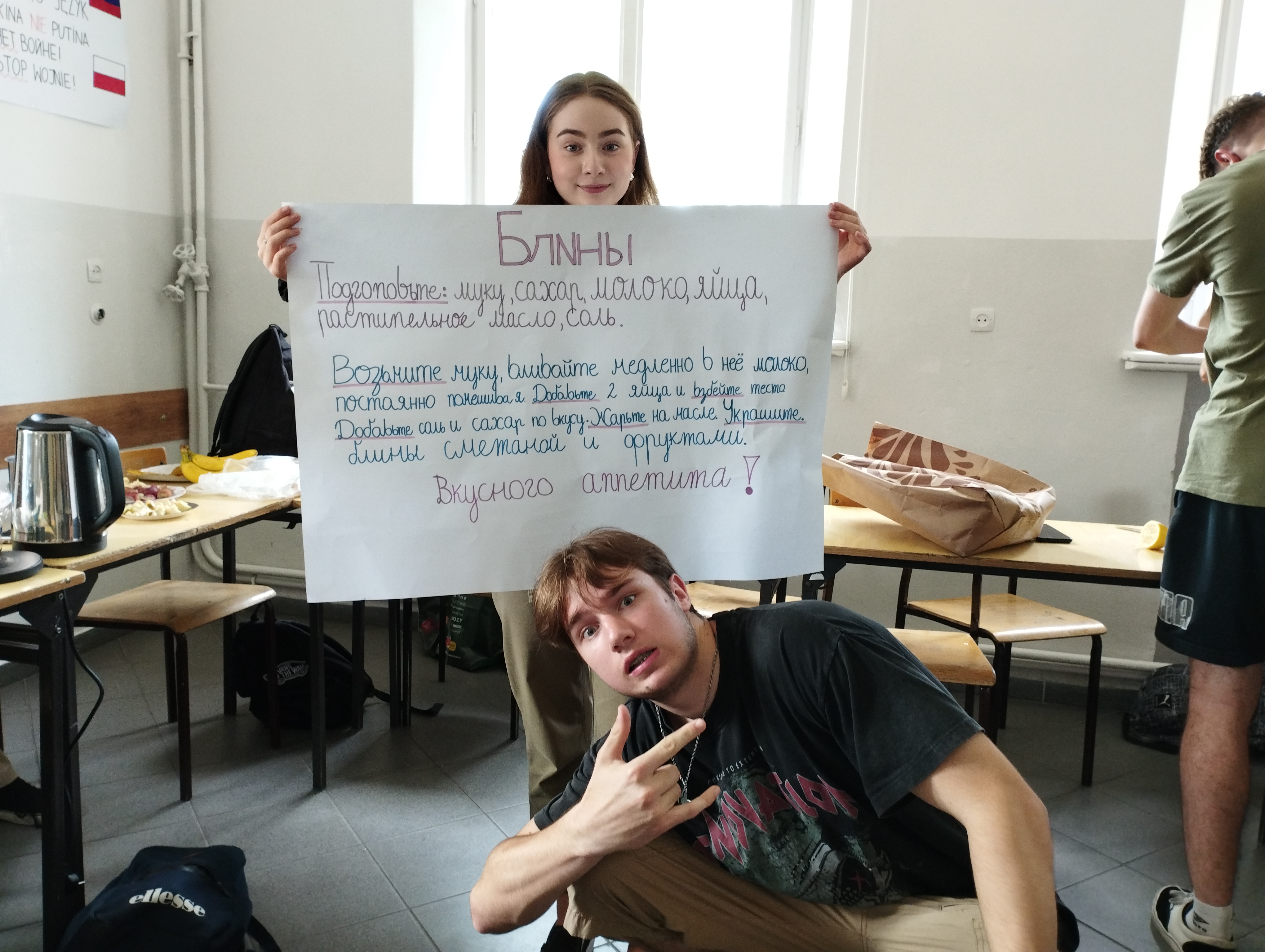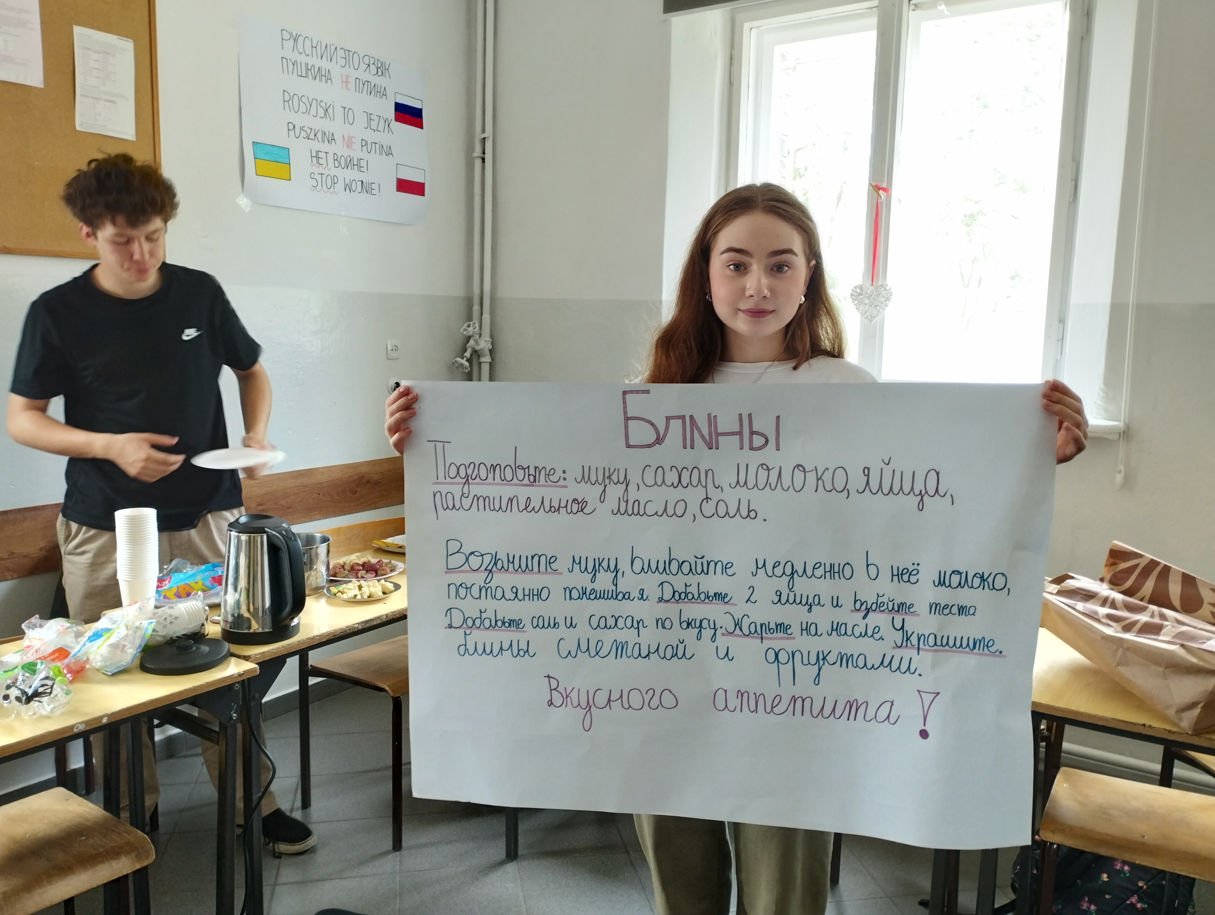 Grupa rosyjska zaprezentowała typowe dania kuchni wschodniej. Nie mogło więc zabraknąć blinów i kaszy. Pojawiła się też sałatka Oliver - siostrzane odbicie polskiej sałatki jarzynowej, a także chałwa, faworki i sałatka rosyjska, bazę której stanowił sos czosnkowo-cytrynowy. Wiosenny akcent dołożył kisiel owocowy.