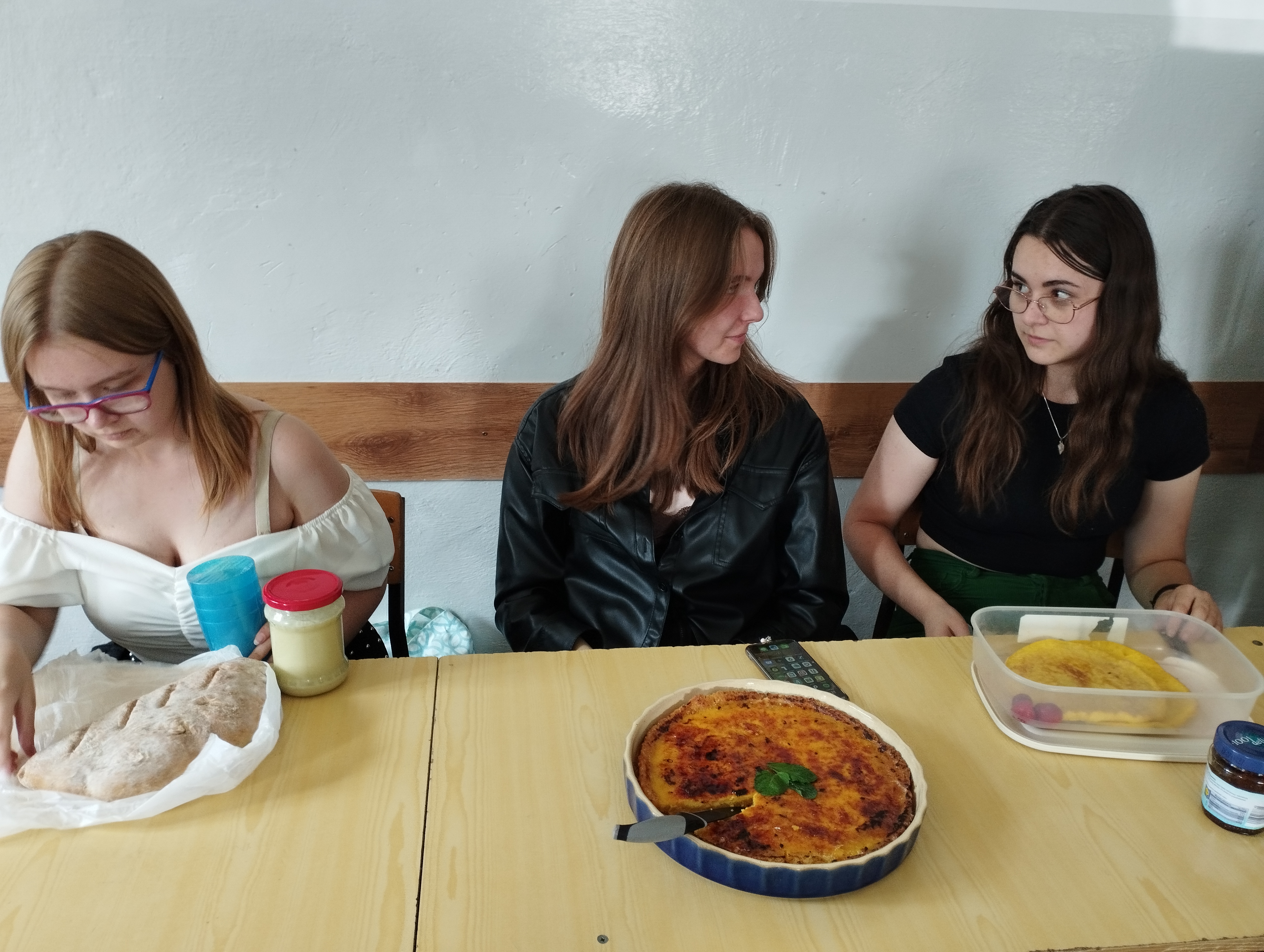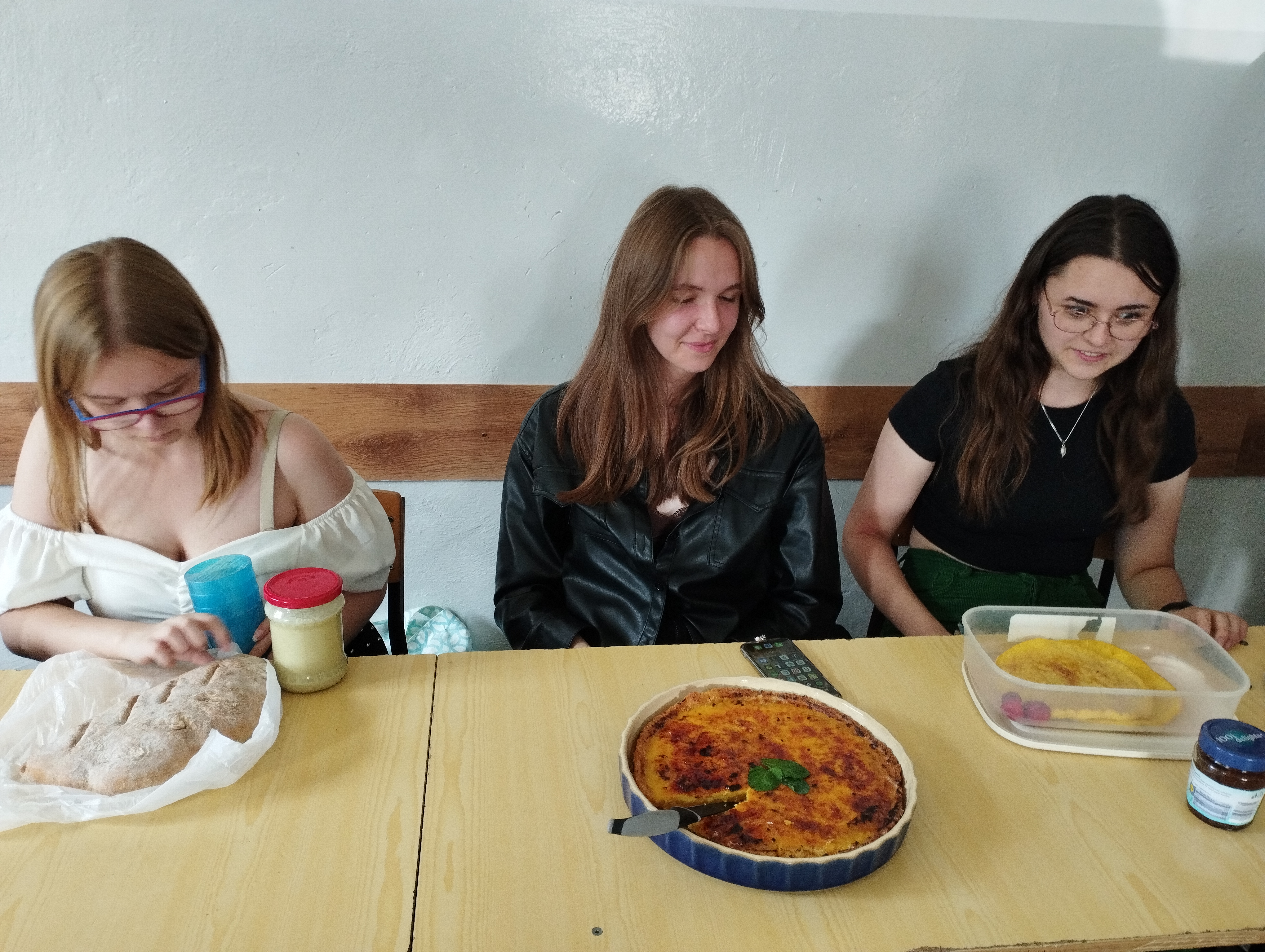 Dziewczyny z grupy francuskiej przygotowały przepyszną tartę Creme Brulle , przyniosły uprzednio upieczony chleb prowansalski a także usmażyły przepiękny złoty omlet.