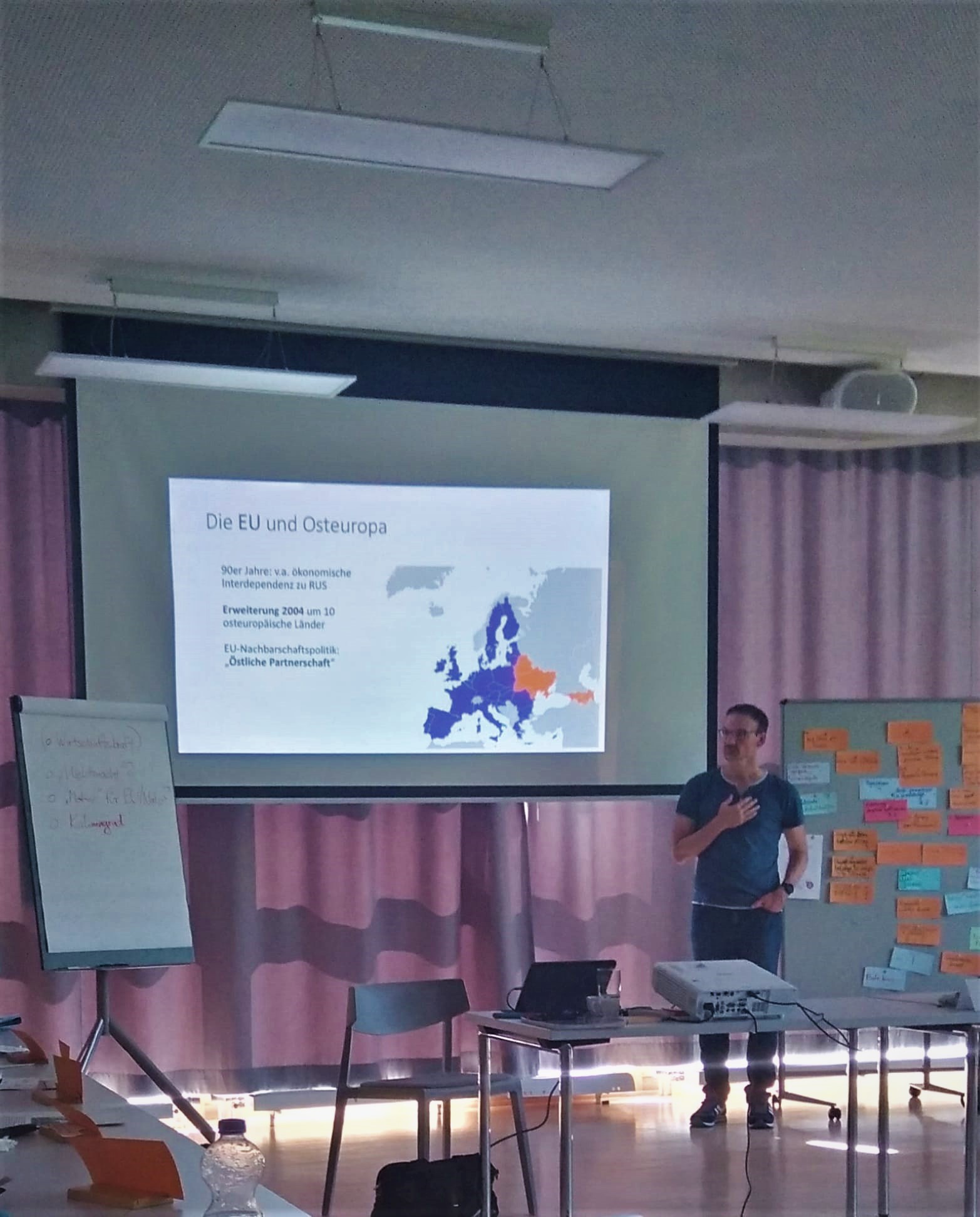 „Czy pokój jest możliwy tylko dzięki broni? Spojrzenie wstecz: czas do 1989 r., 11 listopada 1989 r. i czas do 23.02.2022 r.: Jak kształtowały się stosunki z Rosją? „Czy mamy do czynienia z „przełomem czasów”? „Wojna na Ukrainie i konsekwencje dla dalekowzrocznej polityki zagranicznej, bezpieczeństwa i pokoju”. Te problemy przedyskutowywali uczestnicy seminarium pod kierunkiem politologa dr Simona Moritza.
