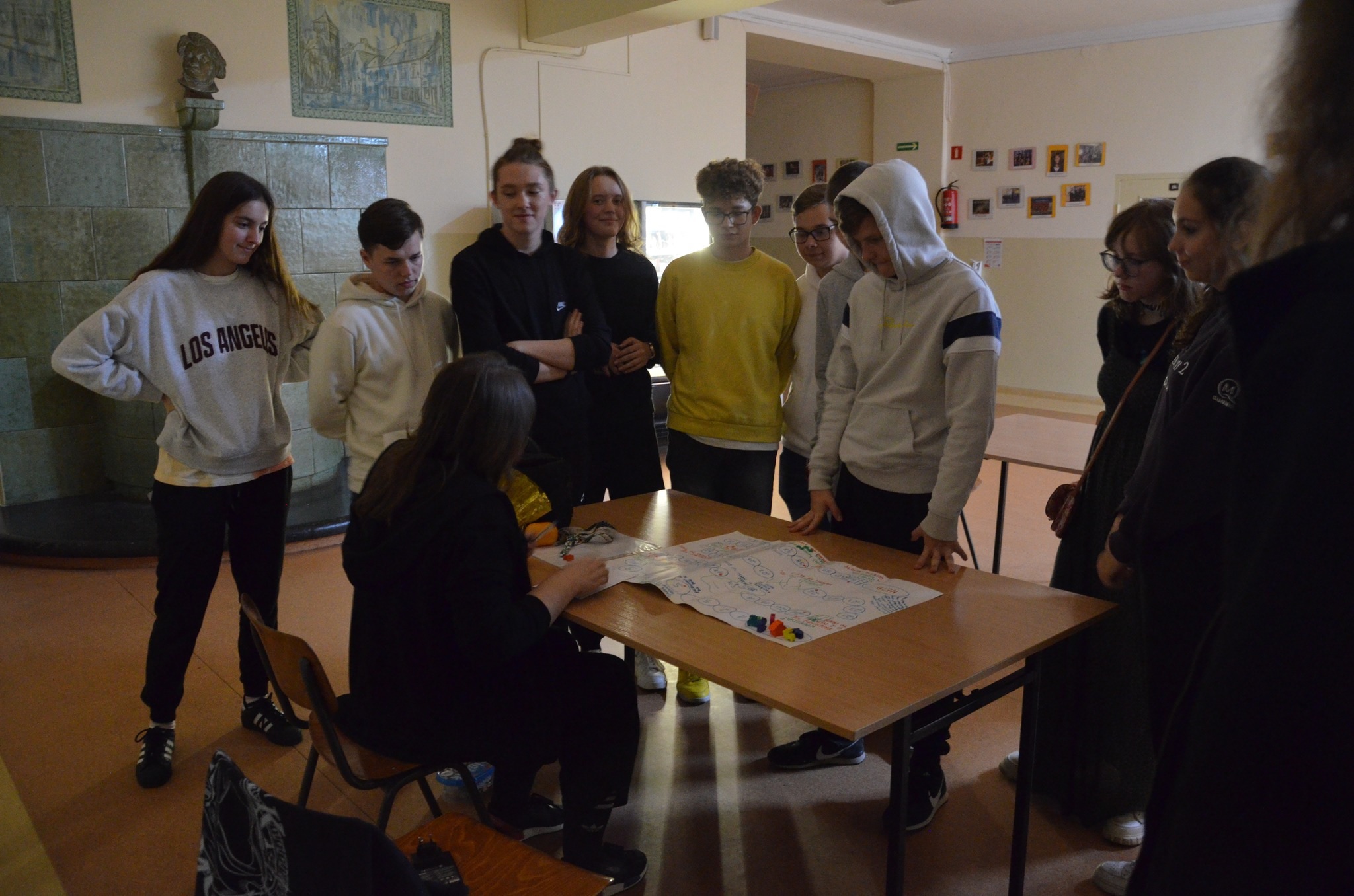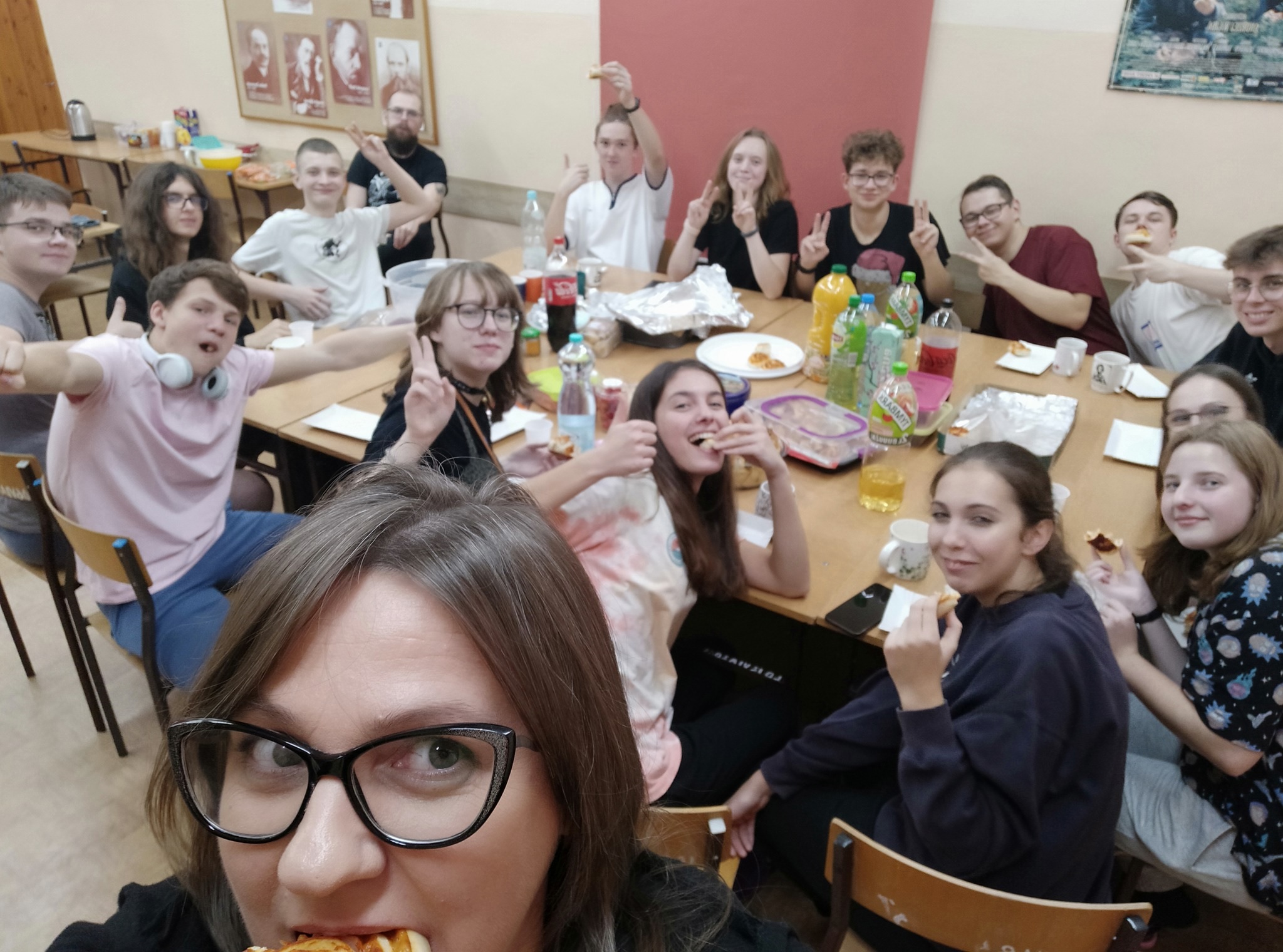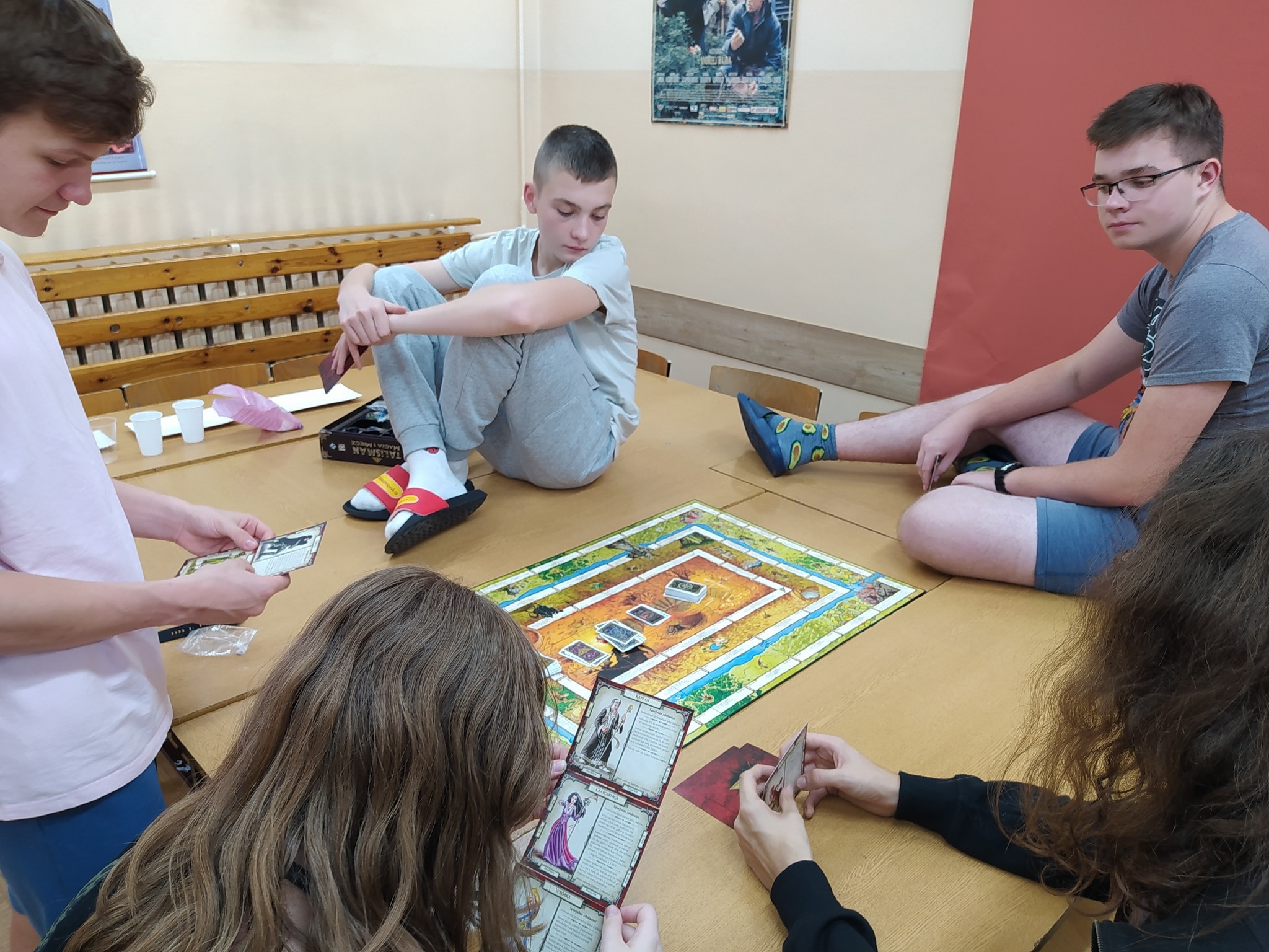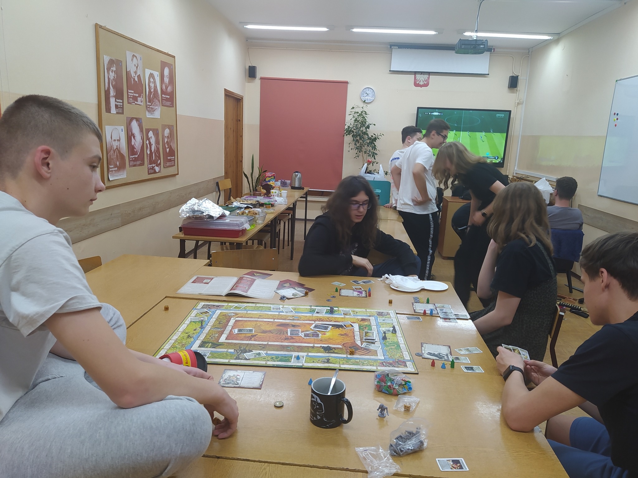 Chcieliśmy, by inauguracja rocznicy objęła właśnie wewnętrznie nasze koło, ponieważ bodźcując się nawzajem energią i pomysłami, możemy wyjść z kolejnymi działaniami także do całej społeczności szkolnej. A my, we własnym zakresie zajęliśmy się erpegową tematyką, rozmawiając o znaczeniu gier fabularnych, współtworząc przy stole opowieść z cyklu „Vaesen” prowadzoną przez Mistrza Gry, tworząc postaci na bazie kart i przyniesionych atrybutów, a także dostrzegając wpływ "rollplejki" na filozoficzne osądy współczesności. Warto wspomnieć, że koncepcje Lovecrafta wyniesione z mitologii Chthulu zostały przywołane przez Donnę Haraway w postaci chthulocenu zakładającego współpracę międzygatunkową, będąc jednocześnie przeciwieństwem dominujących teraz antropocenu i kapitałocenu. To zdumiewające, iż mackowatość wyobrażeniowego bóstwa mogła zostać wykorzystana w ten sposób. Podobnymi ścieżkami kroczyliśmy za X Muzą, zbaczając czasem w tereny trwogi i horroru. Najistotniejsze, że w tym czasie byliśmy w kreatywnym fermencie myślowym, a stworzona historia o grupie Czwartkowej Dziatwy starającej się rozwikłać tajemnicę zaginionego mężczyzny przekroczyła wszelkie granice. Nie wspominając już o terenowej grze po zakamarkach szkolnych oraz integracji. Spotkaniu towarzyszyła możliwość skorzystania z gier planszowych czy gier video i przeglądania podręczników do erpegów. Niech gra będzie z nami!
