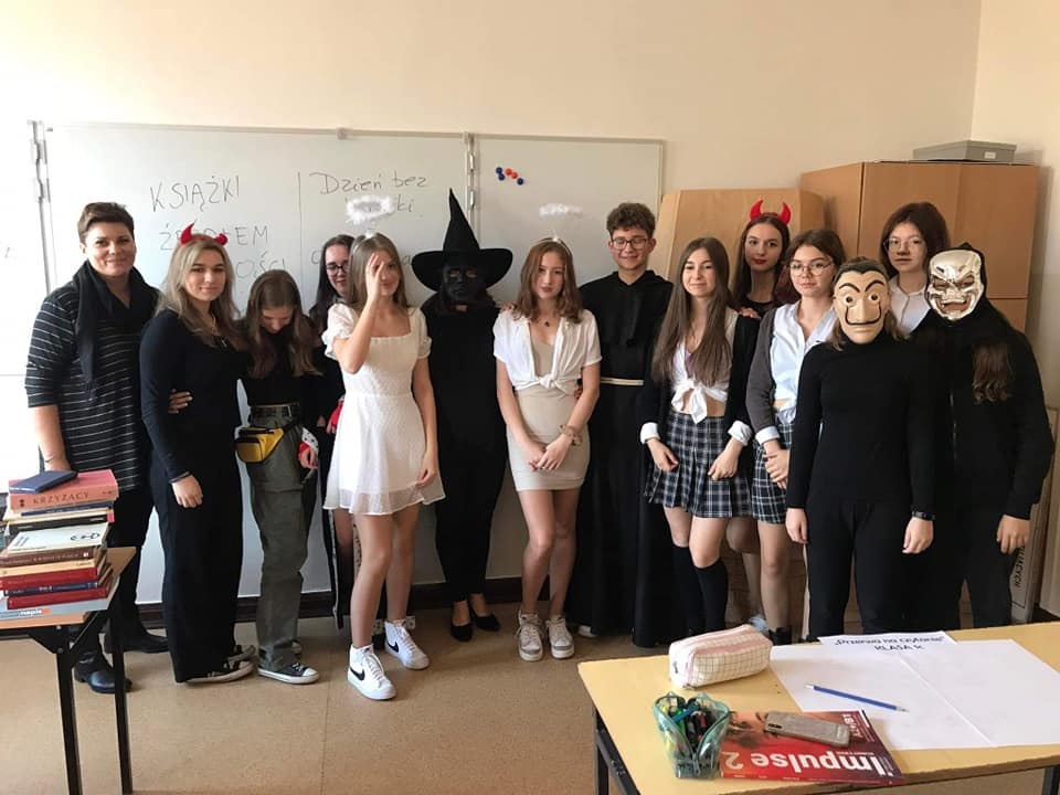 Szkoła wypełniona była wiedźmami, piratami, celebrytami, postaciami z filmów i bajek. Na przerwie korzystając z okazji uchwyciliśmy kilka z nich.