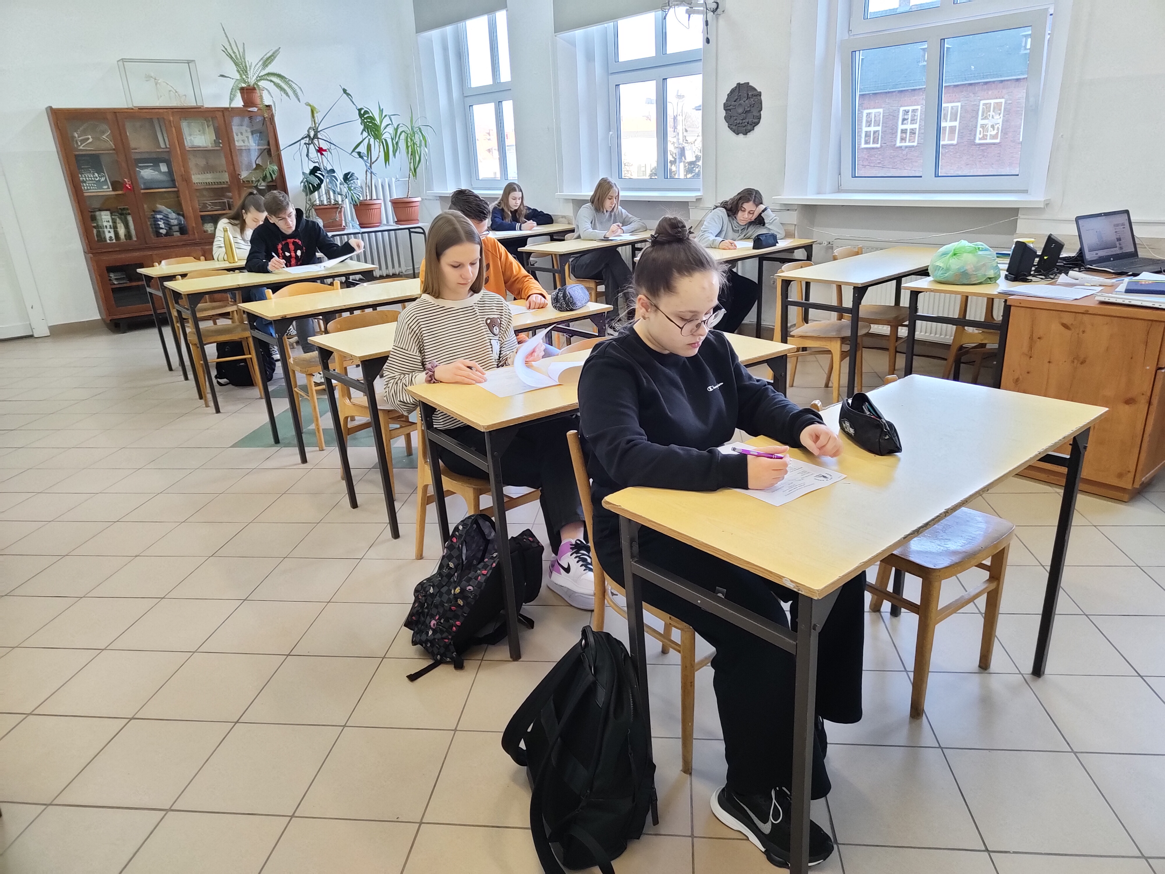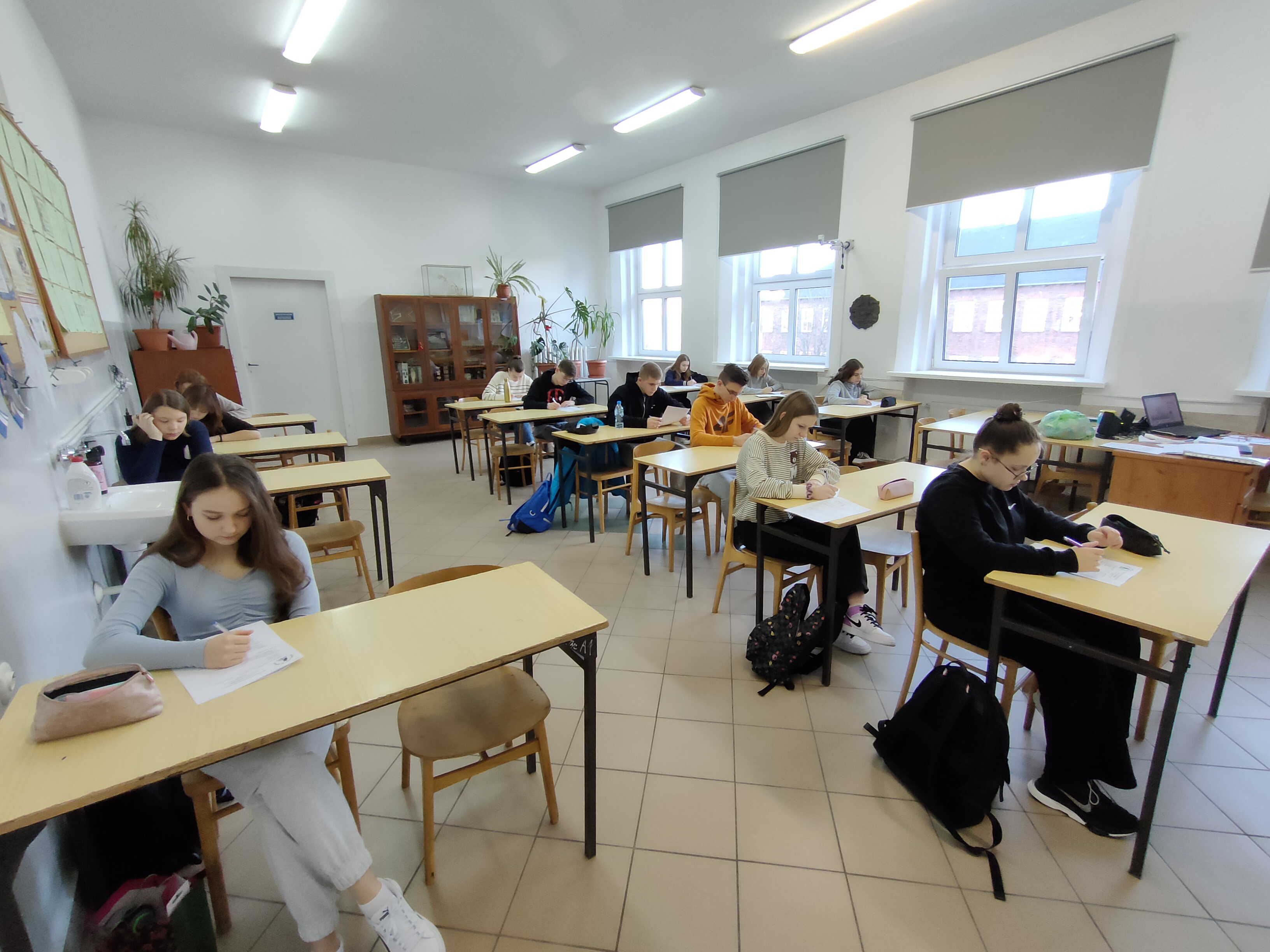Z 15 uczestników z klas I-III o profilu biologiczno-chemicznym, do następnego etapu przeszło czterech uczniów: Zuzanna Uba, Zuzanna Butkiewicz i Konrad Zieleniewski z 1b oraz Aleksandra Bielawska z 3b. Konkurs przeprowadzili Irena Dziamarska -nauczycielka biologii i Bogusław Sitnik-nauczyciel geografii.