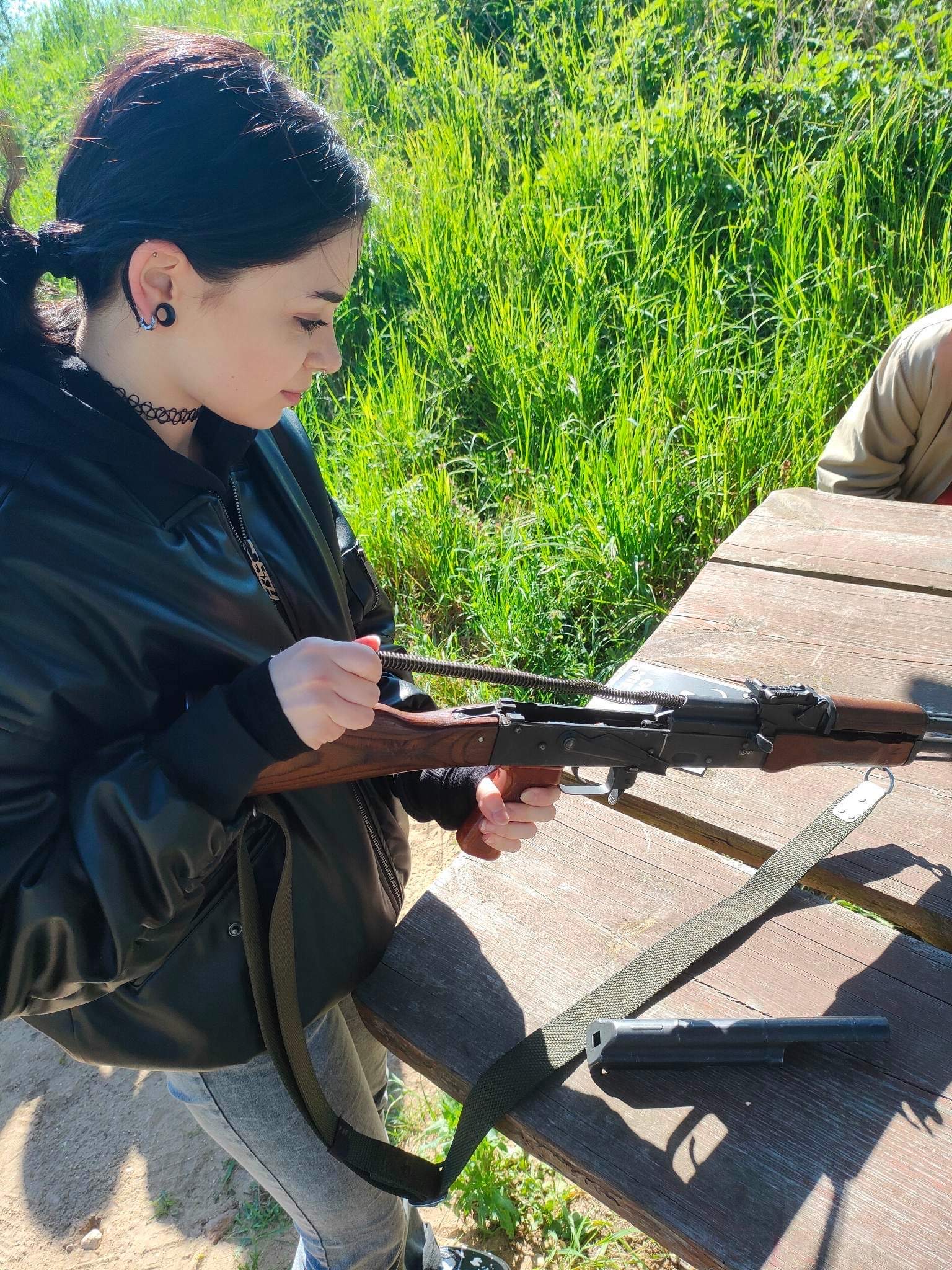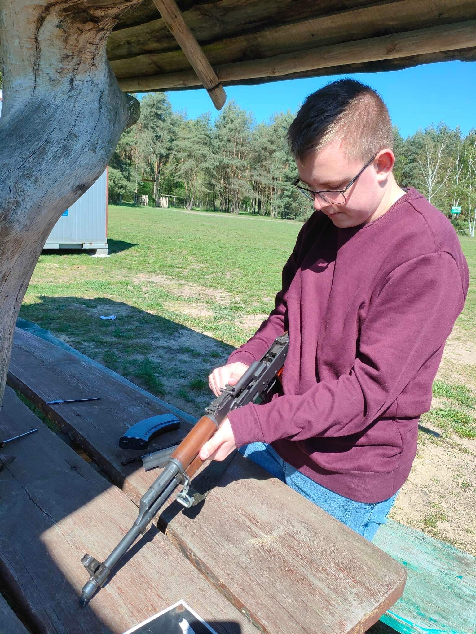 W części praktycznej uczniowie poznali podstawy obsługi karabinka systemu AK oraz nauczyli się go rozkładać i składać. Swoje pierwsze strzały z broni palnej oddali z karabinka sportowego (Ir22) mierząc się z tarczą na dystansie 50 metrów w postawie leżącej.