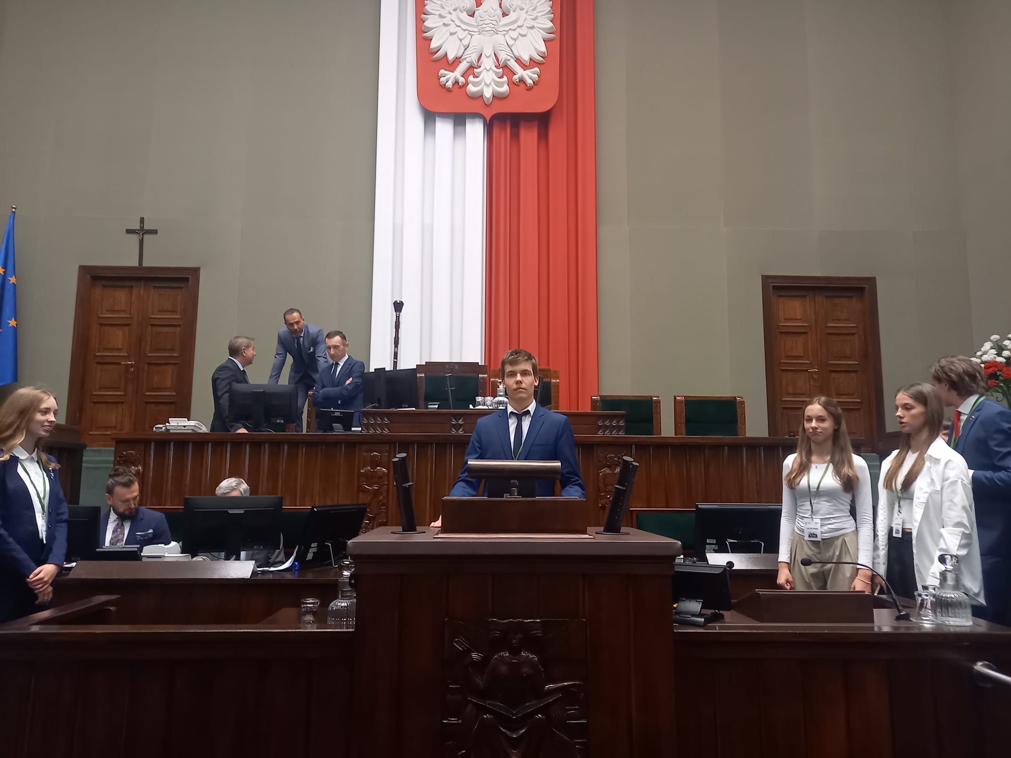 Możliwość uczestniczenia w tym wydarzeniu zdecydowanie poszerzyła nasze horyzonty. Zarówno ja i Mikołaj wiele wyciągnęliśmy z tego wyjazdu. Poznaliśmy wiele ciekawych osób, ujrzeliśmy szczegóły procesu legislacyjnego, zwiedziliśmy piękny budynek Sejmu i Senatu RP i przede wszystkim dobrze się bawiliśmy. Do swych domów wróciliśmy z uśmiechami na naszych twarzach, zachęceni do dalszego działania.”