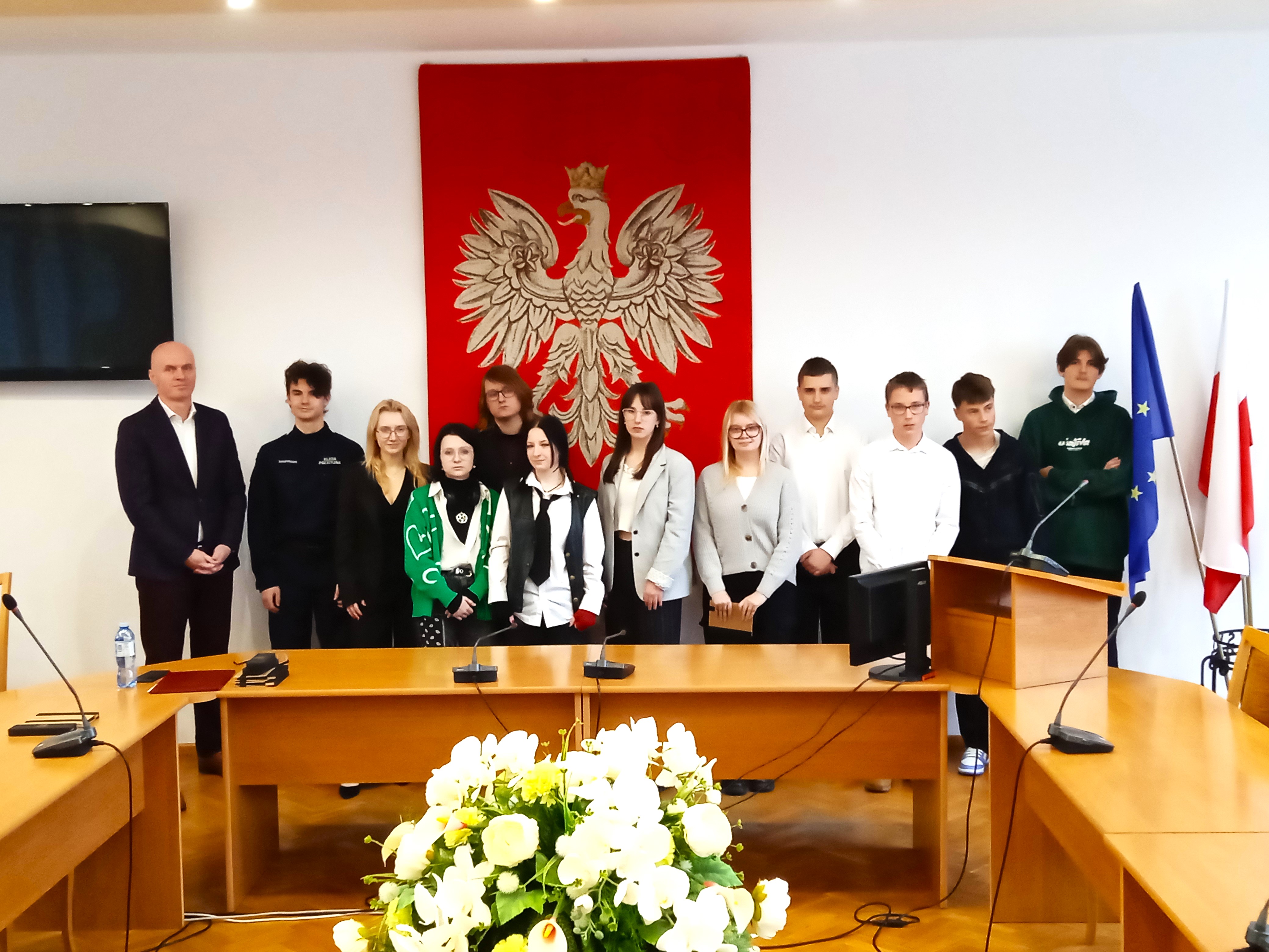 Na koniec uczniowie LO zwiedzili wystawę „25-lecie samorządu powiatowego w Górze” znajdującą się w holu Starostwa Powiatowego.
