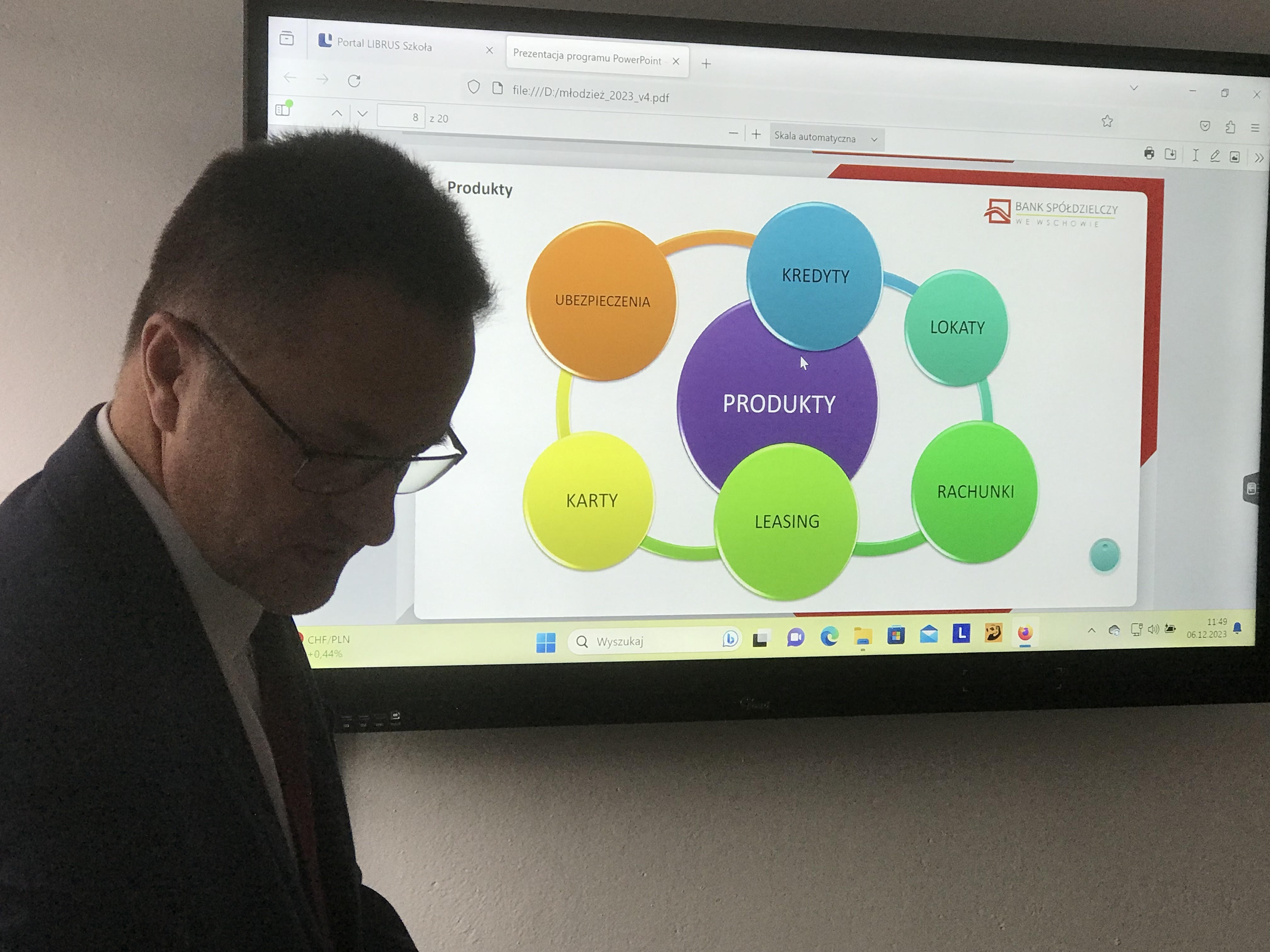 Młodzież dowiedziała się, w trakcie zajęć czym jest bank spółdzielczy jakie otrzymał nagrody , wyróżnienia BS we Wschowie. Zachęcili młodzież do aktywnego udziału w zajęciach, pokazali jakie są nowoczesne formy bankowania i jak funkcjonuje bankowość elektroniczna. Młodzież uzyskała pełną informacje nt. rodzajów kont w banku spółdzielczym m.in. kont młodzieżowych oraz bezpieczeństwa w sieci a mianowicie: