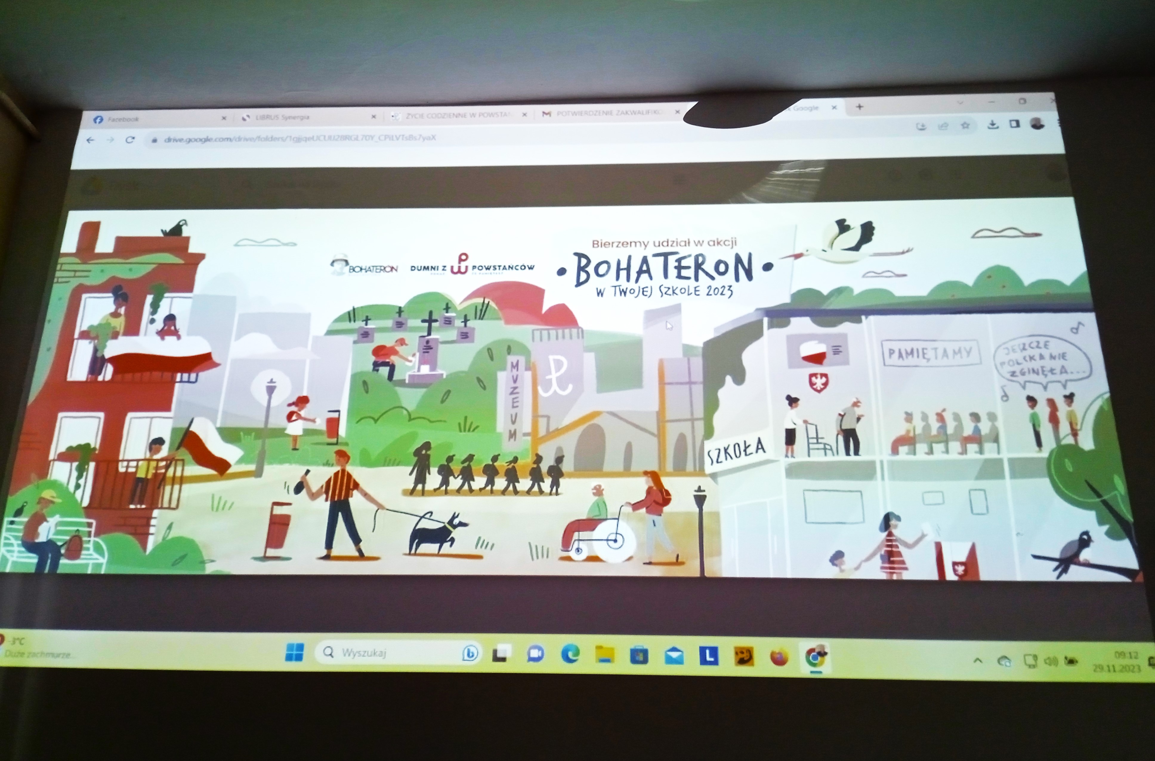 Klasa IV b podzielona na cztery zespoły po 6 osób pracując nad projektem przygotowała 4 strony komiksu w formacie a3). na temat „Warszawscy Robinsonowie. Młodzież oparła się na materiałach zawartych na stronie BohaterON-a oraz korzystała również z innych źródeł. Inspiracją dla uczniów był film w reż. Romana Polańskiego „Pianista” i wspomnienia Władysława Szpilmana (scena, gdy gra dla Hosenfelda i otrzymuje pomoc) oraz z fragmentów książki Twardocha „:Królestwo (kontynuacja Króla, dzieje sie w Warszawie po powstaniu).