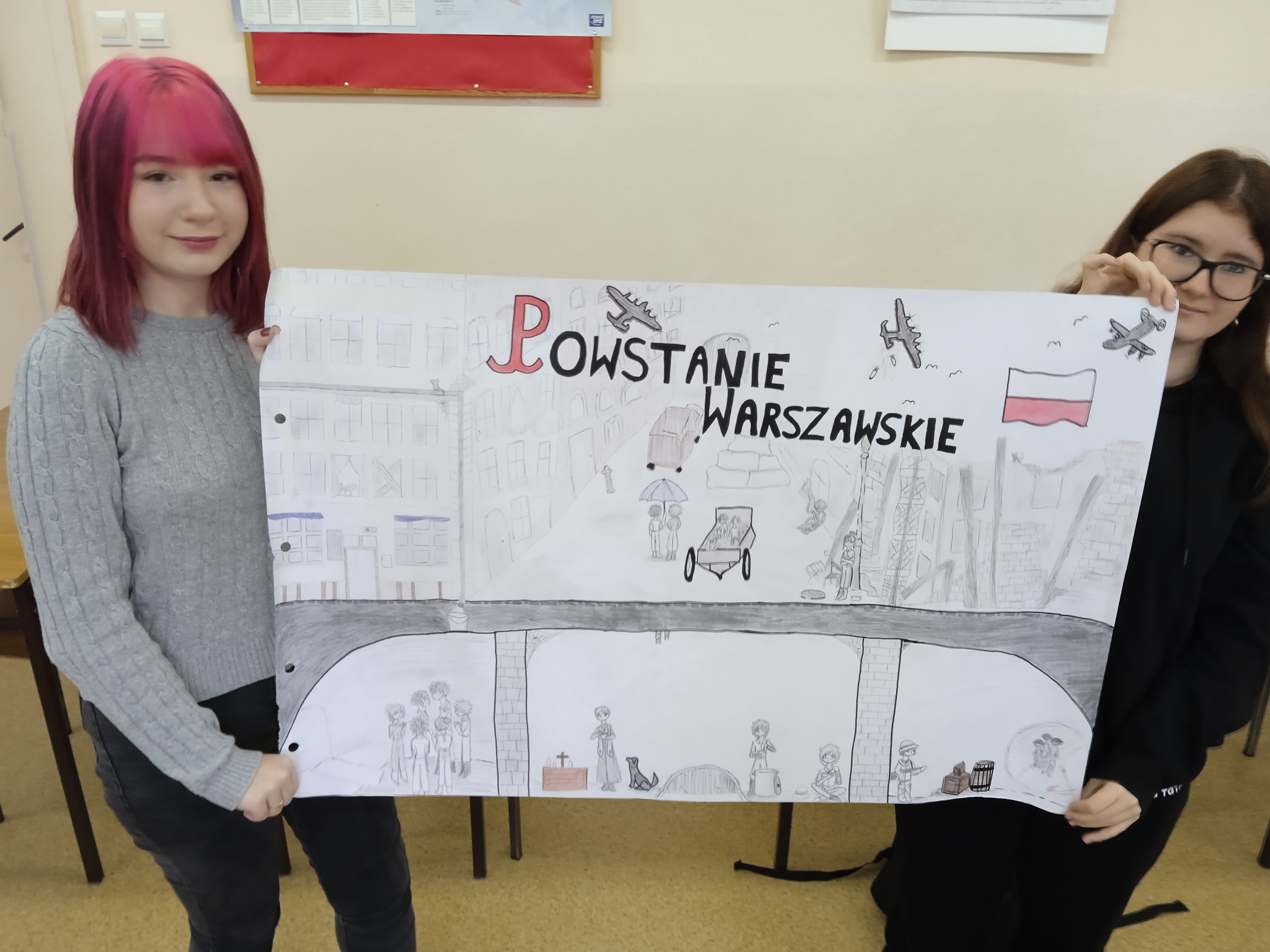 Klasa III d zajęła się tematem "Życie codziennie w Powstaniu" tworząc kilka plakatów wykorzystując materiały BohaterOn-a i wystawy z Muzeum Powstania Warszawskiego w wersji on-line. Dodatkową inspiracją dla uczniów stał się też wiersz Krzysztofa Kamila Baczyńskiego "Elegia o chłopcu..." .