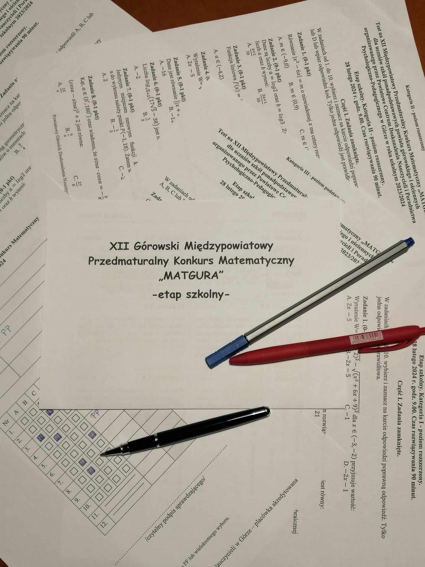 Etap szkolny XII Międzypowiatowego Konkursu Matematycznego ,,MATGURA”