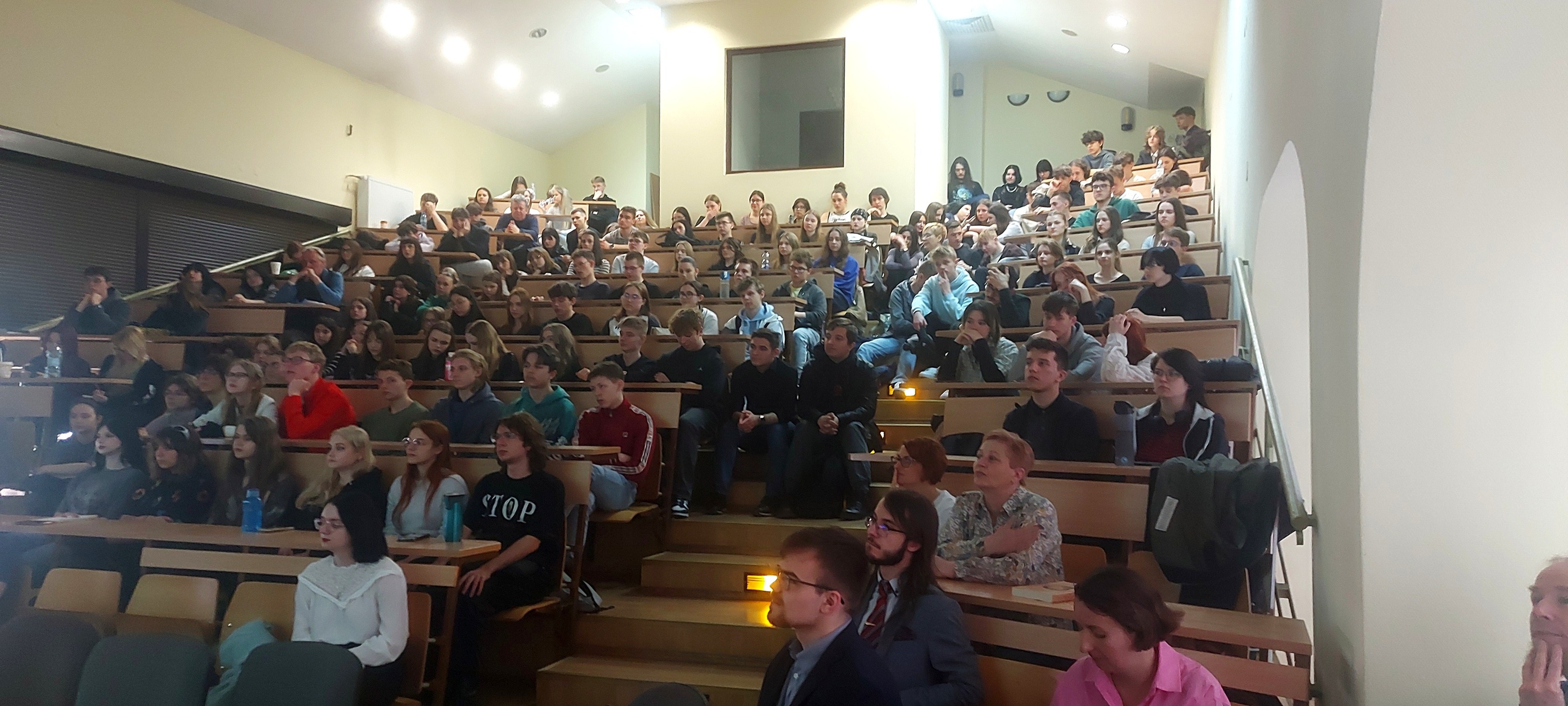 Wydarzeniu stowarzyszyło ogromne zainteresowanie, sala audytoryjna wypełniona była do ostatniego miejsca, niektórzy uczniowie „okupowali” również schody.