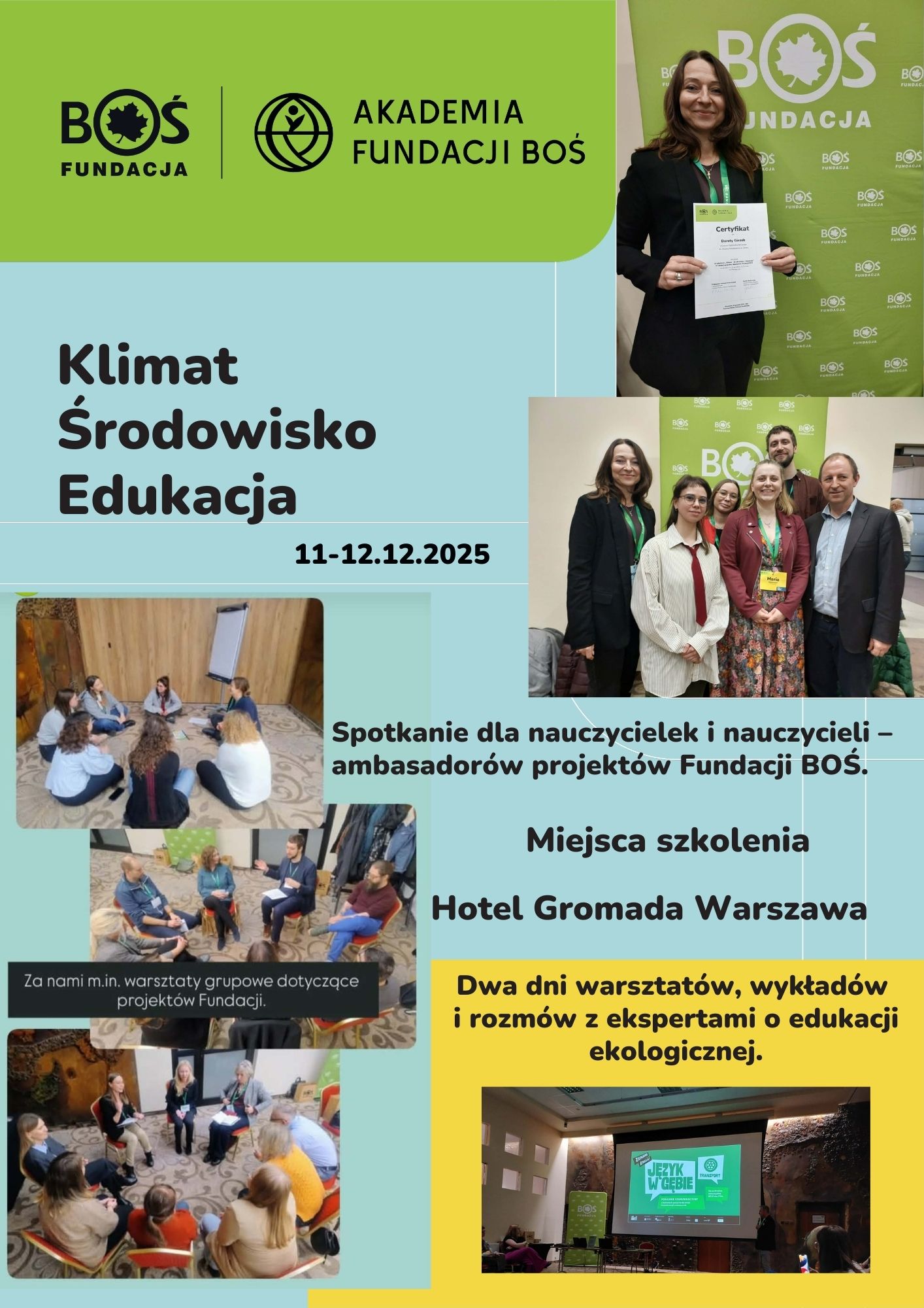 nauczycieli – ambasadorów projektów Fundacji BOŚ. W dniach 11–12 grudnia 2025 roku
