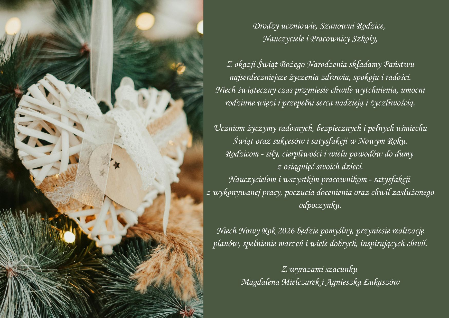 Samorząd Uczniowski składa całej społeczności szkolnej życzenia świąteczne!
