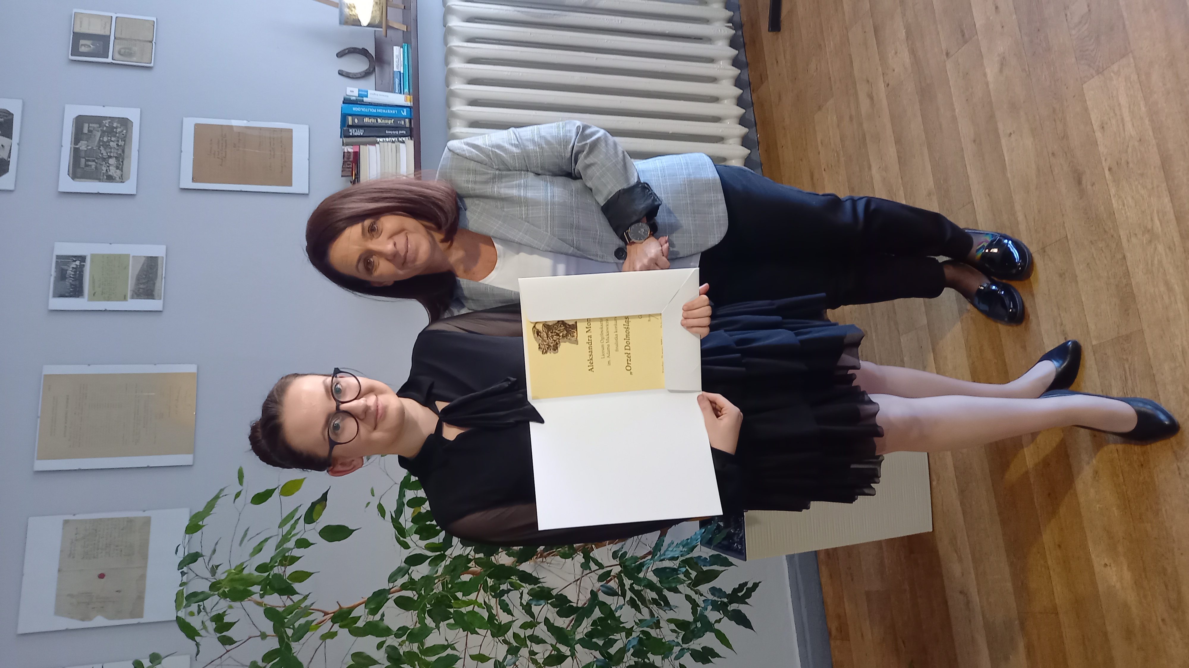 Uzdolniona humanistycznie Ola jest laureatką III miejsca w Ogólnopolskim Finale Konkursu Literackiego, zorganizowanego w ramach XXVII sesji Sejmu Dzieci i Młodzieży w Warszawie. W 2020 i 2021 roku jej prace zostały wyróznione w finale Dolnośląskiego Konkursu Literackiego o Laur Złotego Pióra „My Polacy, My Dolnoślązacy”. Aleksandra swoim osobistym przykładem poczucia obowiązku oraz dużego taktu, pokory i kultury osobistej zachęca innych uczniów do udziału w akcjach charytatywnych, m.in. na rzecz niepełnosprawnych mieszkańców Domu Opieki Społecznej we Wschowie. Aktorskie pasje realizuje w teatrze szkolnym „Adamus”. Trzykrotnie uczestniczyła w Ogólnopolskiej Akcji Narodowego Czytania. Wielkie zainteresowanie wśród młodych ludzi zyskał jej film pt.„Nie zgadnie nikt, że tonę”, poruszający problemy młodzieży związane m.in. z narkomanią