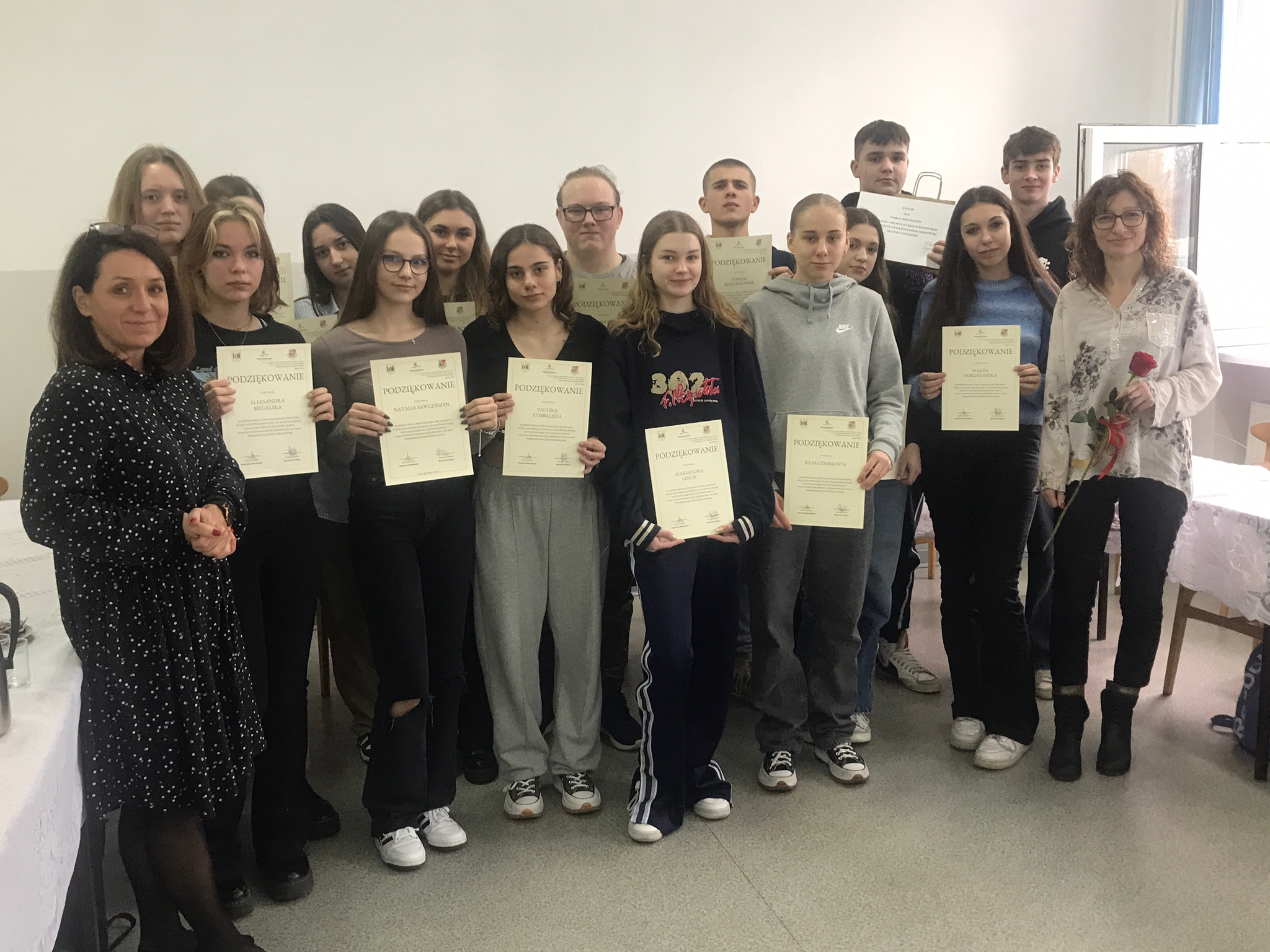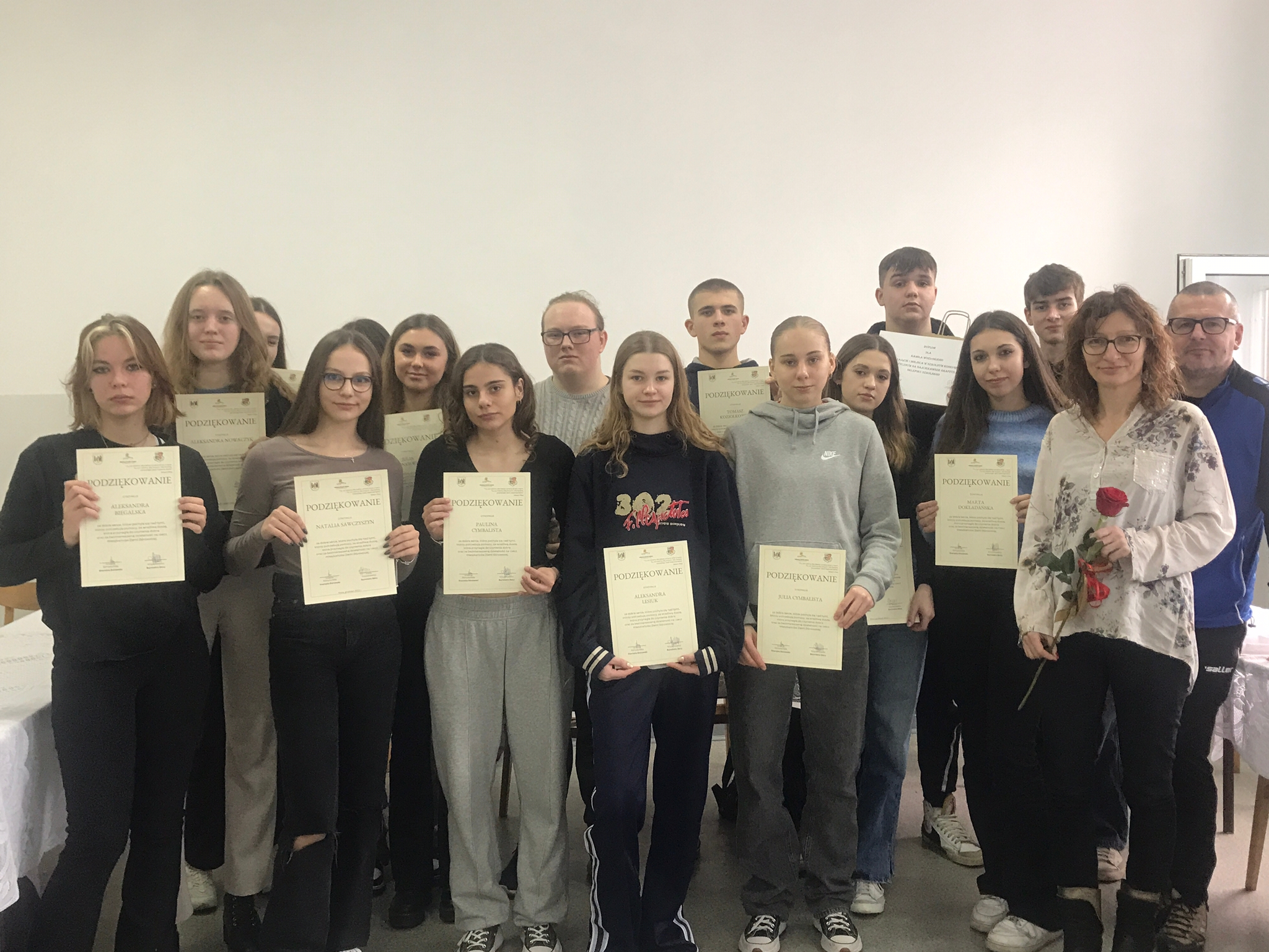 Podziękowania również w formie dyplomów otrzymali następujący uczniowie: Anastazja Bachuryńska, Aleksandra Biegalska, Julia i Paulina Cymbalista, Marta Dokładańska, Jędrzej Drąg, Mikołaj Gęsiecki, Weronika Jakubik, Julia Jasek, Oliwia Kędzierska, Tomasz Koziałkowski, Zuzanna Latka, Aleksandra Lesiuk, Dawid Mackiewicz, Mateusz Matysiak, Kacper Michalski, Aleksandra Nowaczyk, Natalia Sawczyszyn, Julia Stankiewicz, Martyna Srebniak, Kacper Stojanowski i Amelia Turowska.