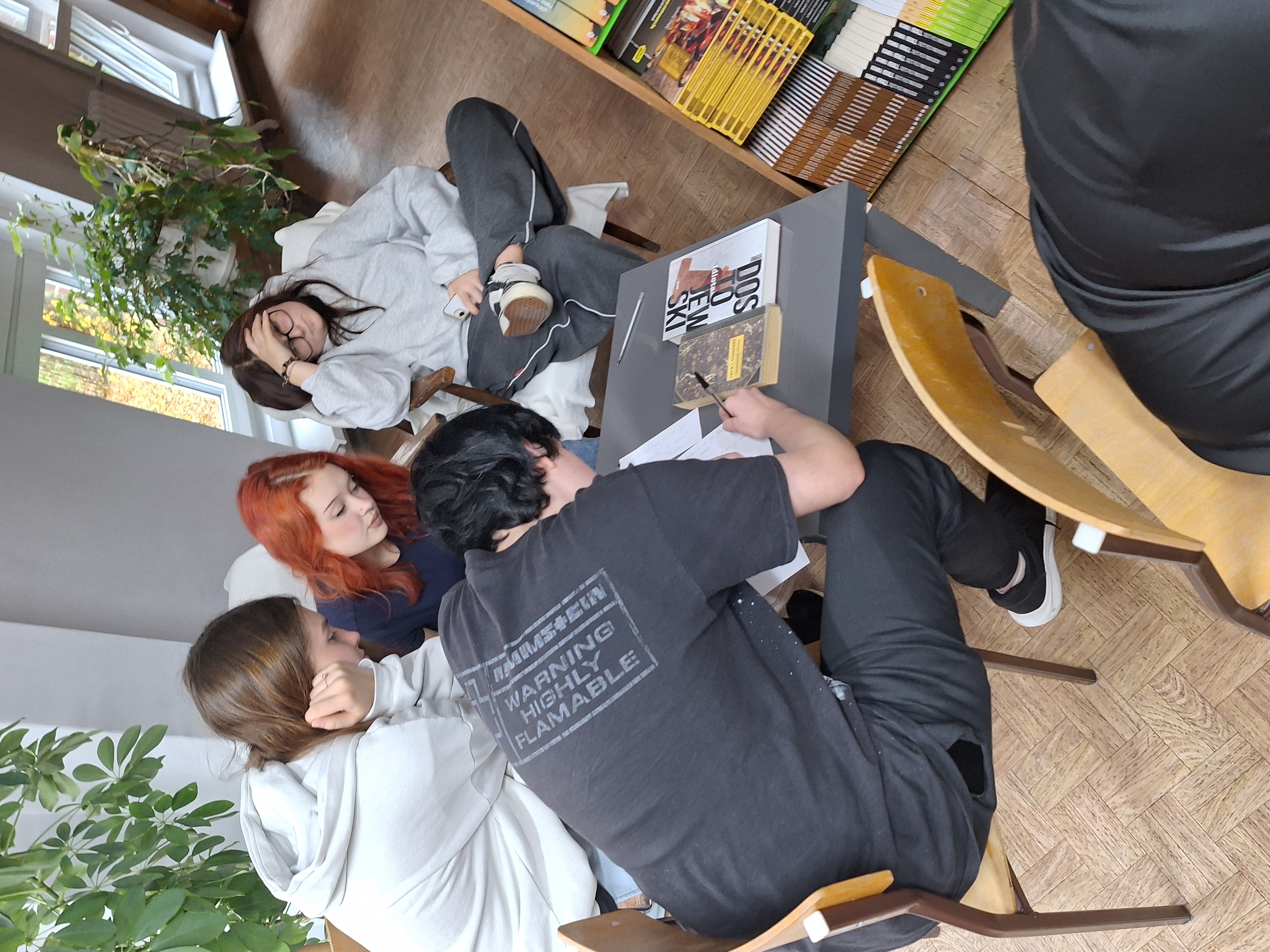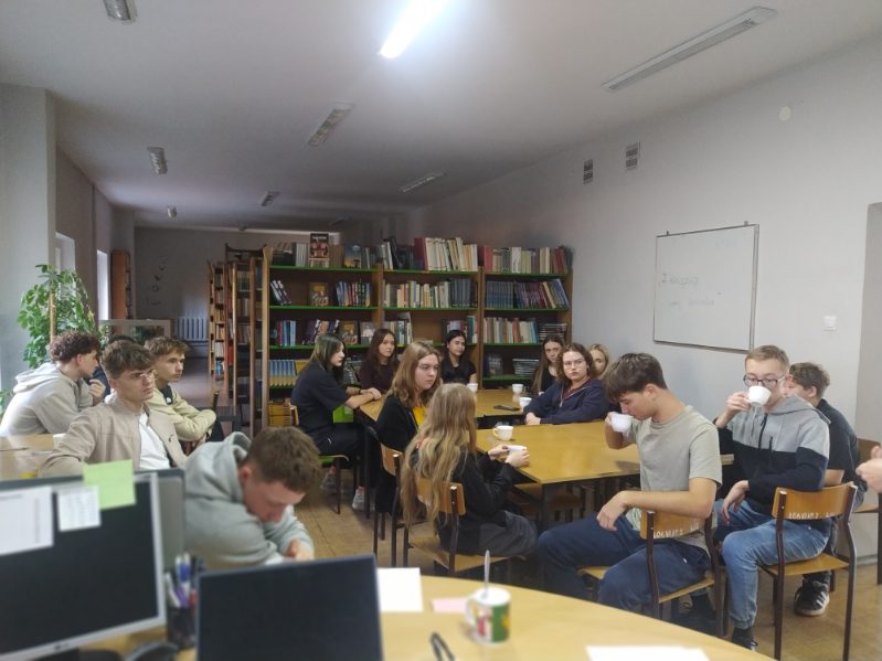 Cieszy fakt, że poruszane tematy i zagadnienia „przy herbatce”, wywołały zaangażowanie młodzieży, uważne słuchanie tekstu, dzielenie się swoimi przemyśleniami i refleksjami, wypełnianie kart pracy, spacer przed szkołą celem poszukiwania miłorzębu i niezastąpione pozytywne emocje,
