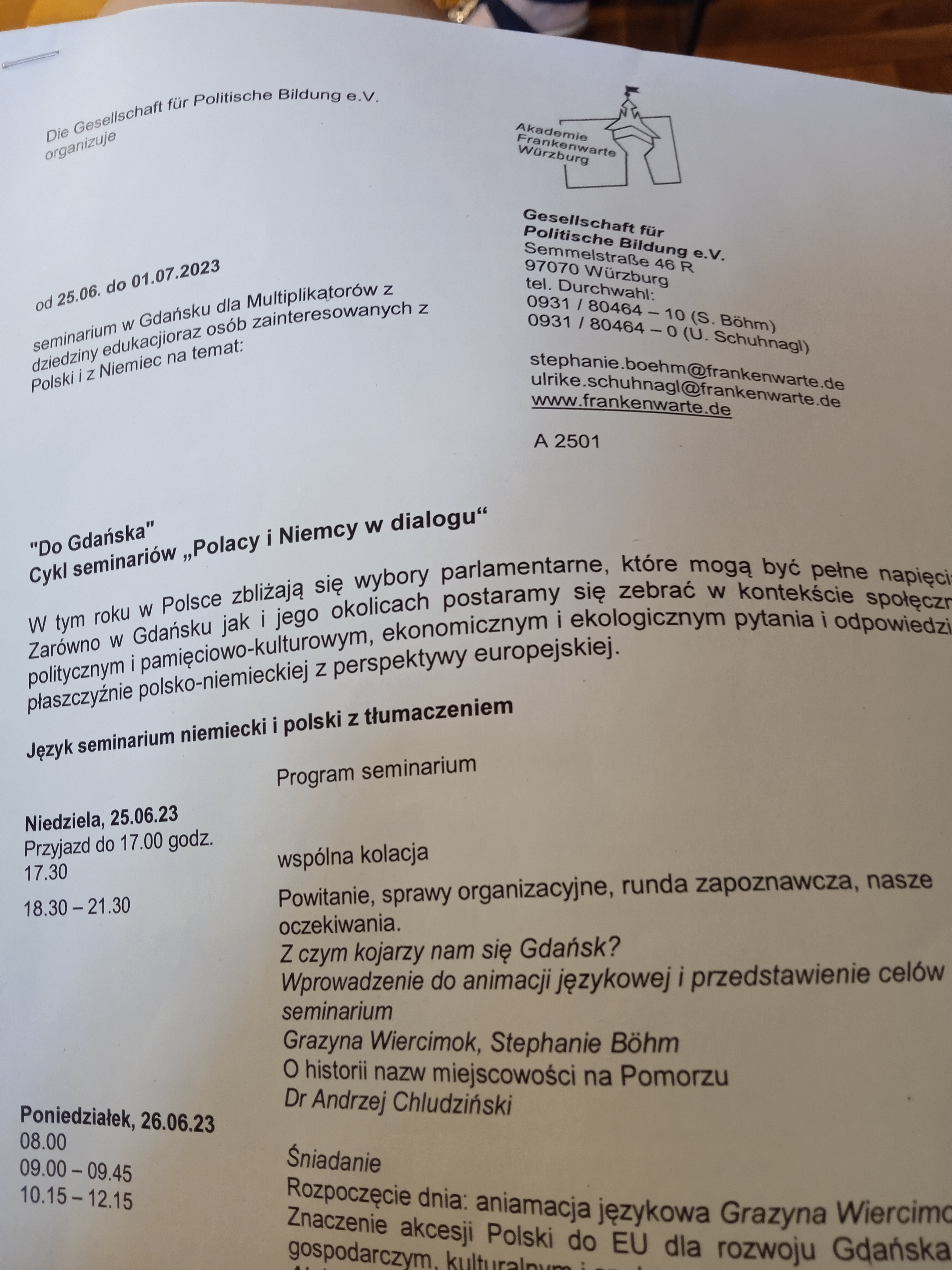 W tym roku w Polsce również zbliżają się wybory parlamentarne, które mogą być pełne napięcia. Zarówno w Gdańsku jak i jego okolicach uczestnicy seminarium postarali się zebrać w kontekście społeczno-politycznym i pamięciowo-kulturowym, ekonomicznym i ekologicznym pytania i odpowiedzi na płaszczyźnie polsko-niemieckiej z perspektywy europejskiej.